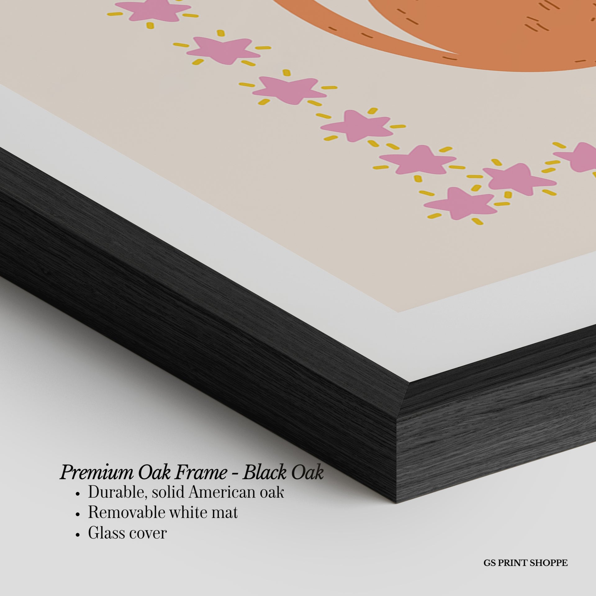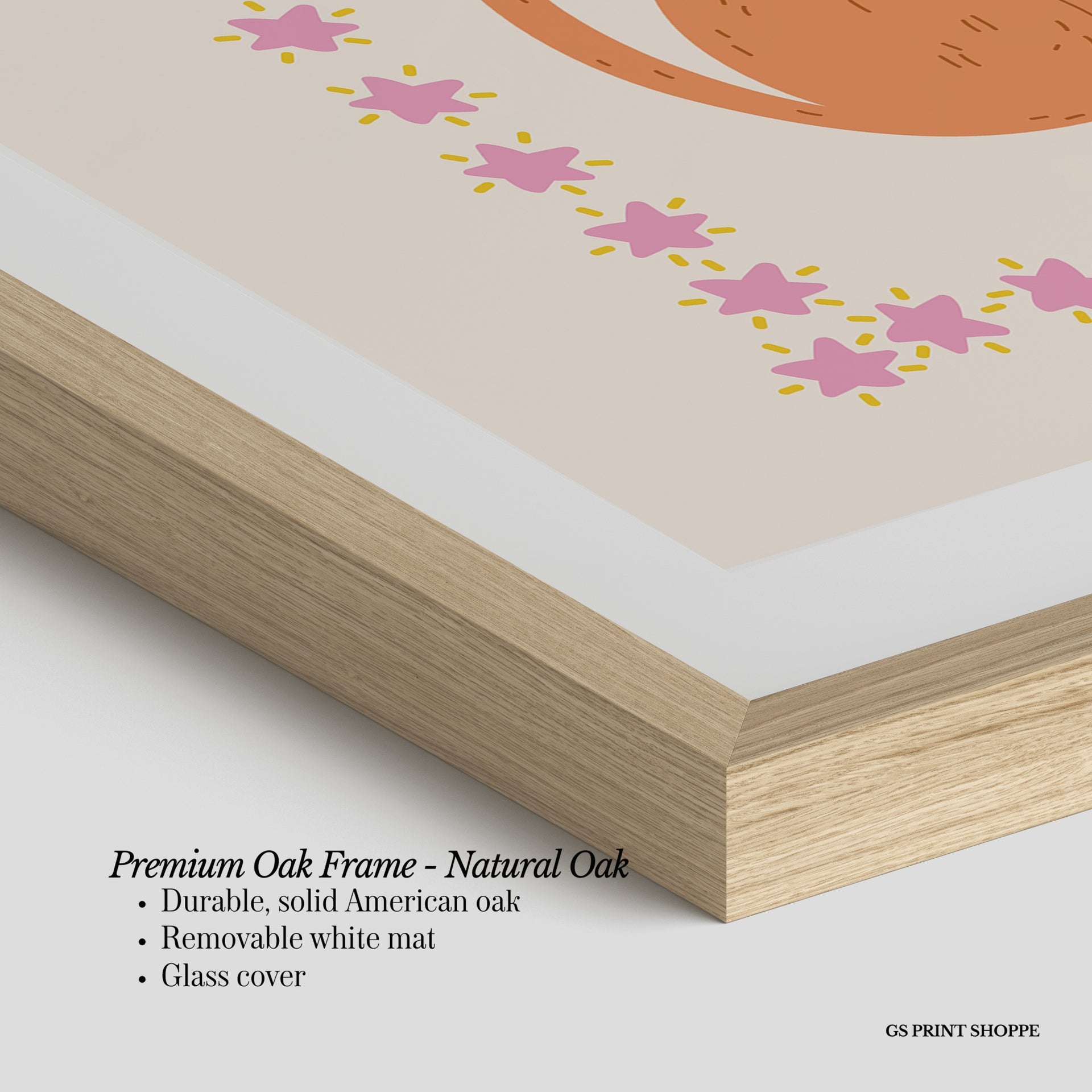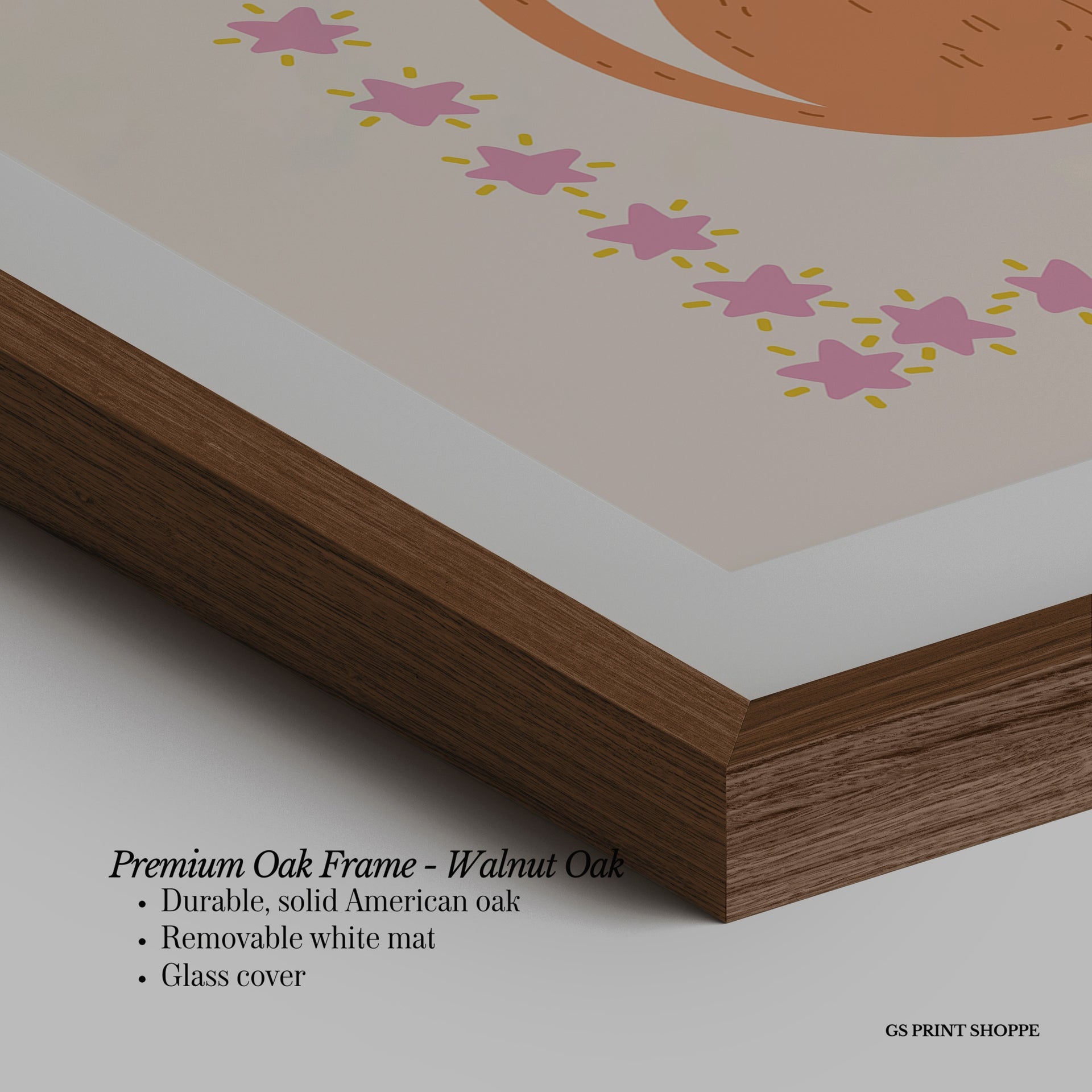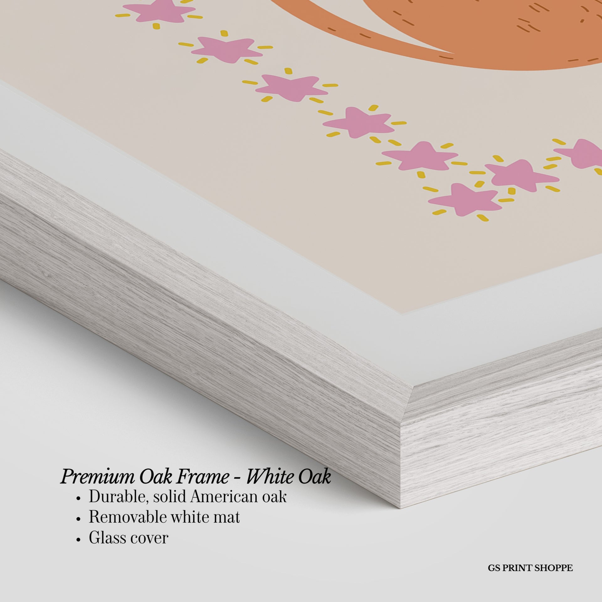 Premium Oak Frame: Our premium oak frame is crafted from solid American oak, offering a warm, natural feel with a high-end finish. We complete this elevated offering with a bright white removable mat and real glass for a versatile and polished look.