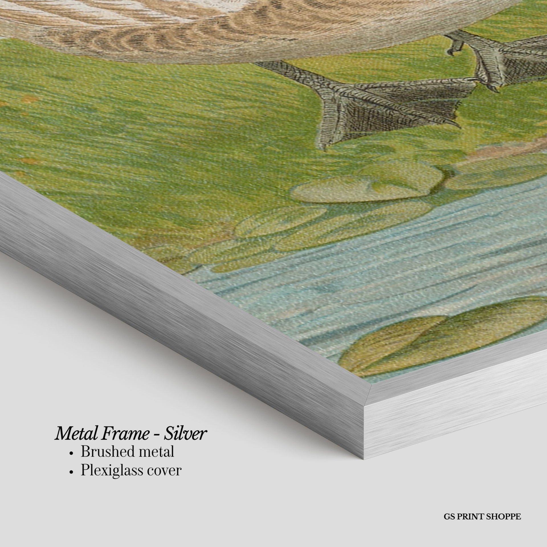Metal Frame: Sleek and modern, our metal frame is crafted with brushed metal for a polished finish. It comes with durable plexiglass and sturdy metal hangers for horizontal or vertical display.