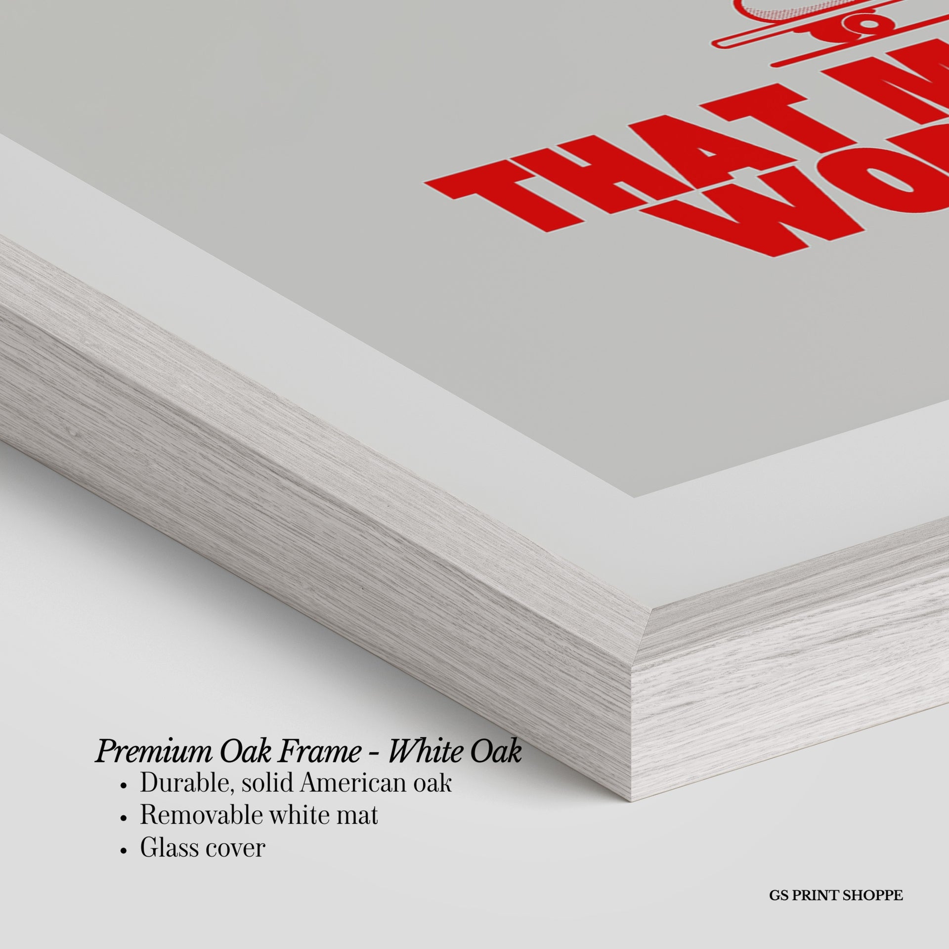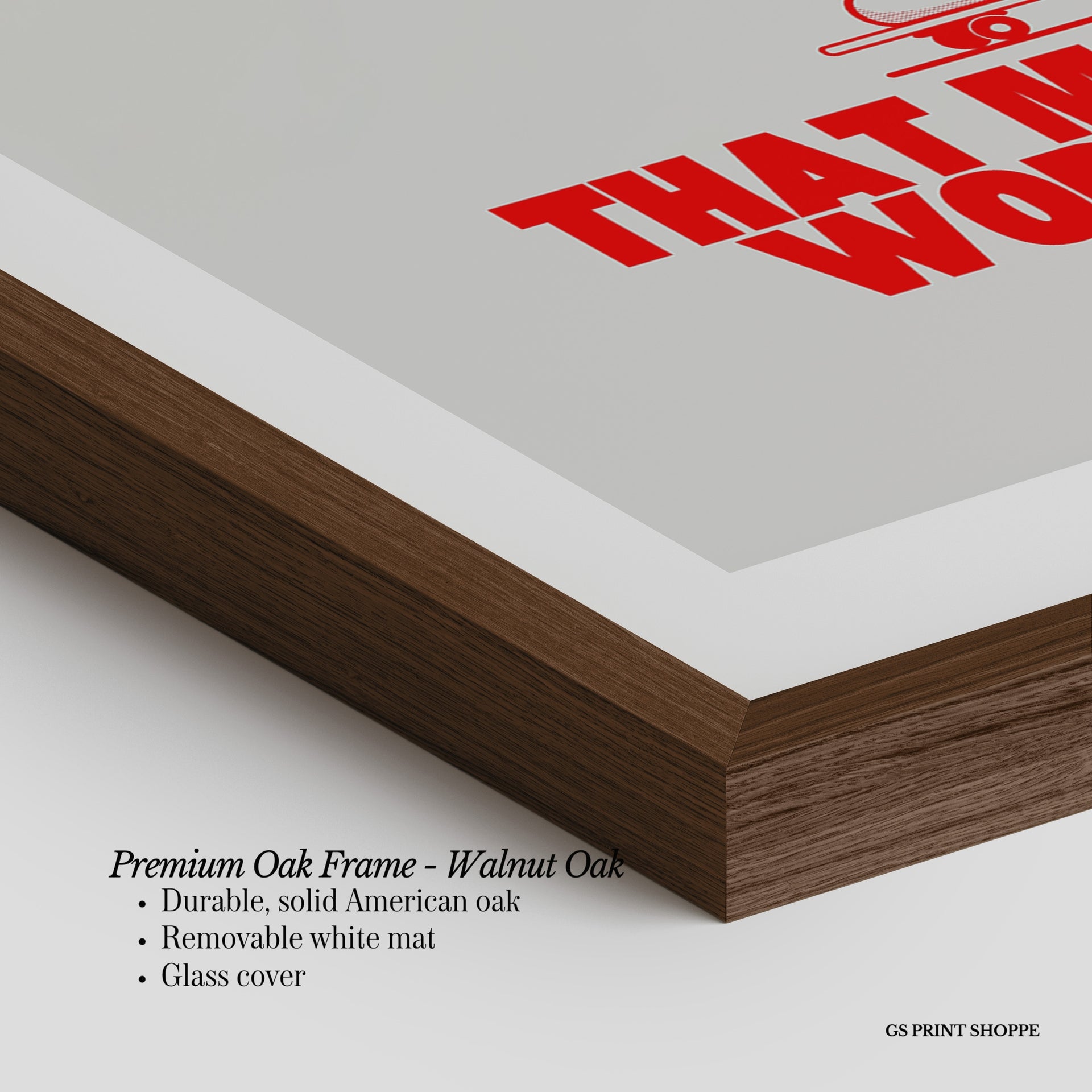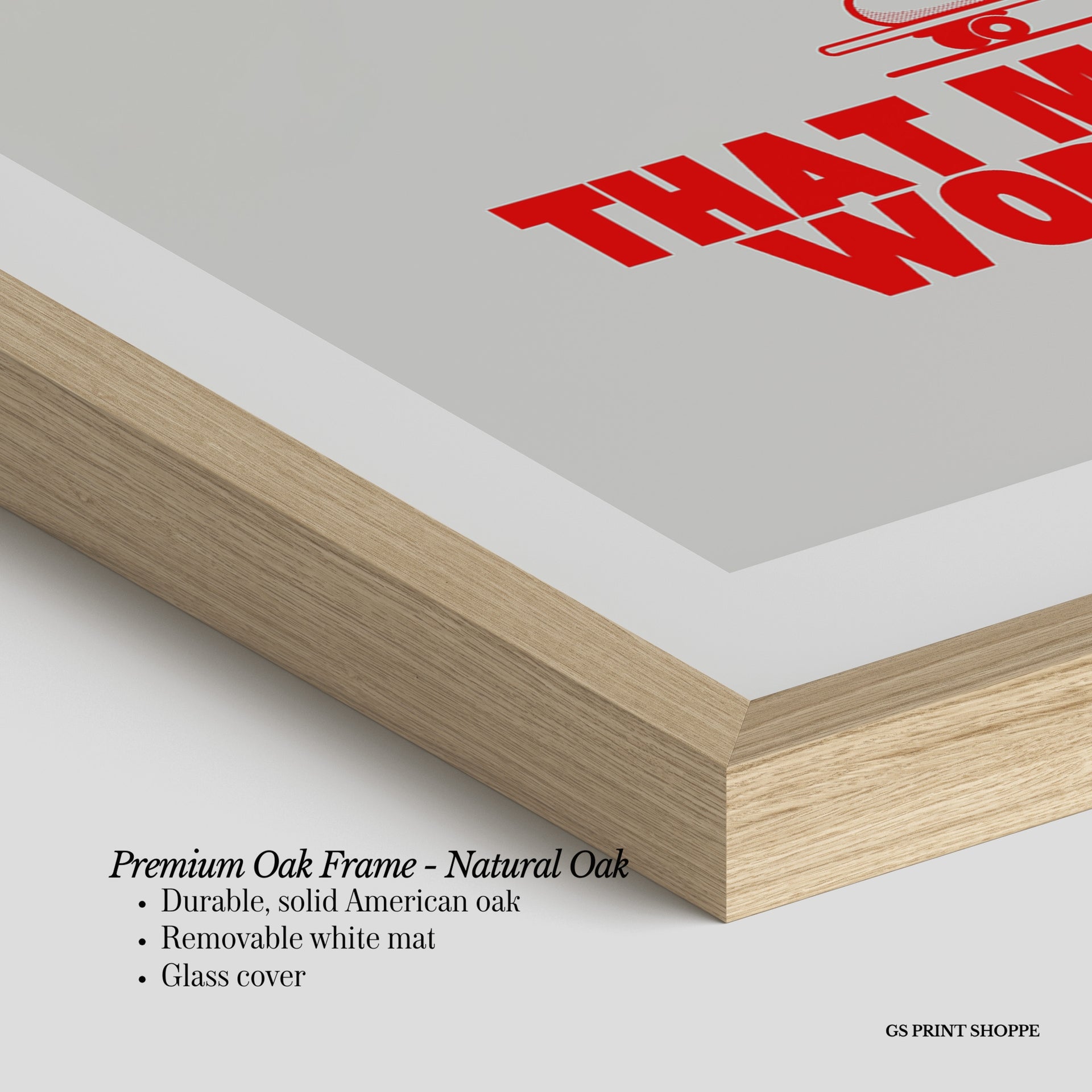 Premium Oak Frame: Our premium oak frame is crafted from solid American oak, offering a warm, natural feel with a high-end finish. We complete this elevated offering with a bright white removable mat and real glass for a versatile and polished look.