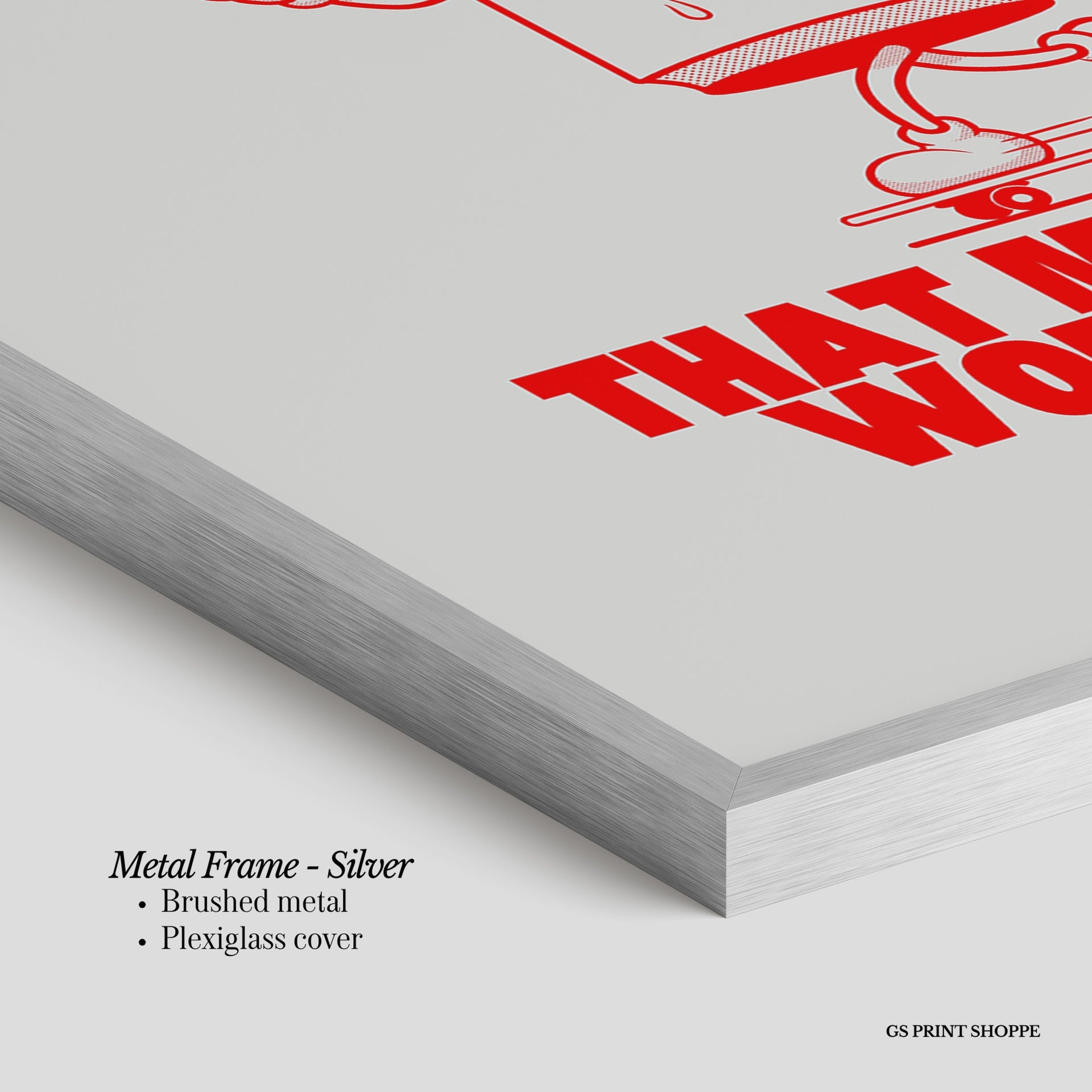Metal Frame: Sleek and modern, our metal frame is crafted with brushed metal for a polished finish. It comes with durable plexiglass and sturdy metal hangers for horizontal or vertical display.