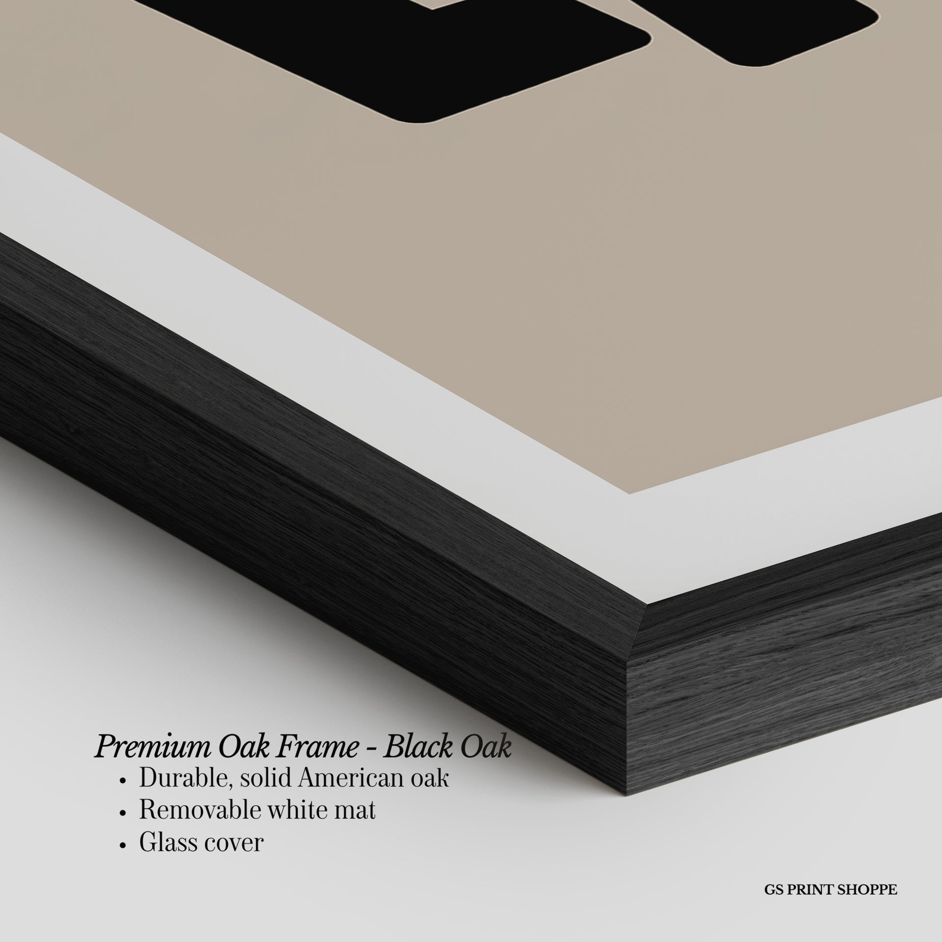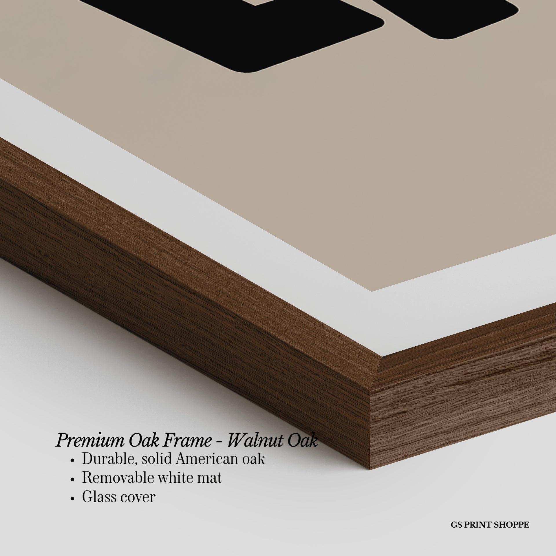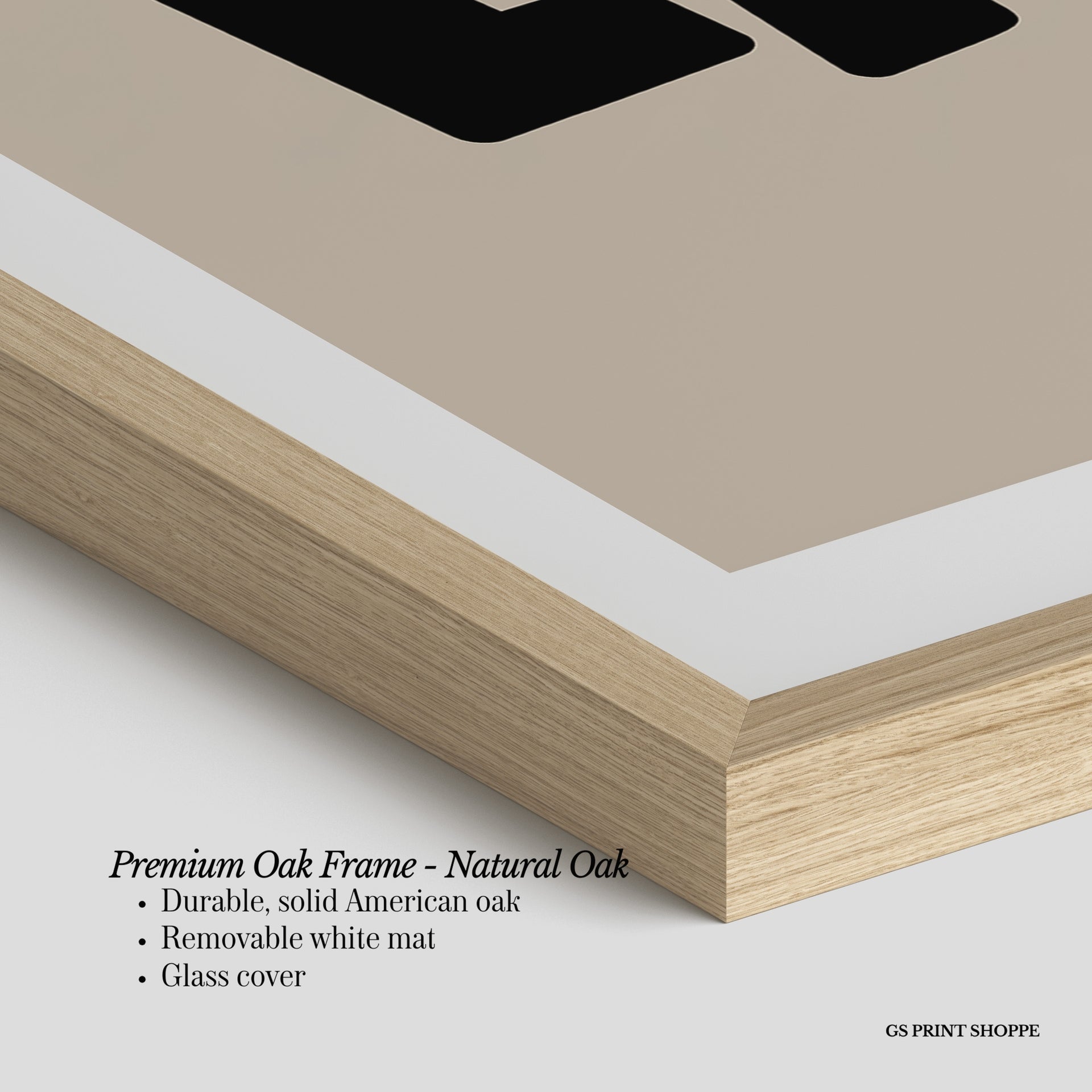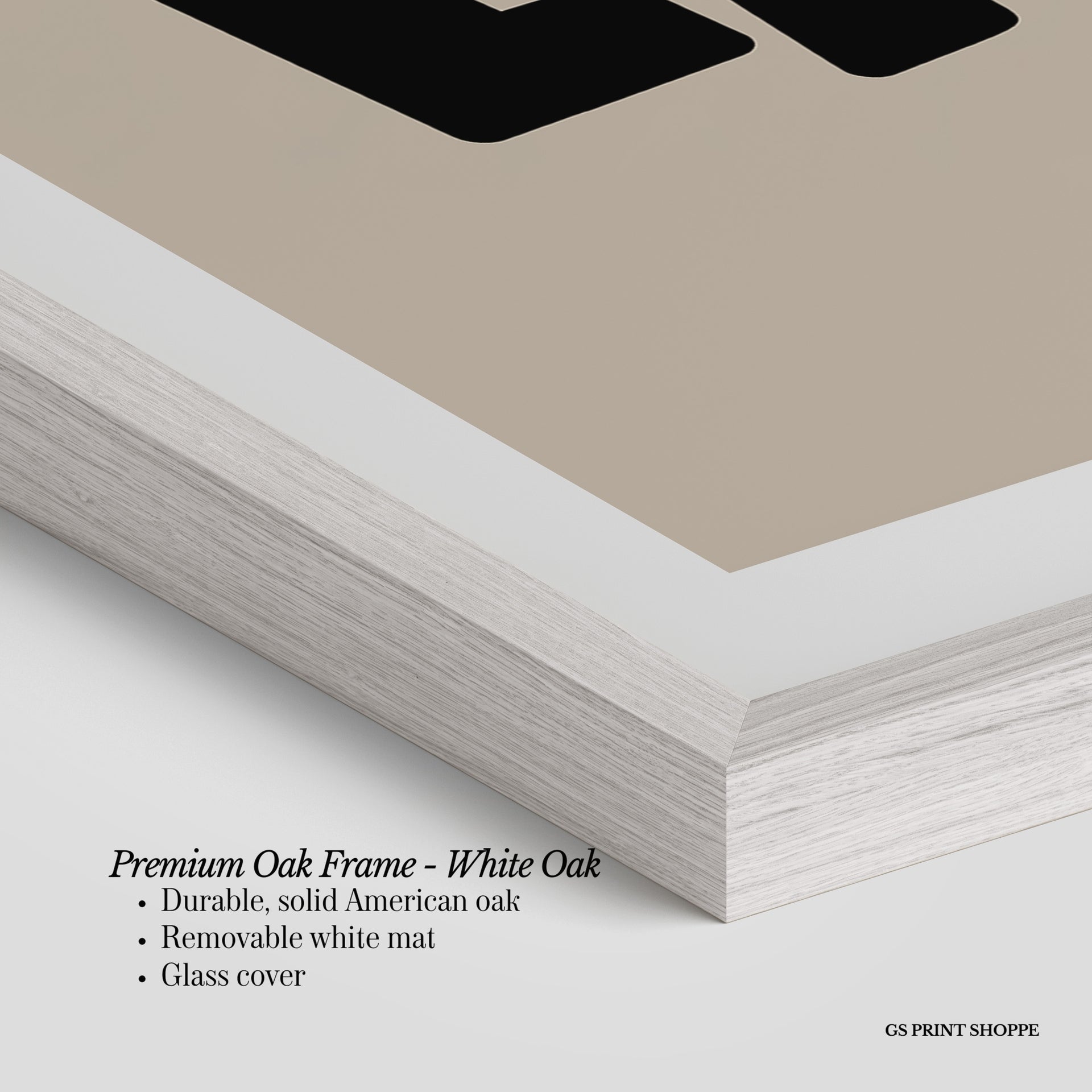 Premium Oak Frame: Our premium oak frame is crafted from solid American oak, offering a warm, natural feel with a high-end finish. We complete this elevated offering with a bright white removable mat and real glass for a versatile and polished look.