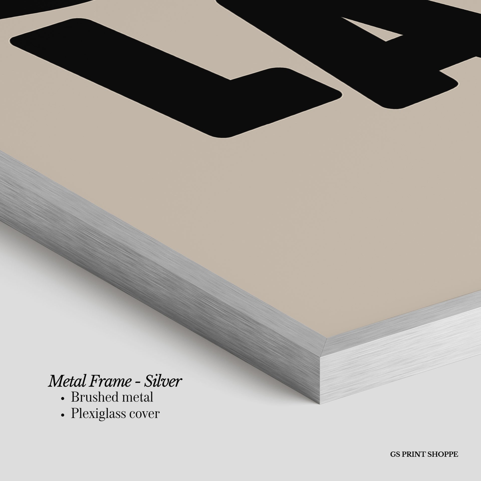 Metal Frame: Sleek and modern, our metal frame is crafted with brushed metal for a polished finish. It comes with durable plexiglass and sturdy metal hangers for horizontal or vertical display.