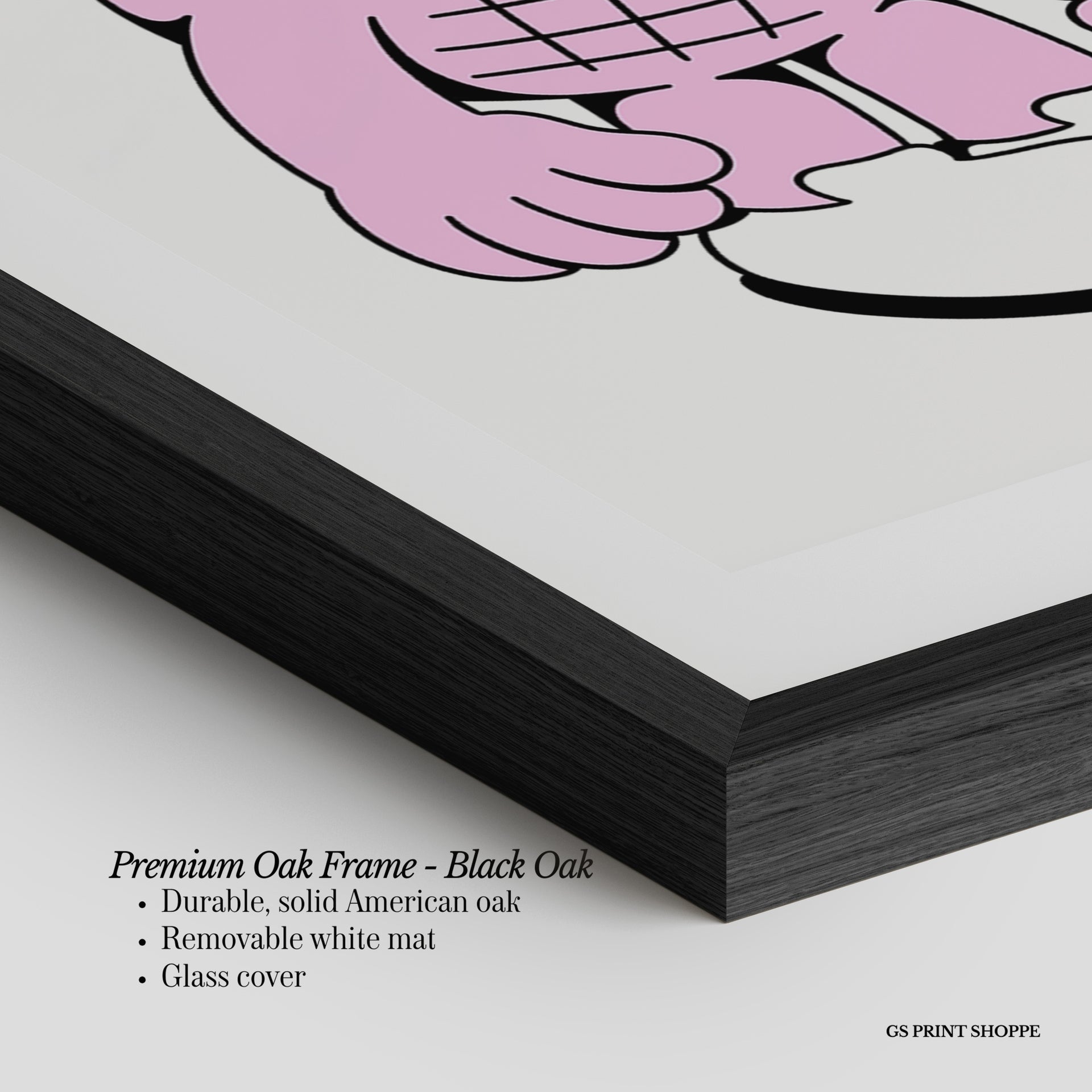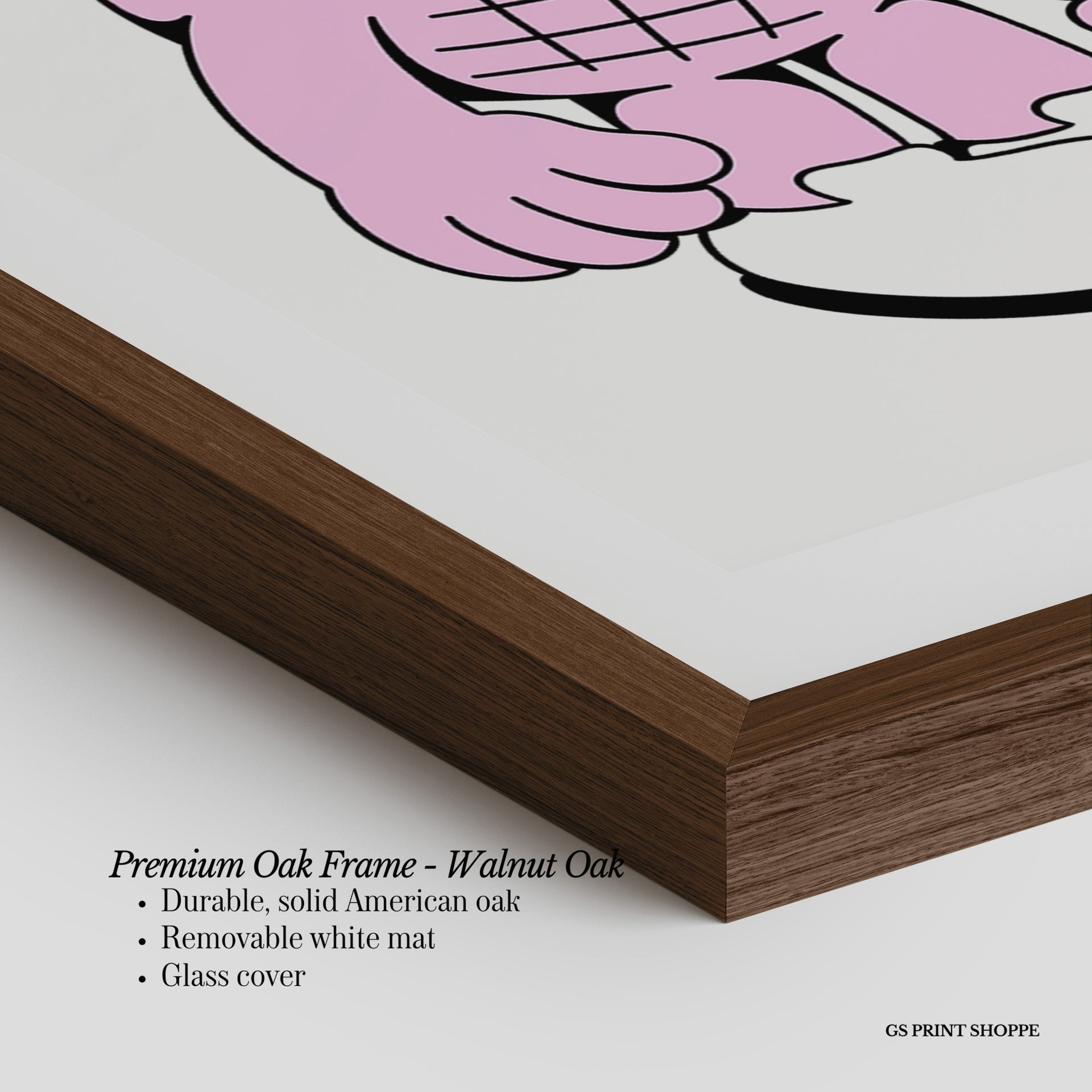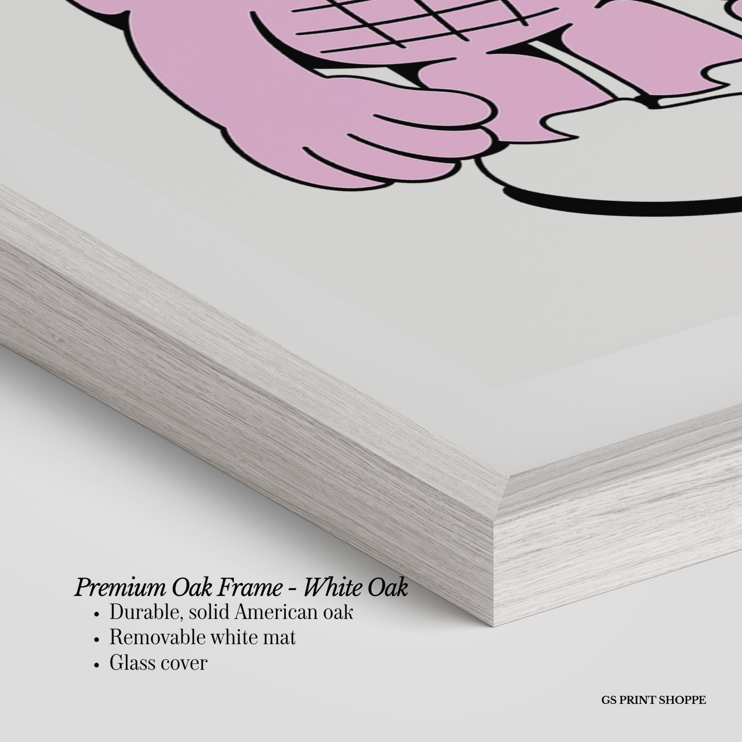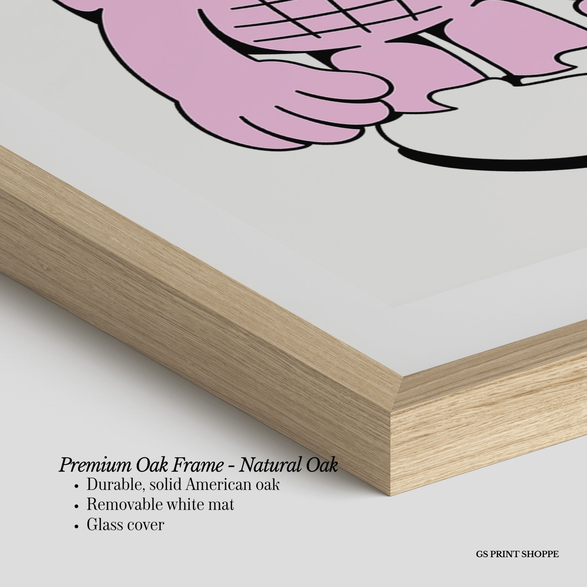 Premium Oak Frame: Our premium oak frame is crafted from solid American oak, offering a warm, natural feel with a high-end finish. We complete this elevated offering with a bright white removable mat and real glass for a versatile and polished look.