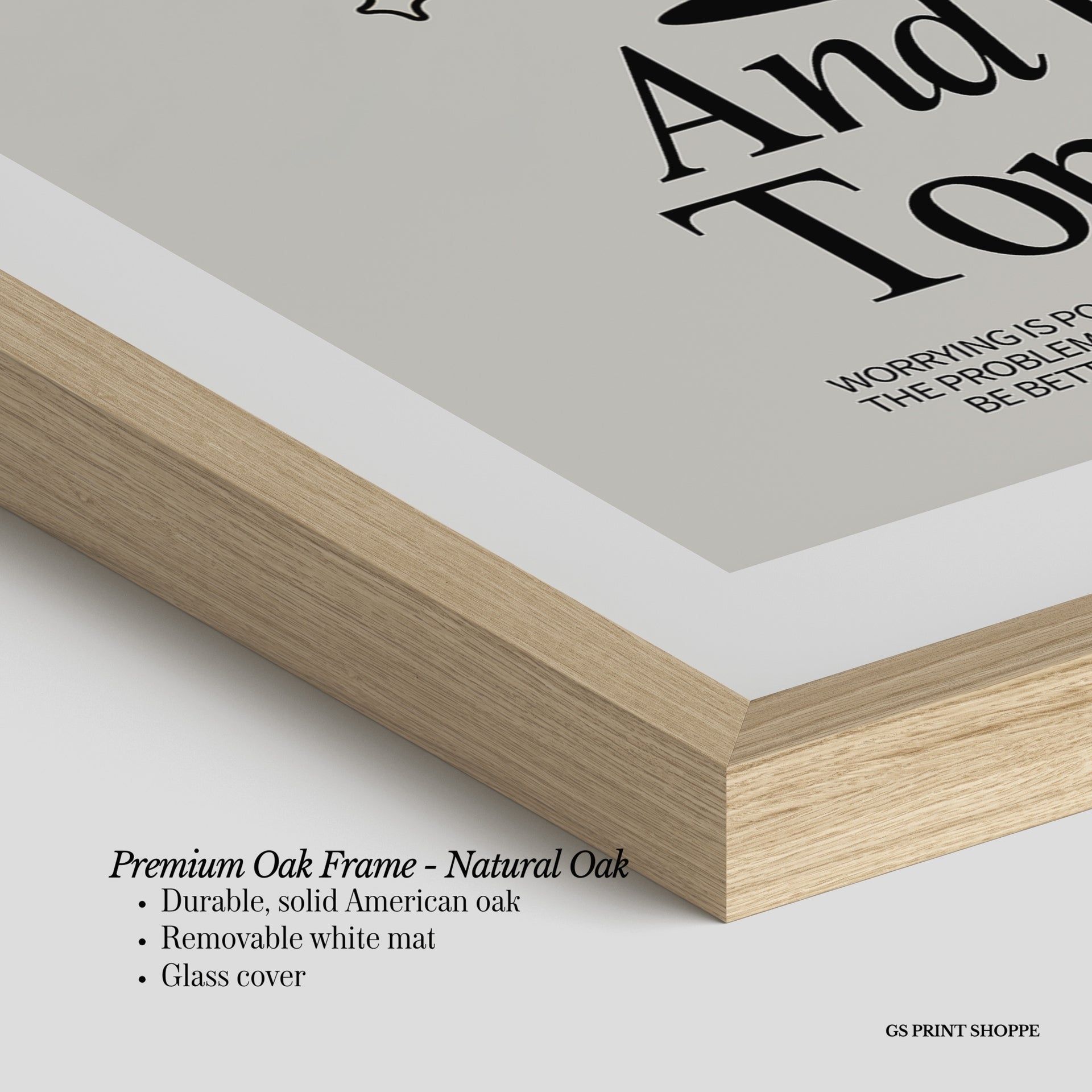 Premium Oak Frame: Our premium oak frame is crafted from solid American oak, offering a warm, natural feel with a high-end finish. We complete this elevated offering with a bright white removable mat and real glass for a versatile and polished look.