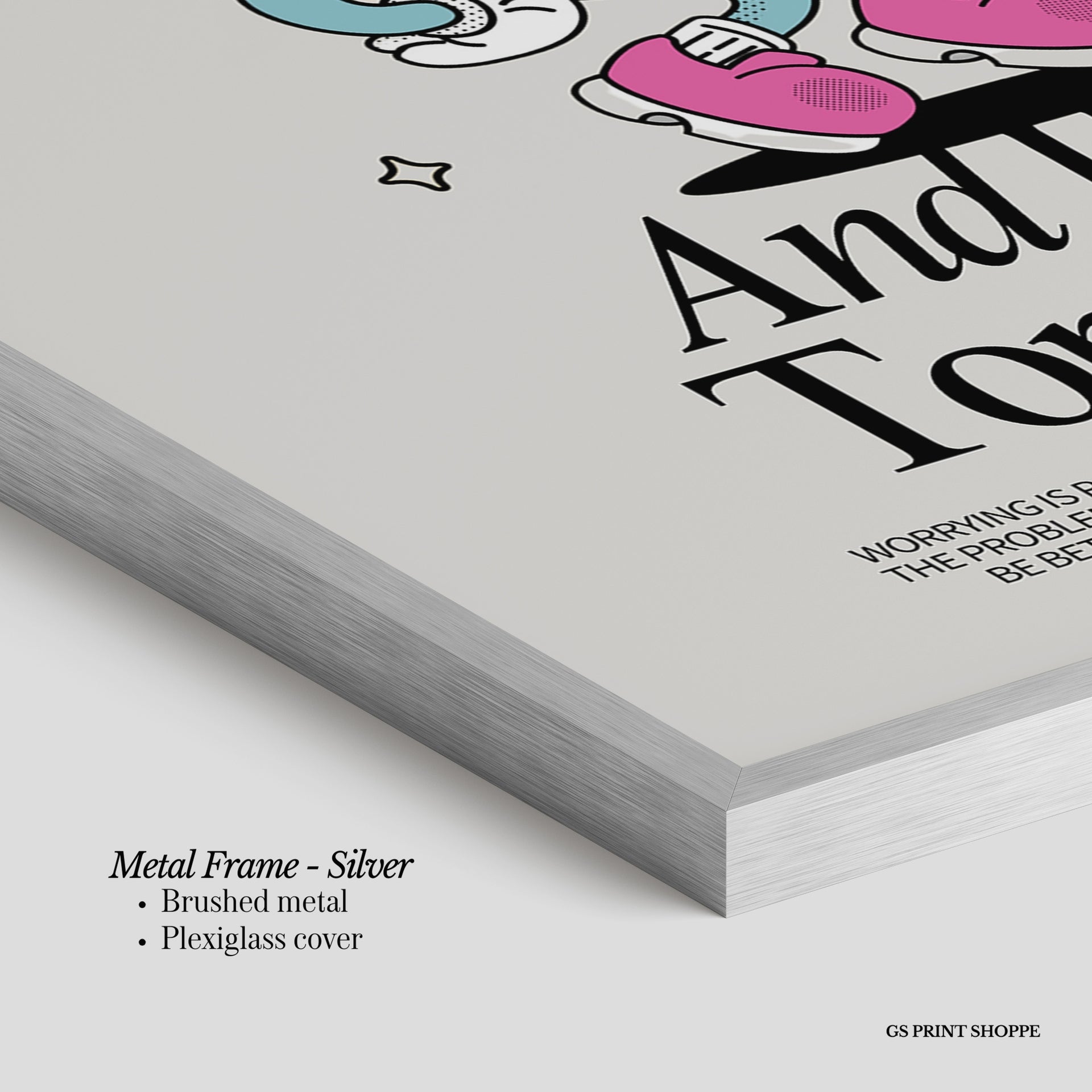 Metal Frame: Sleek and modern, our metal frame is crafted with brushed metal for a polished finish. It comes with durable plexiglass and sturdy metal hangers for horizontal or vertical display.