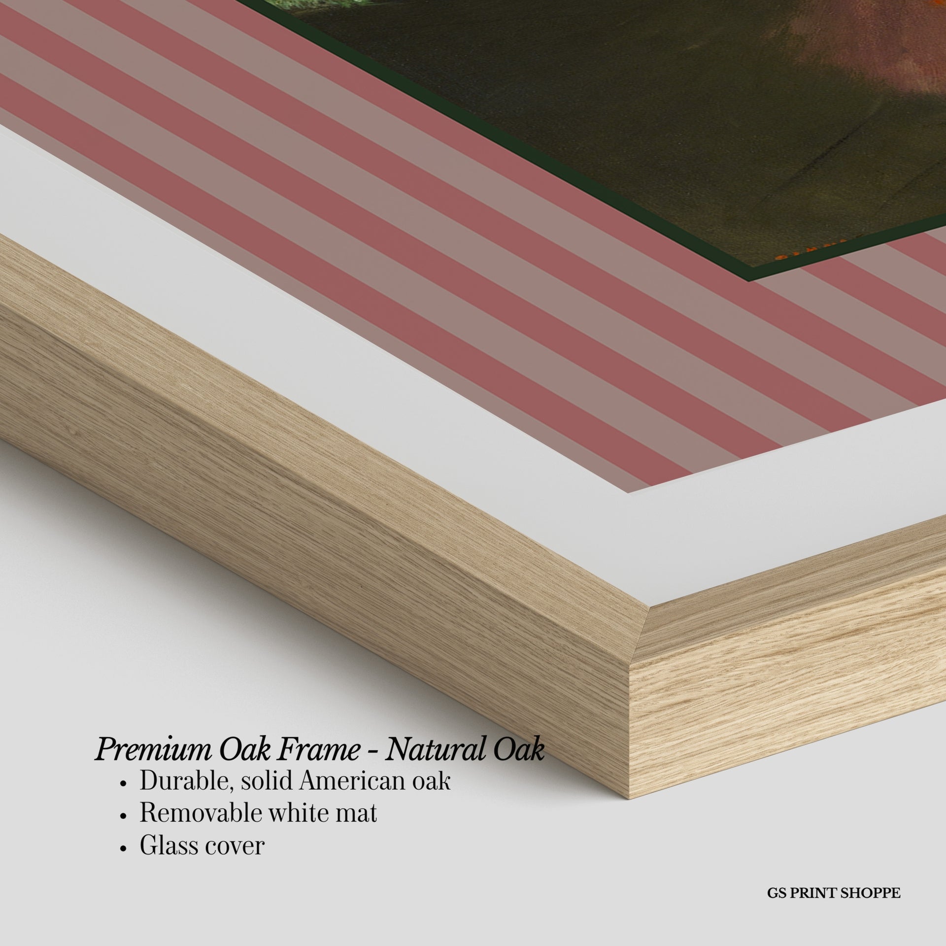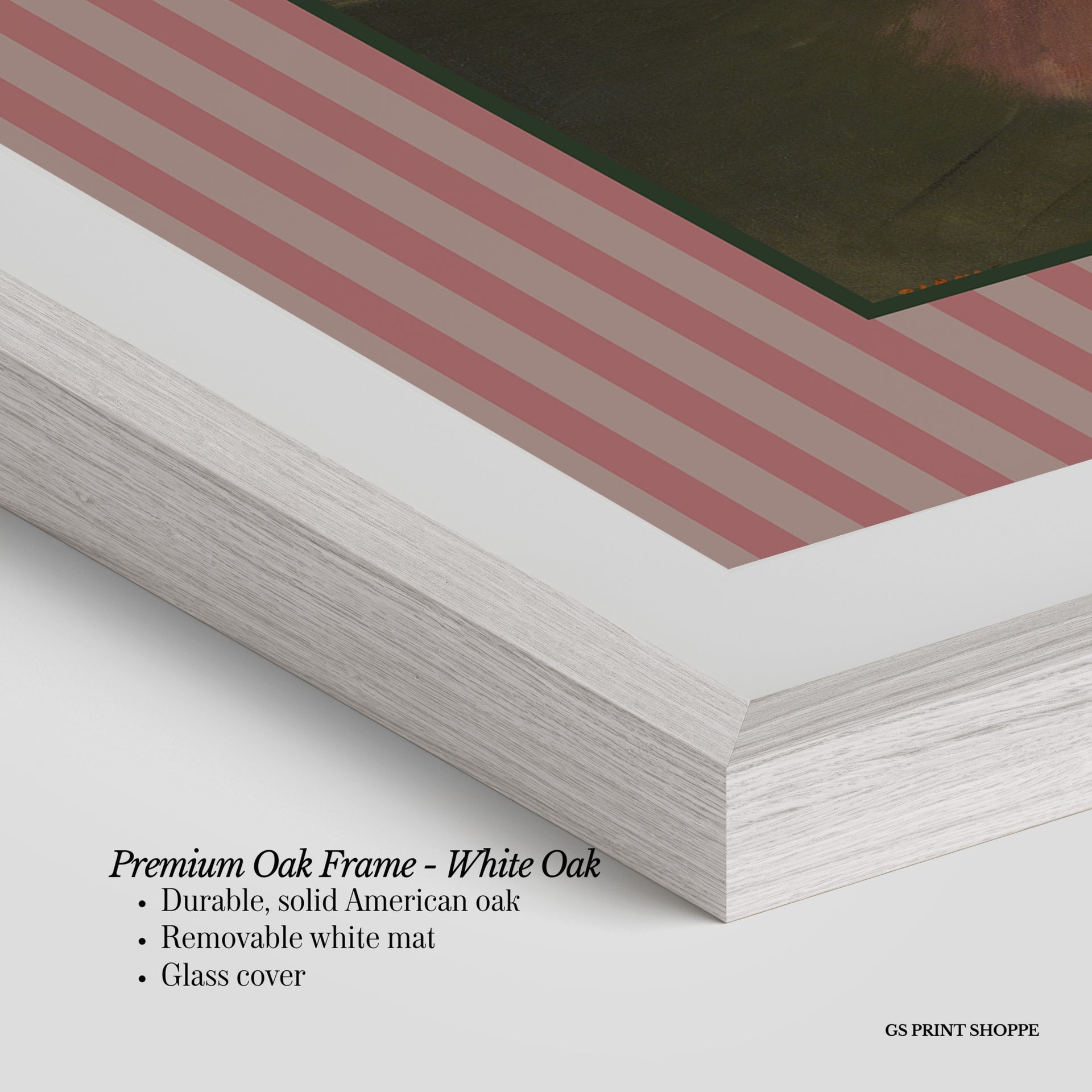 Premium Oak Frame: Our premium oak frame is crafted from solid American oak, offering a warm, natural feel with a high-end finish. We complete this elevated offering with a bright white removable mat and real glass for a versatile and polished look.