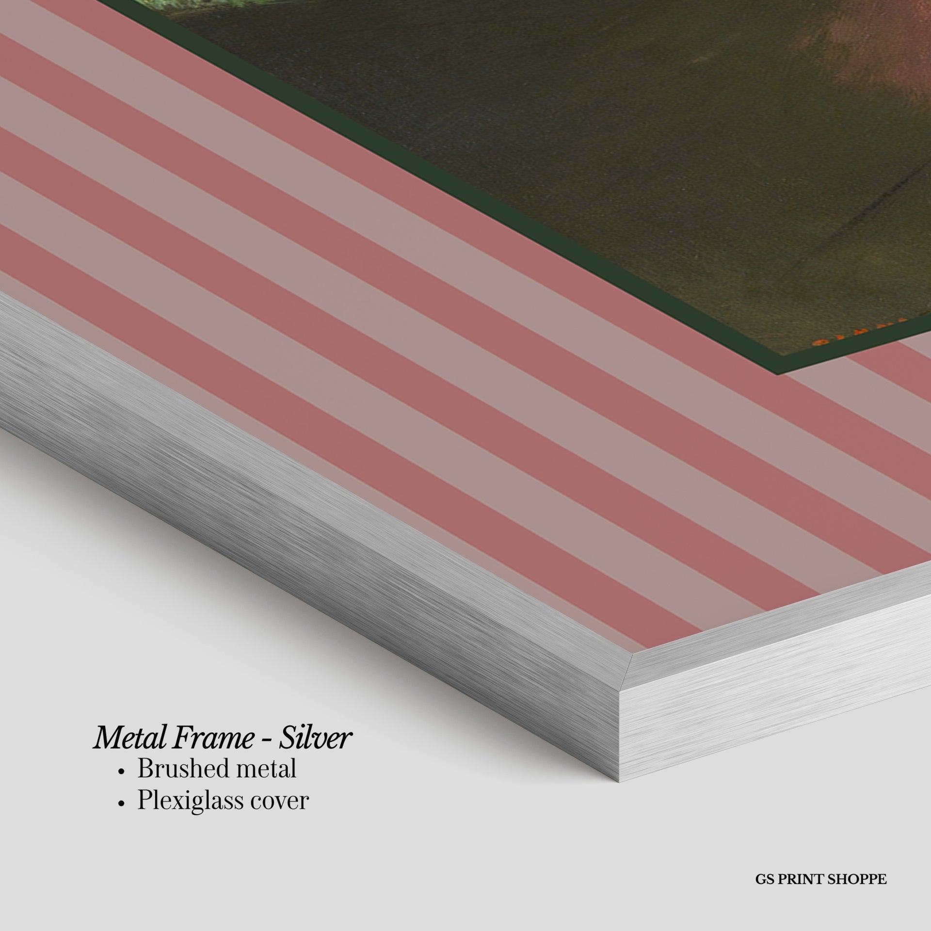 Metal Frame: Sleek and modern, our metal frame is crafted with brushed metal for a polished finish. It comes with durable plexiglass and sturdy metal hangers for horizontal or vertical display.