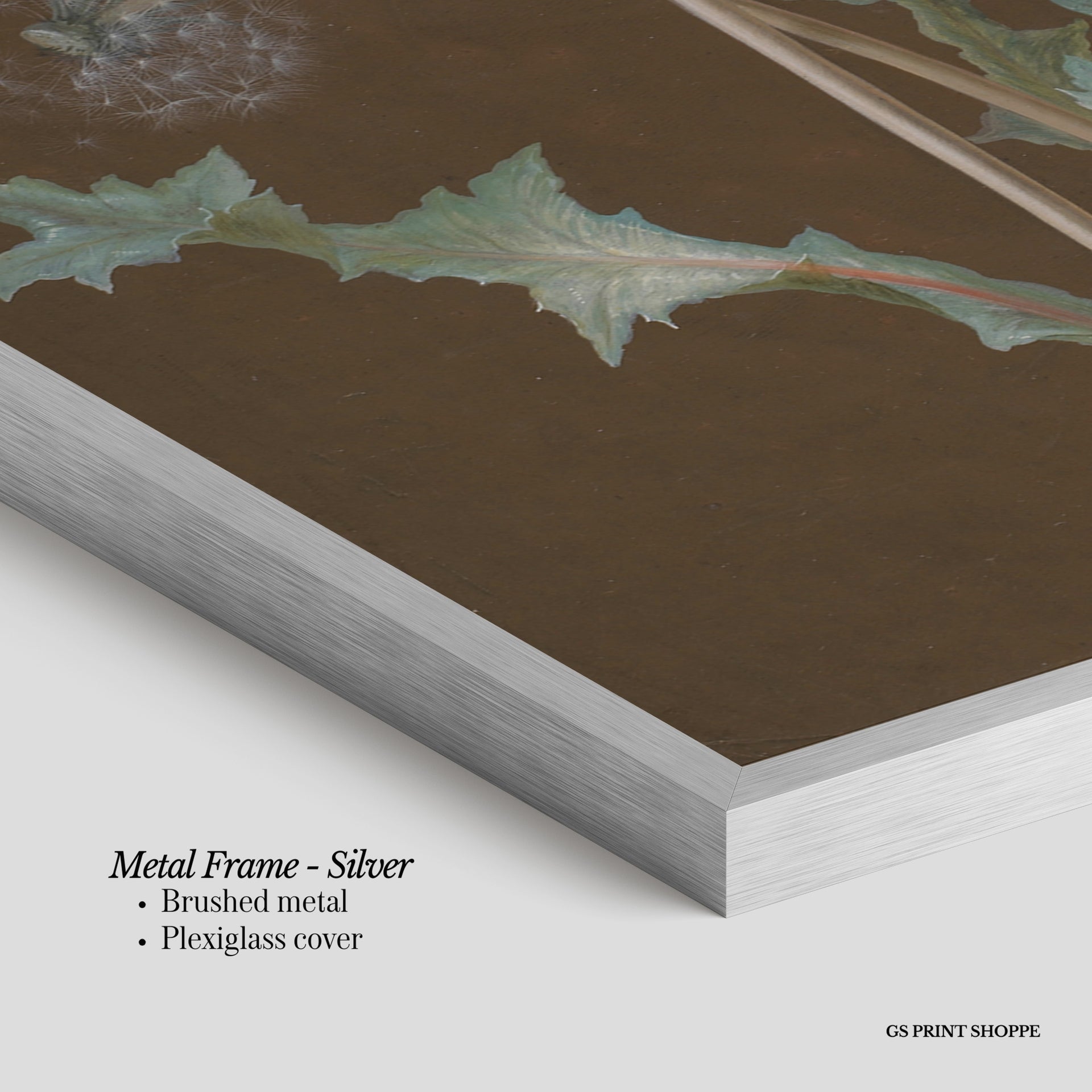 Metal Frame: Sleek and modern, our metal frame is crafted with brushed metal for a polished finish. It comes with durable plexiglass and sturdy metal hangers for horizontal or vertical display.
