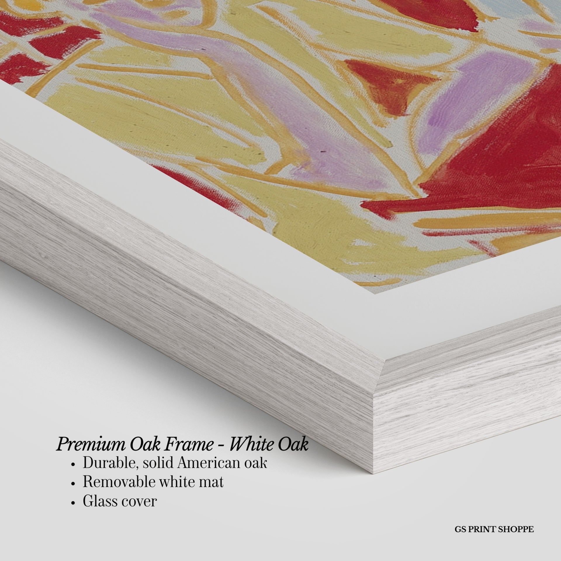 Premium Oak Frame: Our premium oak frame is crafted from solid American oak, offering a warm, natural feel with a high-end finish. We complete this elevated offering with a bright white removable mat and real glass for a versatile and polished look.