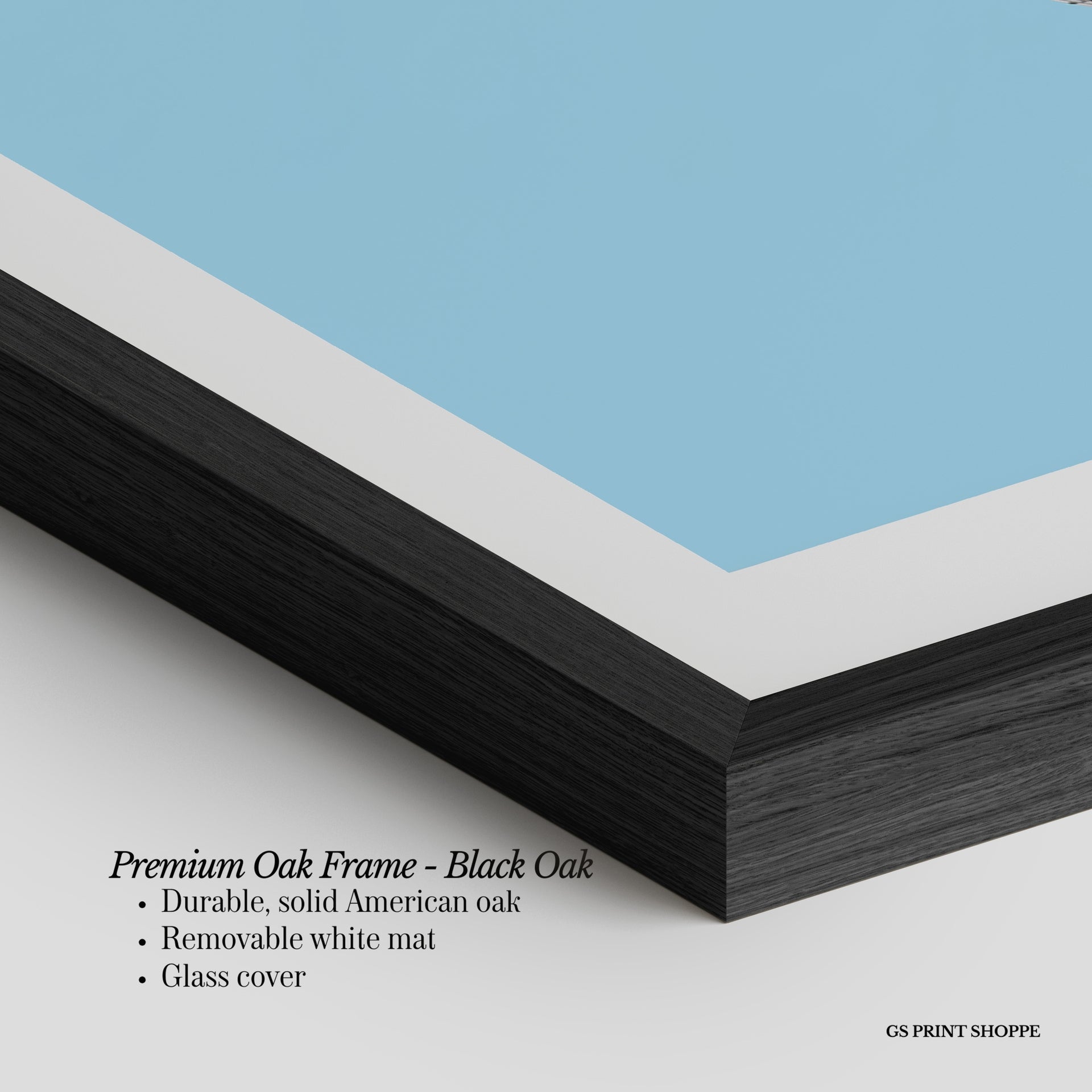 Oak Frame: Our solid oak frame blends durability with timeless appeal. Made from American oak, it features a smooth finish and plexiglass for long-lasting quality.