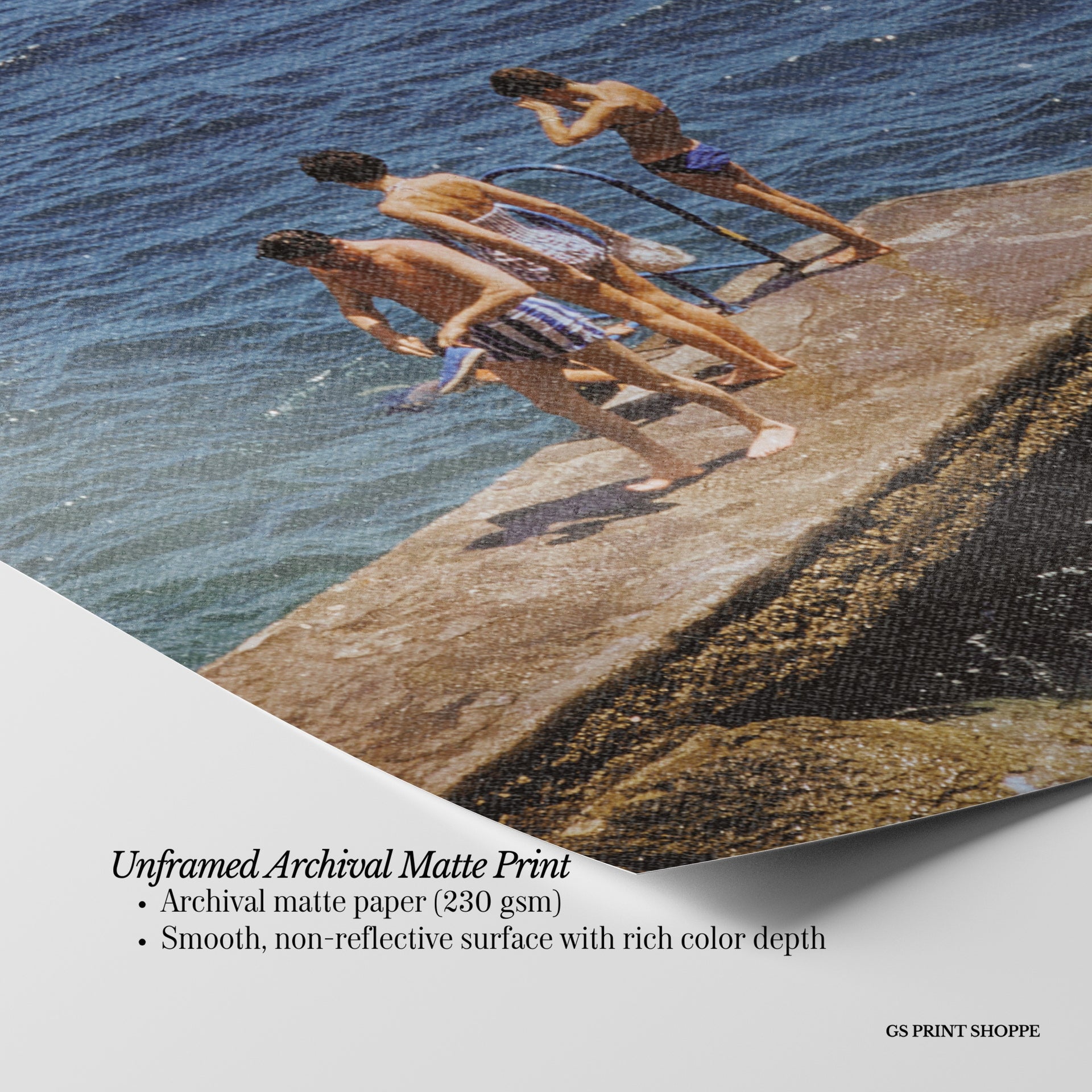Unframed: This print is professionally printed on archival matte paper (230 gsm), a smooth, acid-free paper with a non-reflective finish. It will be carefully packaged to arrive safely at your door.