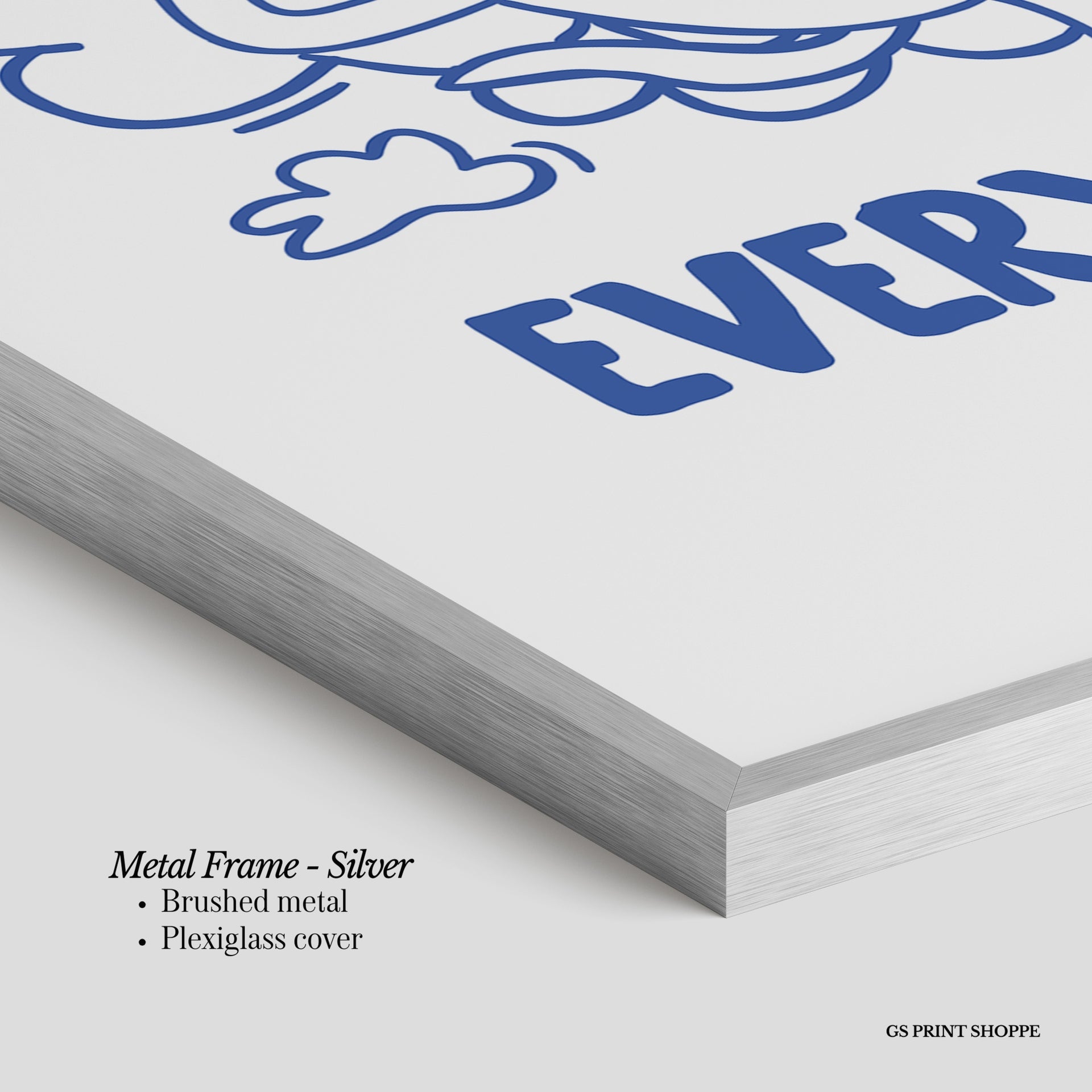 Metal Frame: Sleek and modern, our metal frame is crafted with brushed metal for a polished finish. It comes with durable plexiglass and sturdy metal hangers for horizontal or vertical display.