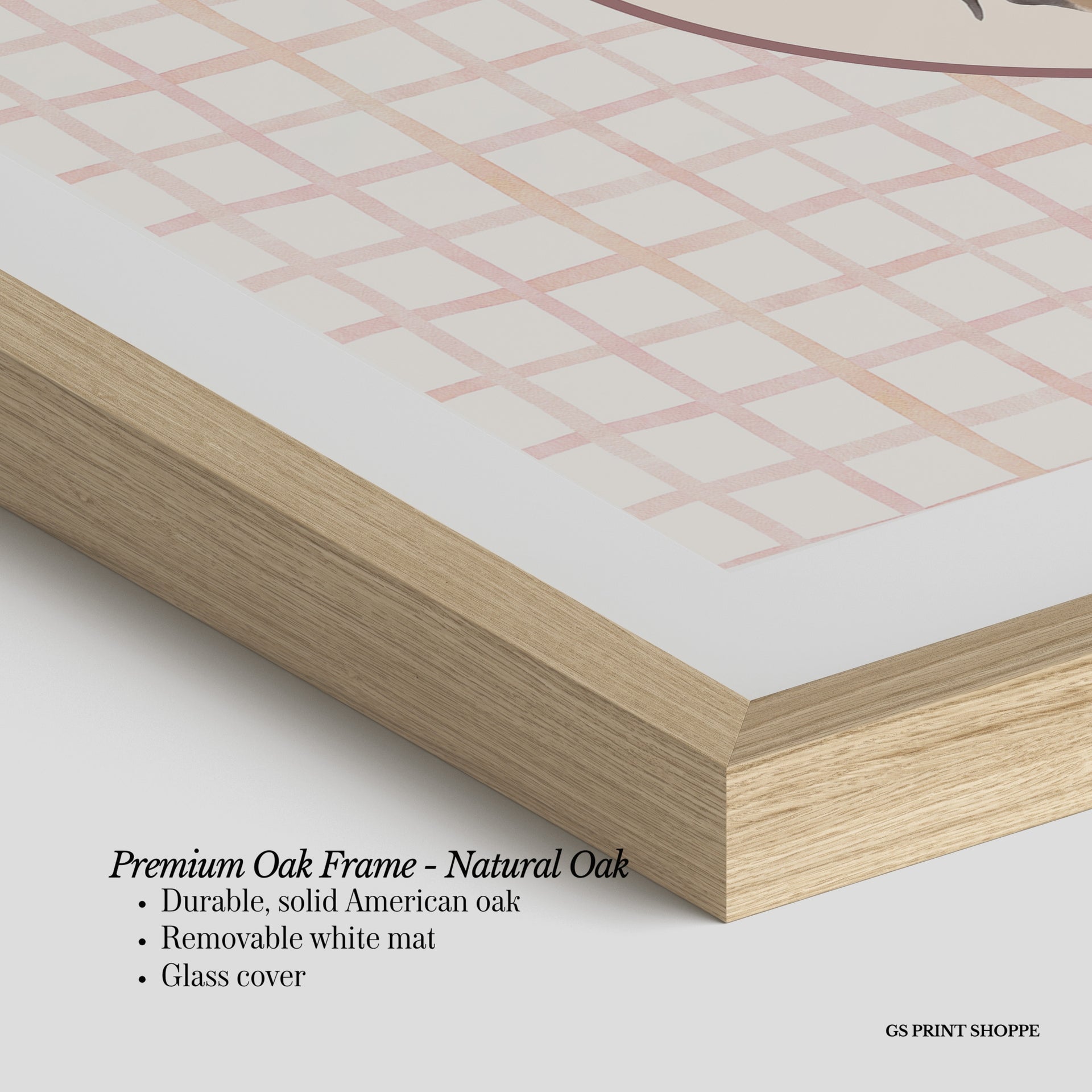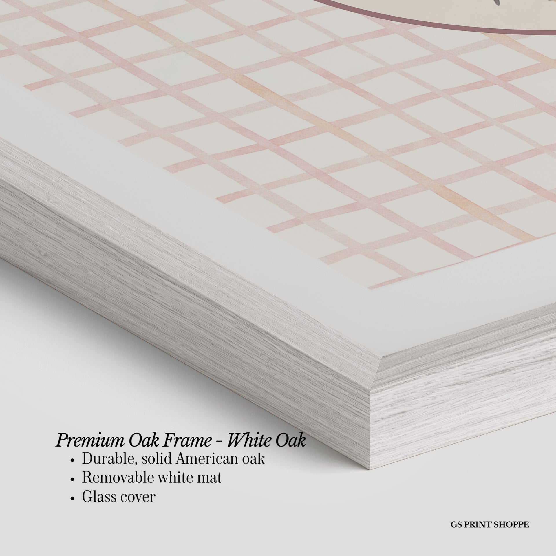 Premium Oak Frame: Our premium oak frame is crafted from solid American oak, offering a warm, natural feel with a high-end finish. We complete this elevated offering with a bright white removable mat and real glass for a versatile and polished look.