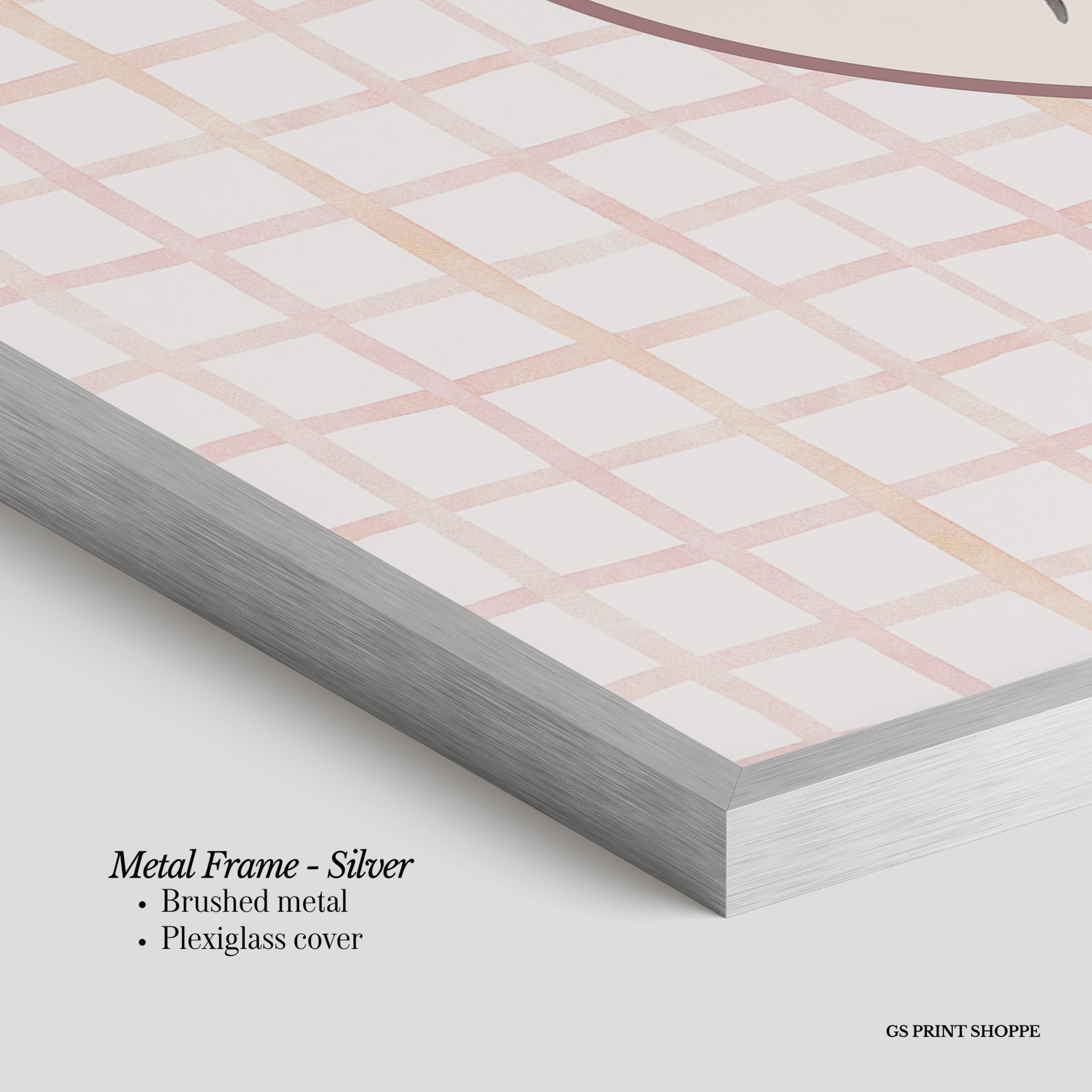Metal Frame: Sleek and modern, our metal frame is crafted with brushed metal for a polished finish. It comes with durable plexiglass and sturdy metal hangers for horizontal or vertical display.