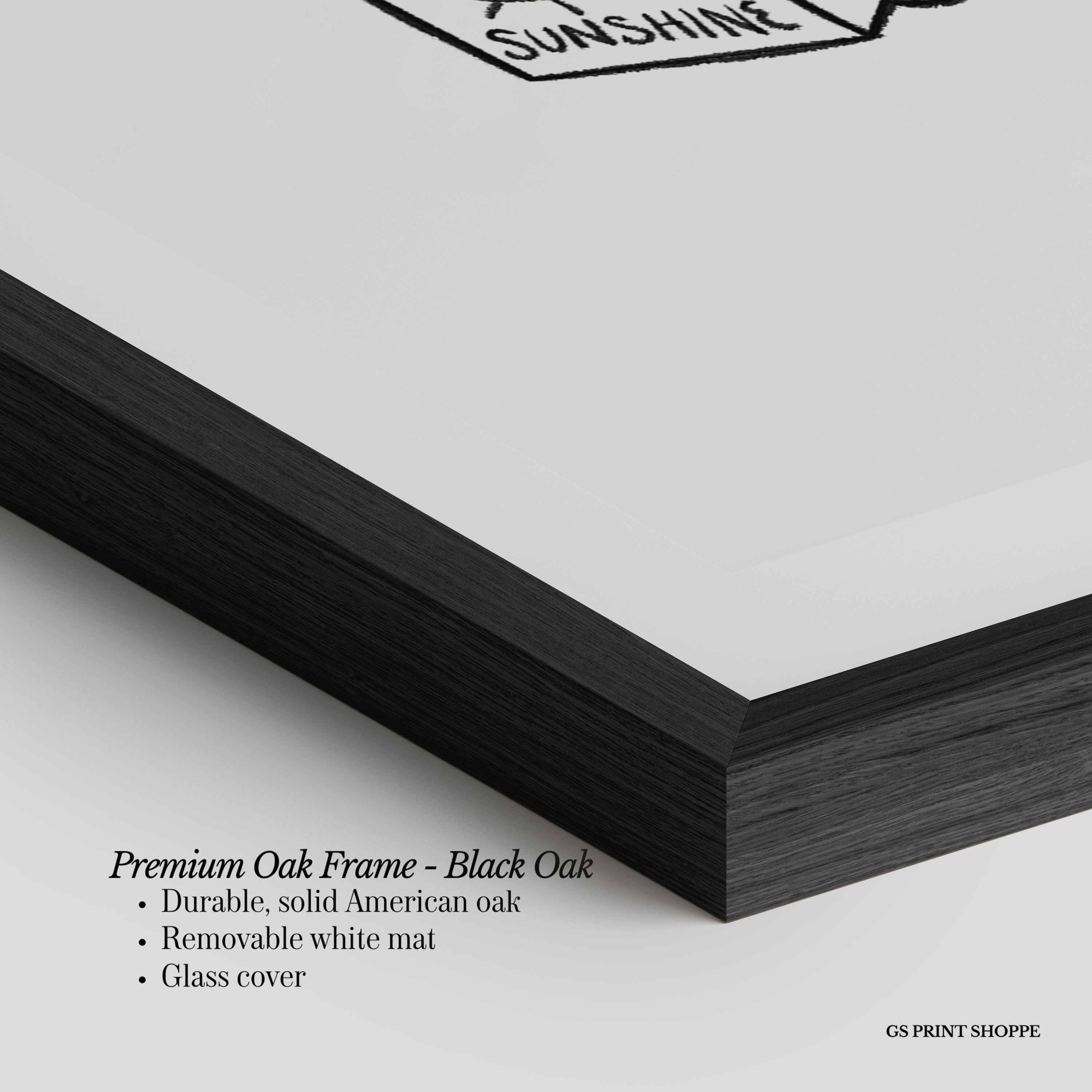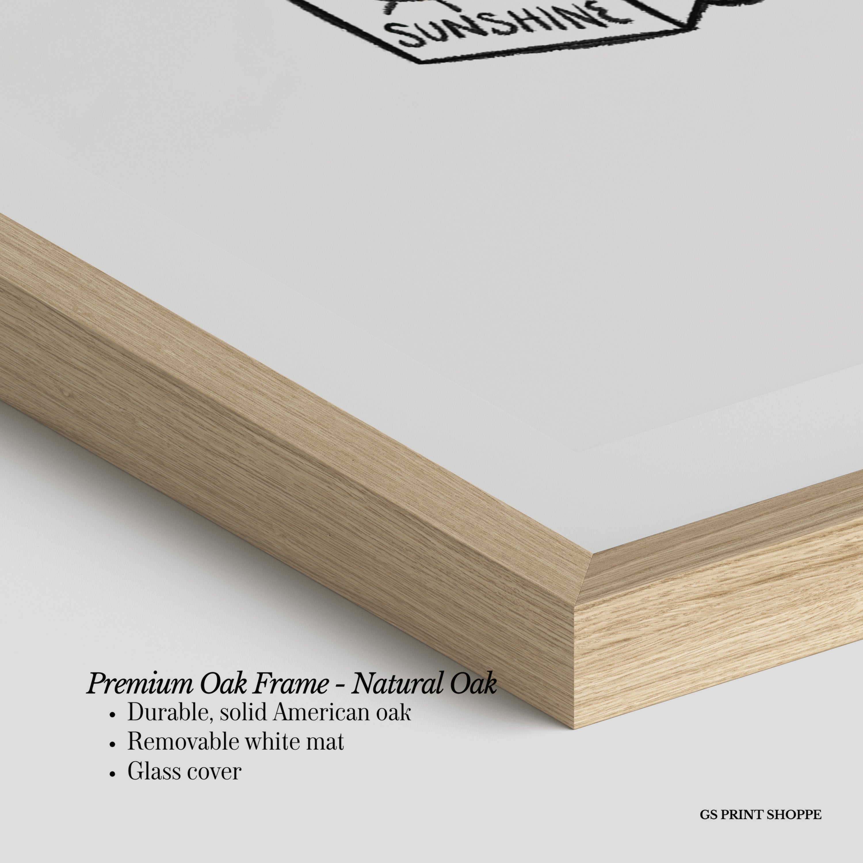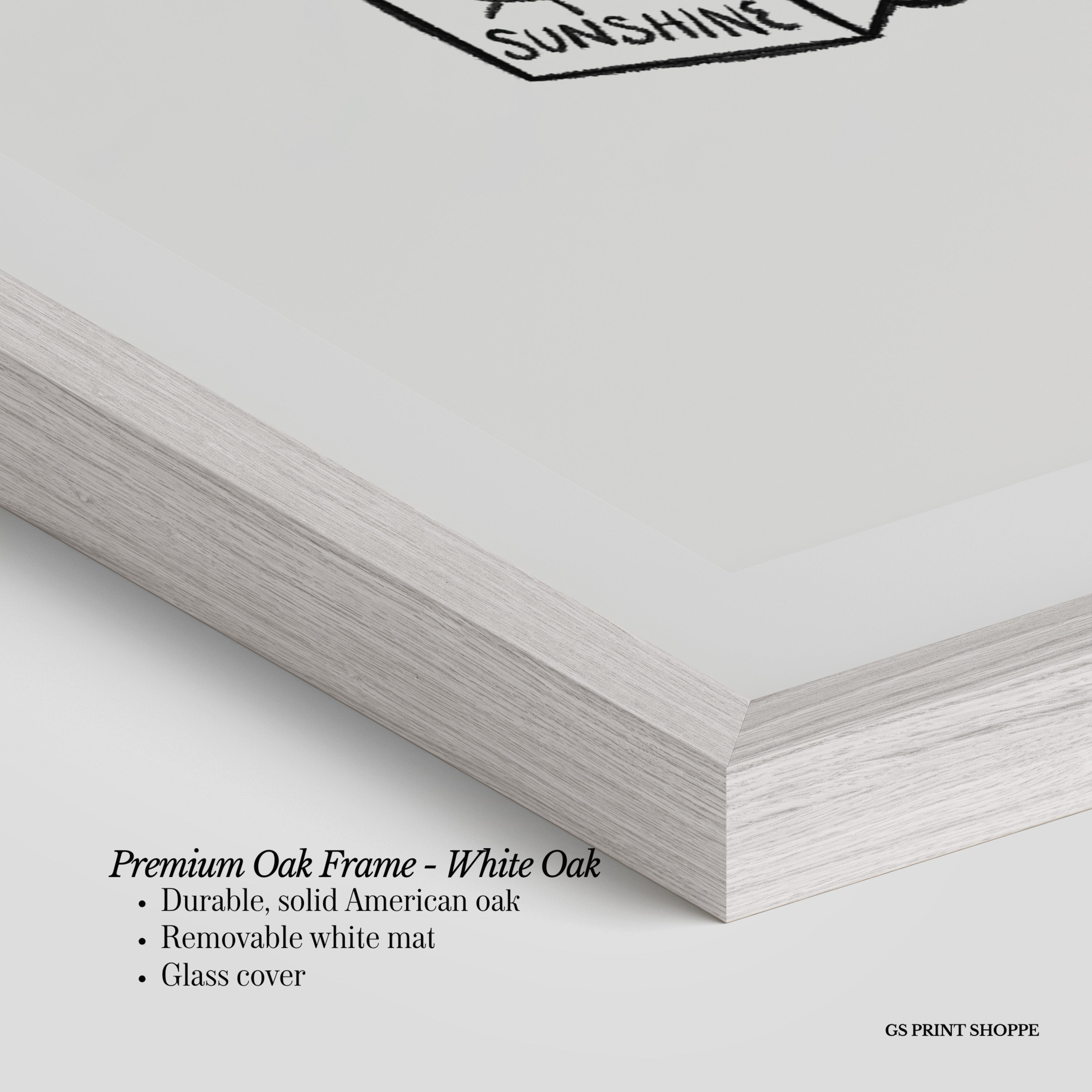 Premium Oak Frame: Our premium oak frame is crafted from solid American oak, offering a warm, natural feel with a high-end finish. We complete this elevated offering with a bright white removable mat and real glass for a versatile and polished look.