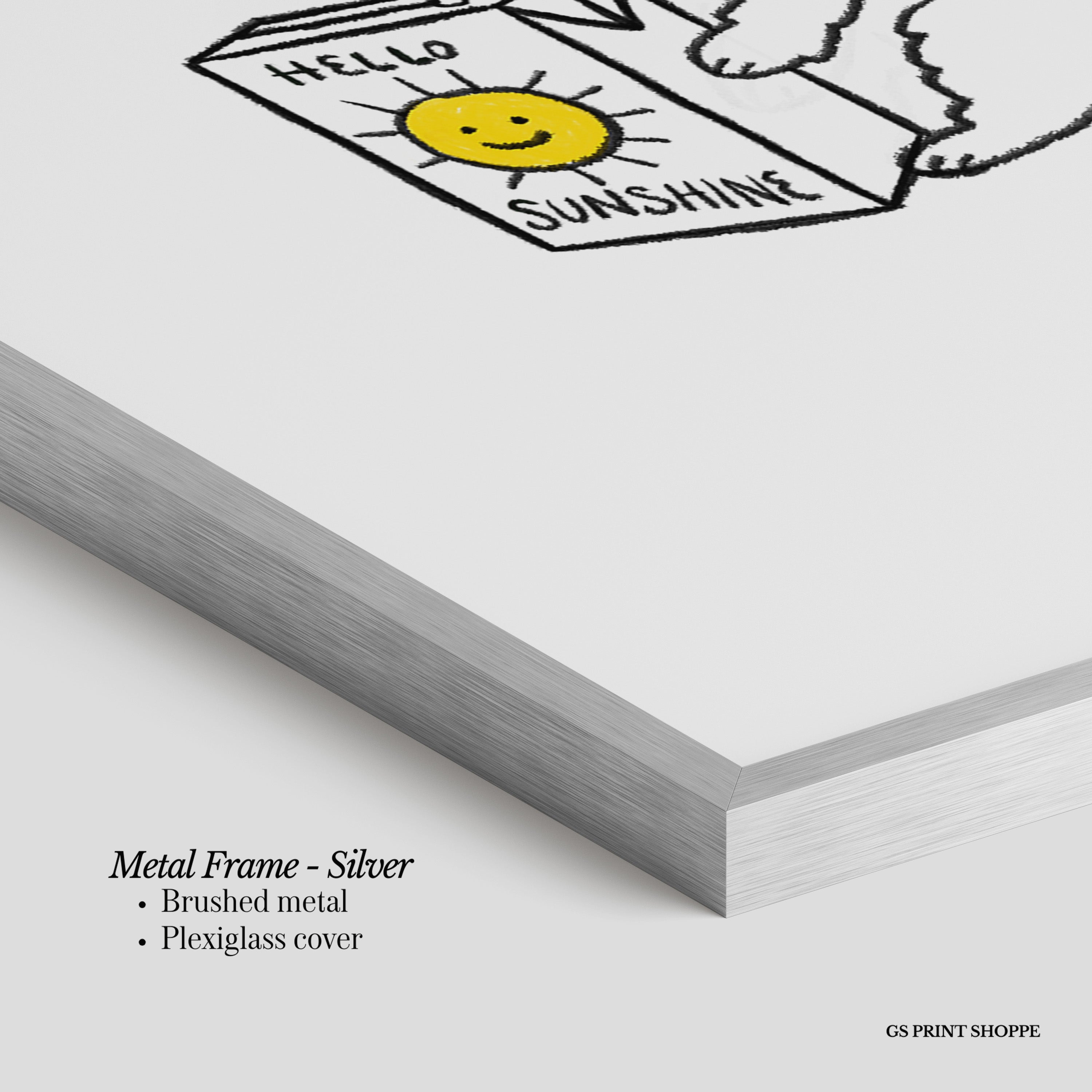 Metal Frame: Sleek and modern, our metal frame is crafted with brushed metal for a polished finish. It comes with durable plexiglass and sturdy metal hangers for horizontal or vertical display.