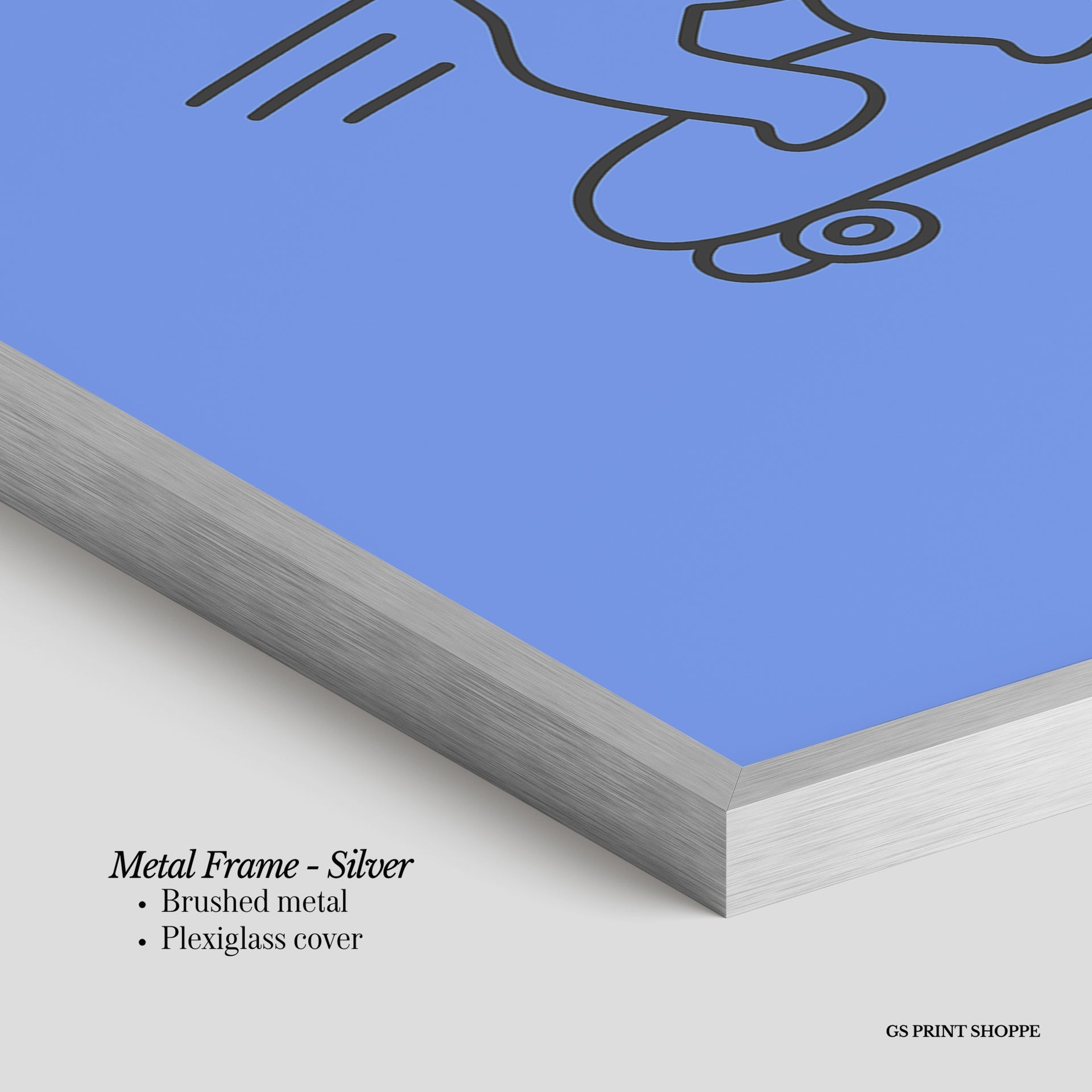 Metal Frame: Sleek and modern, our metal frame is crafted with brushed metal for a polished finish. It comes with durable plexiglass and sturdy metal hangers for horizontal or vertical display.