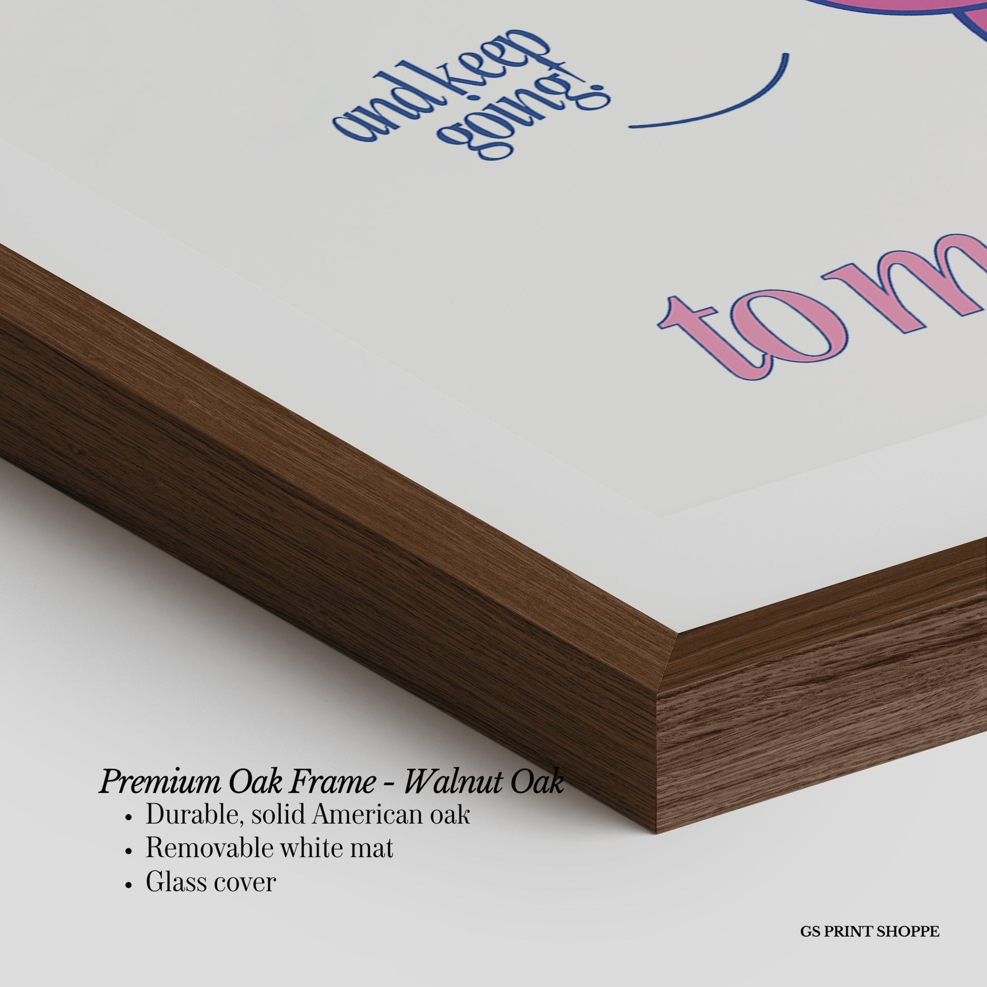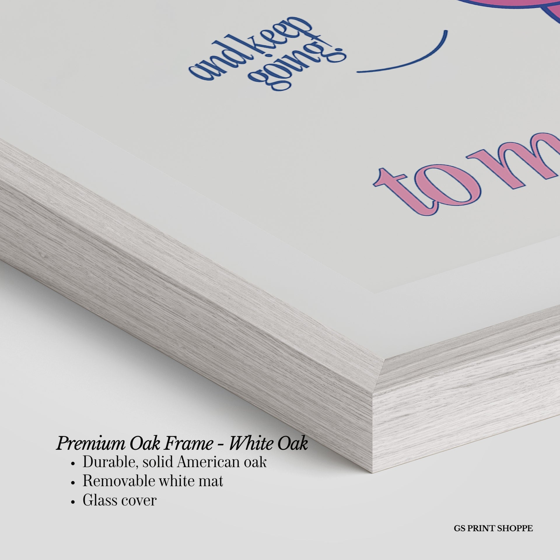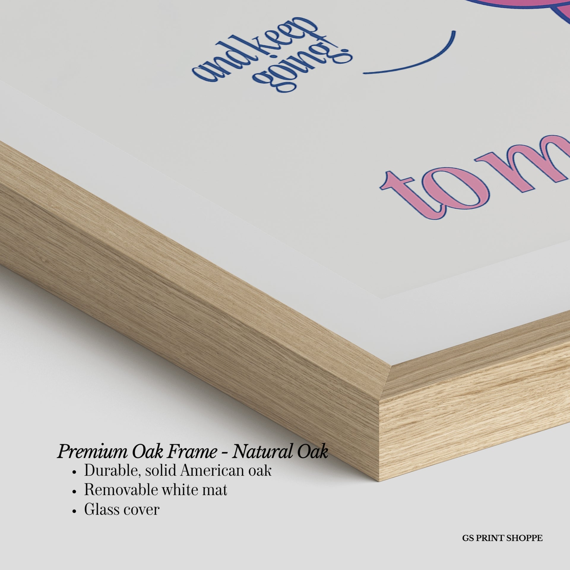 Premium Oak Frame: Our premium oak frame is crafted from solid American oak, offering a warm, natural feel with a high-end finish. We complete this elevated offering with a bright white removable mat and real glass for a versatile and polished look.