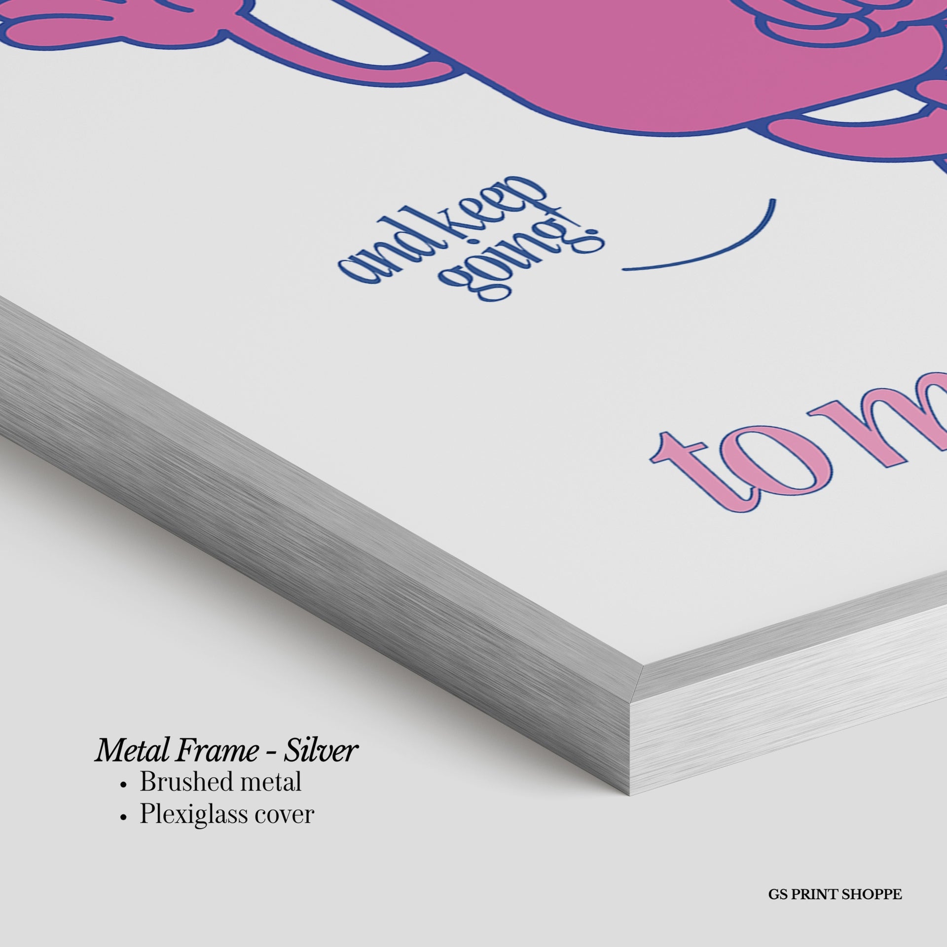 Metal Frame: Sleek and modern, our metal frame is crafted with brushed metal for a polished finish. It comes with durable plexiglass and sturdy metal hangers for horizontal or vertical display.