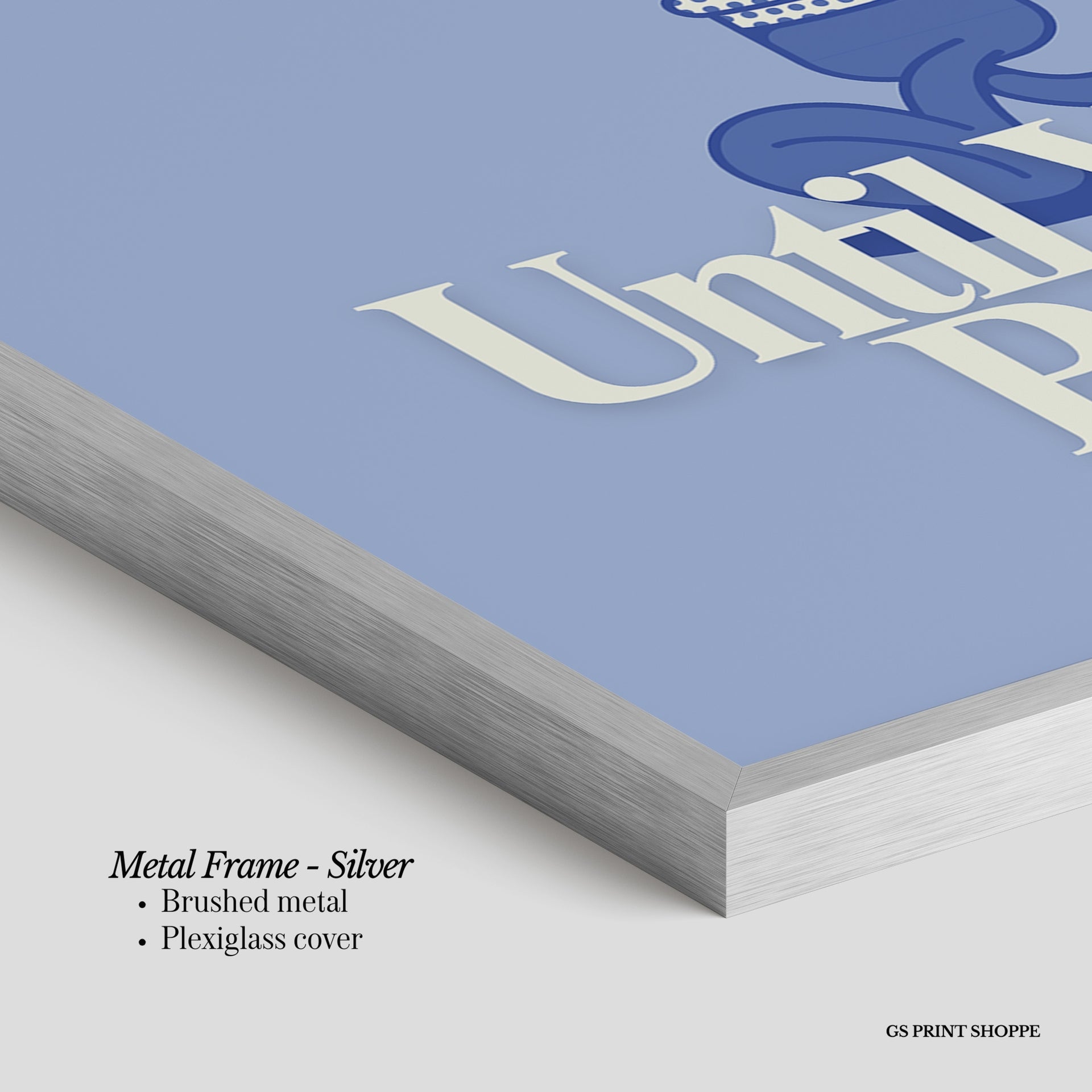 Metal Frame: Sleek and modern, our metal frame is crafted with brushed metal for a polished finish. It comes with durable plexiglass and sturdy metal hangers for horizontal or vertical display.