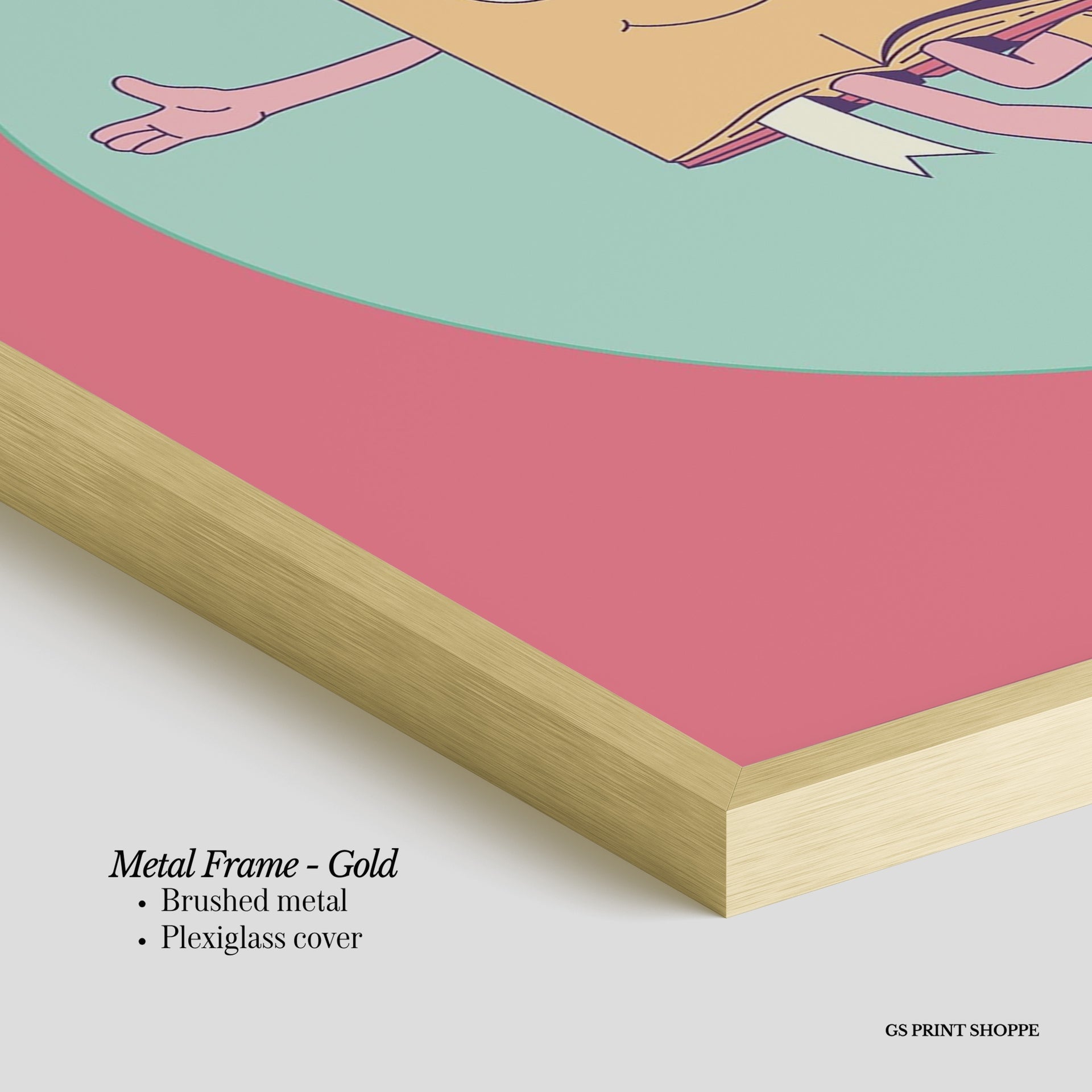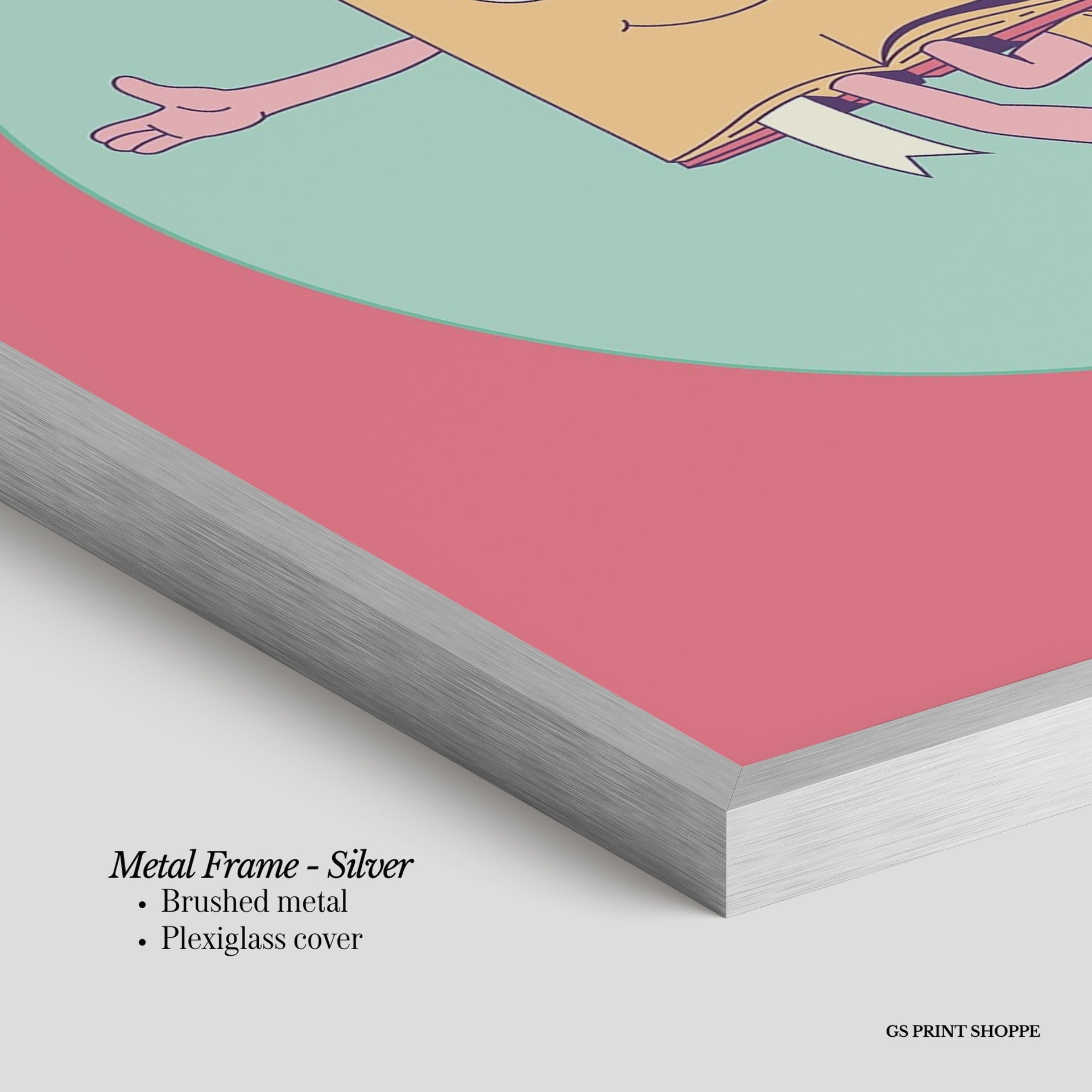 Metal Frame: Sleek and modern, our metal frame is crafted with brushed metal for a polished finish. It comes with durable plexiglass and sturdy metal hangers for horizontal or vertical display.