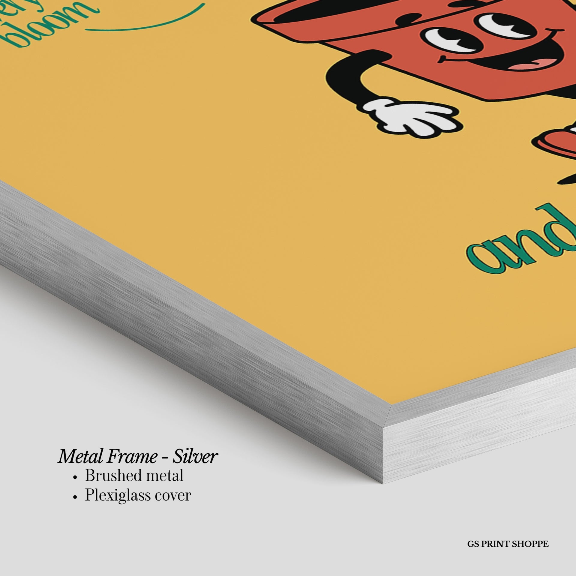 Metal Frame: Sleek and modern, our metal frame is crafted with brushed metal for a polished finish. It comes with durable plexiglass and sturdy metal hangers for horizontal or vertical display.