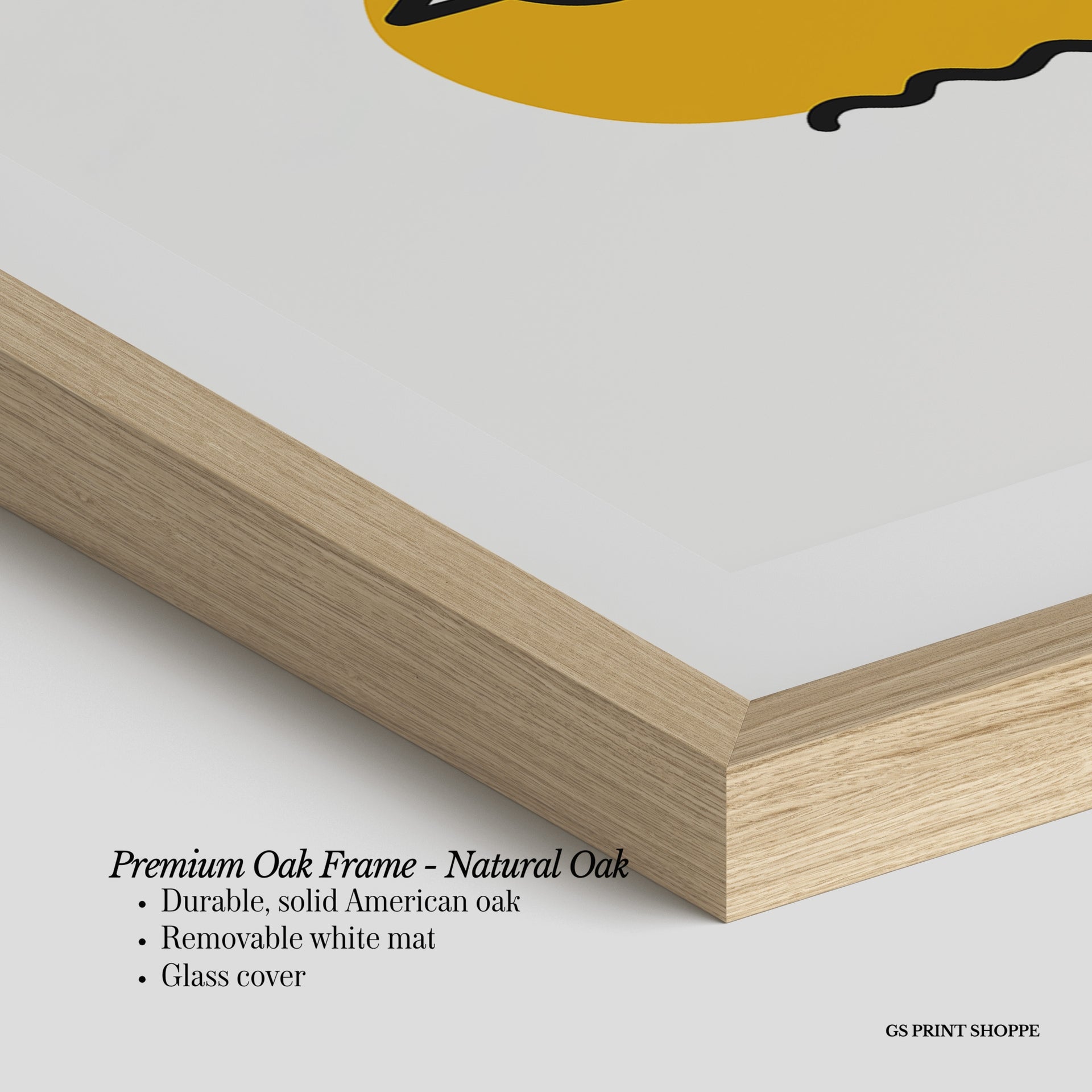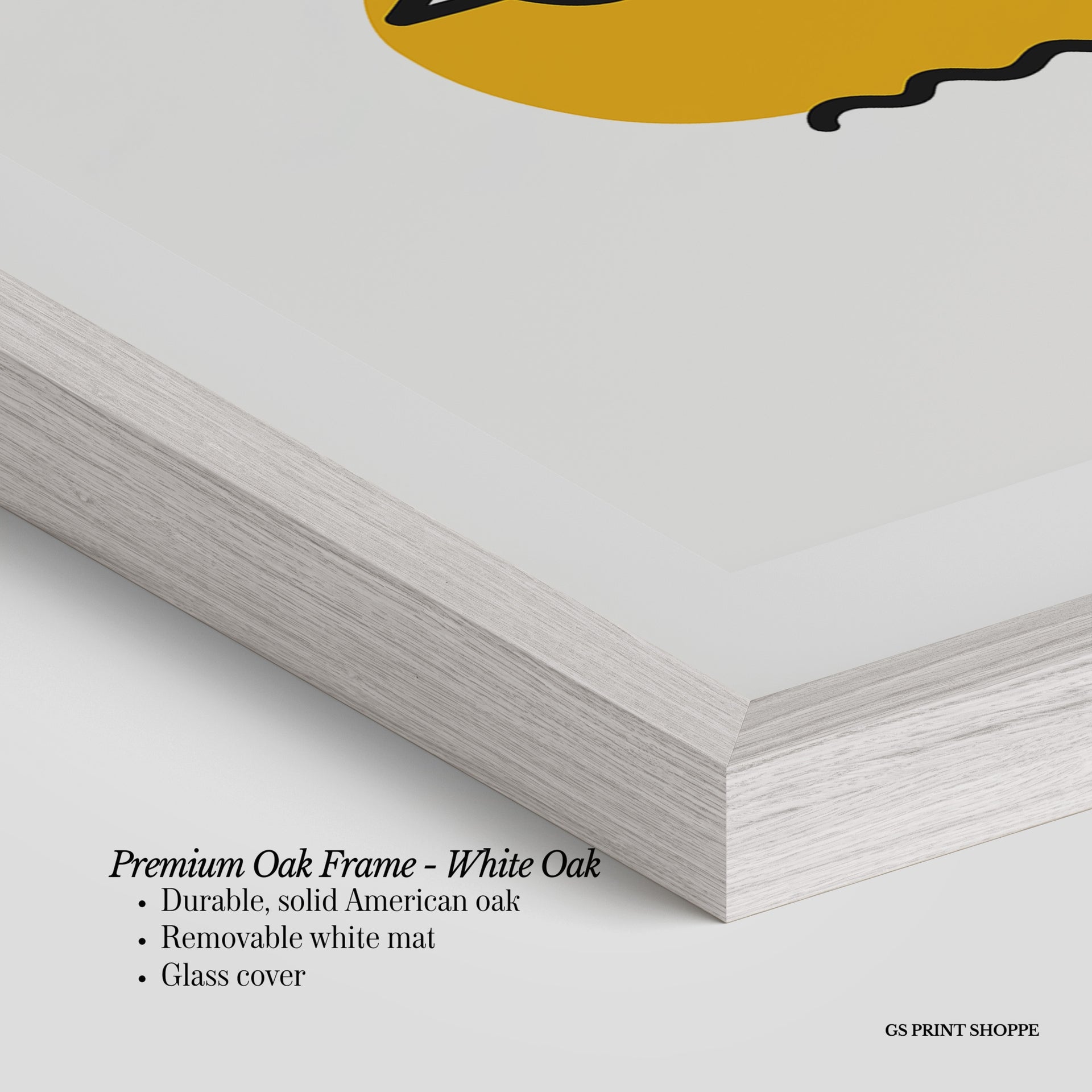 Premium Oak Frame: Our premium oak frame is crafted from solid American oak, offering a warm, natural feel with a high-end finish. We complete this elevated offering with a bright white removable mat and real glass for a versatile and polished look.