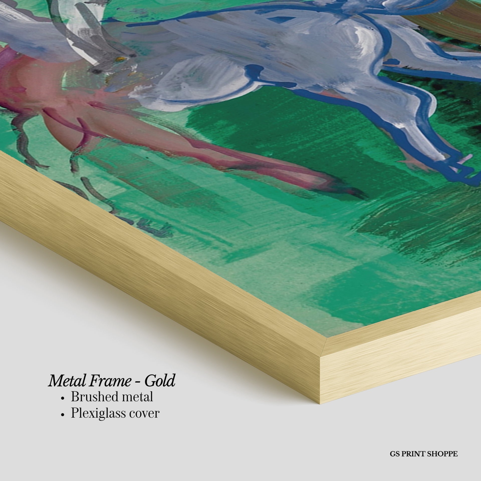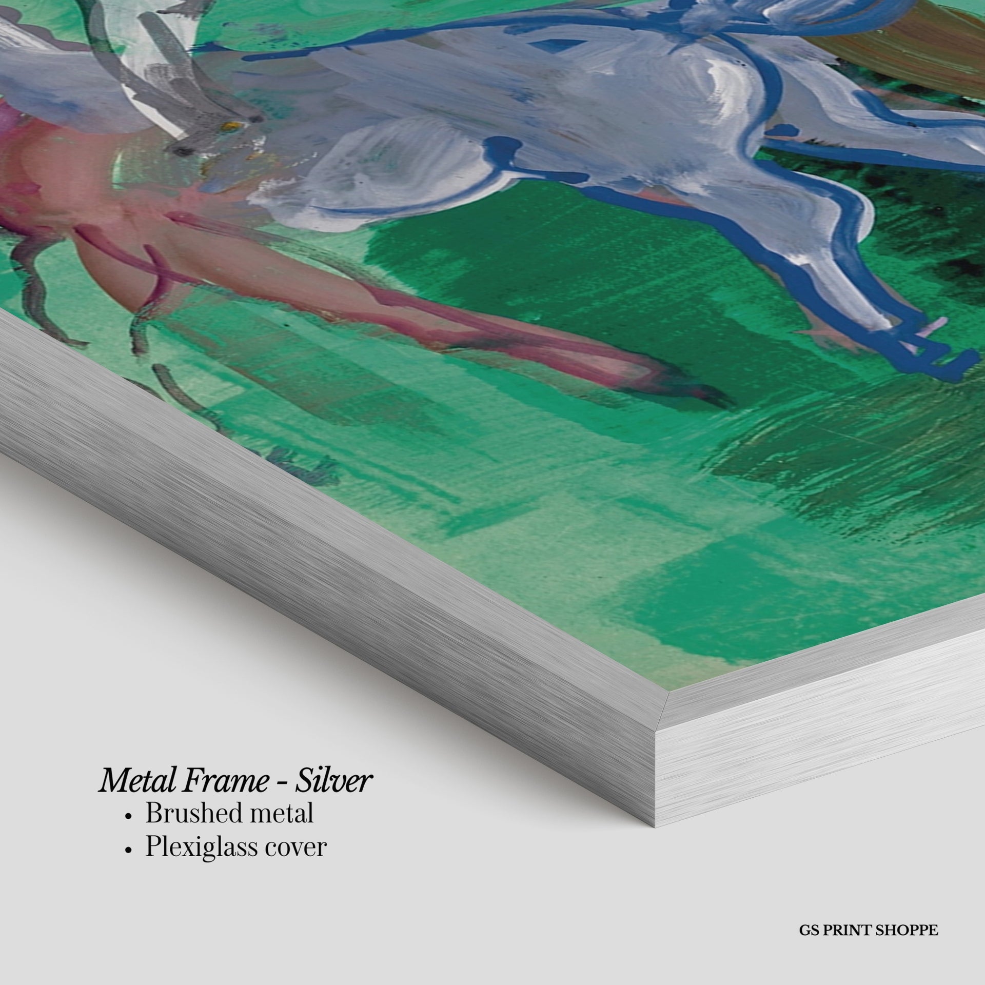 Metal Frame: Sleek and modern, our metal frame is crafted with brushed metal for a polished finish. It comes with durable plexiglass and sturdy metal hangers for horizontal or vertical display.