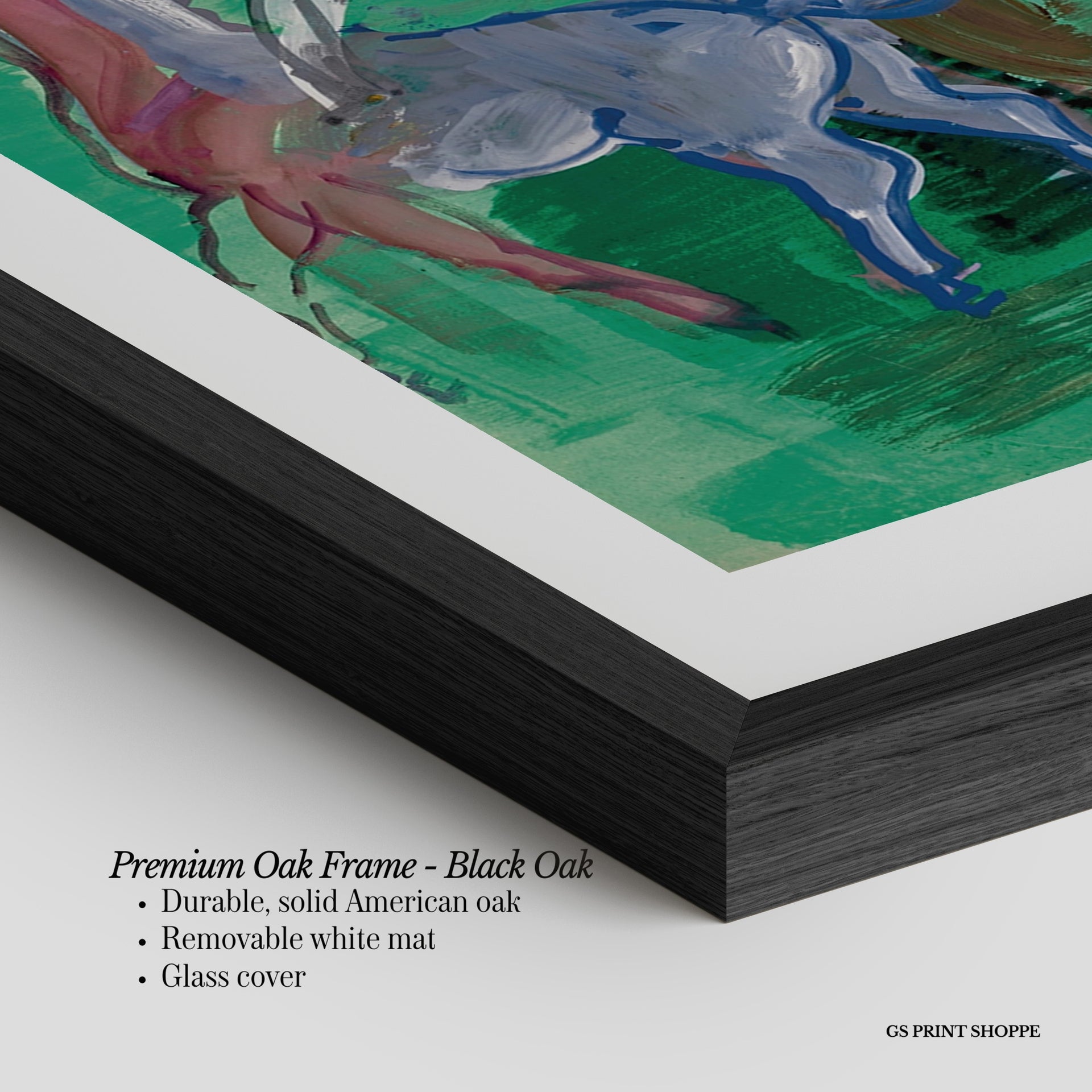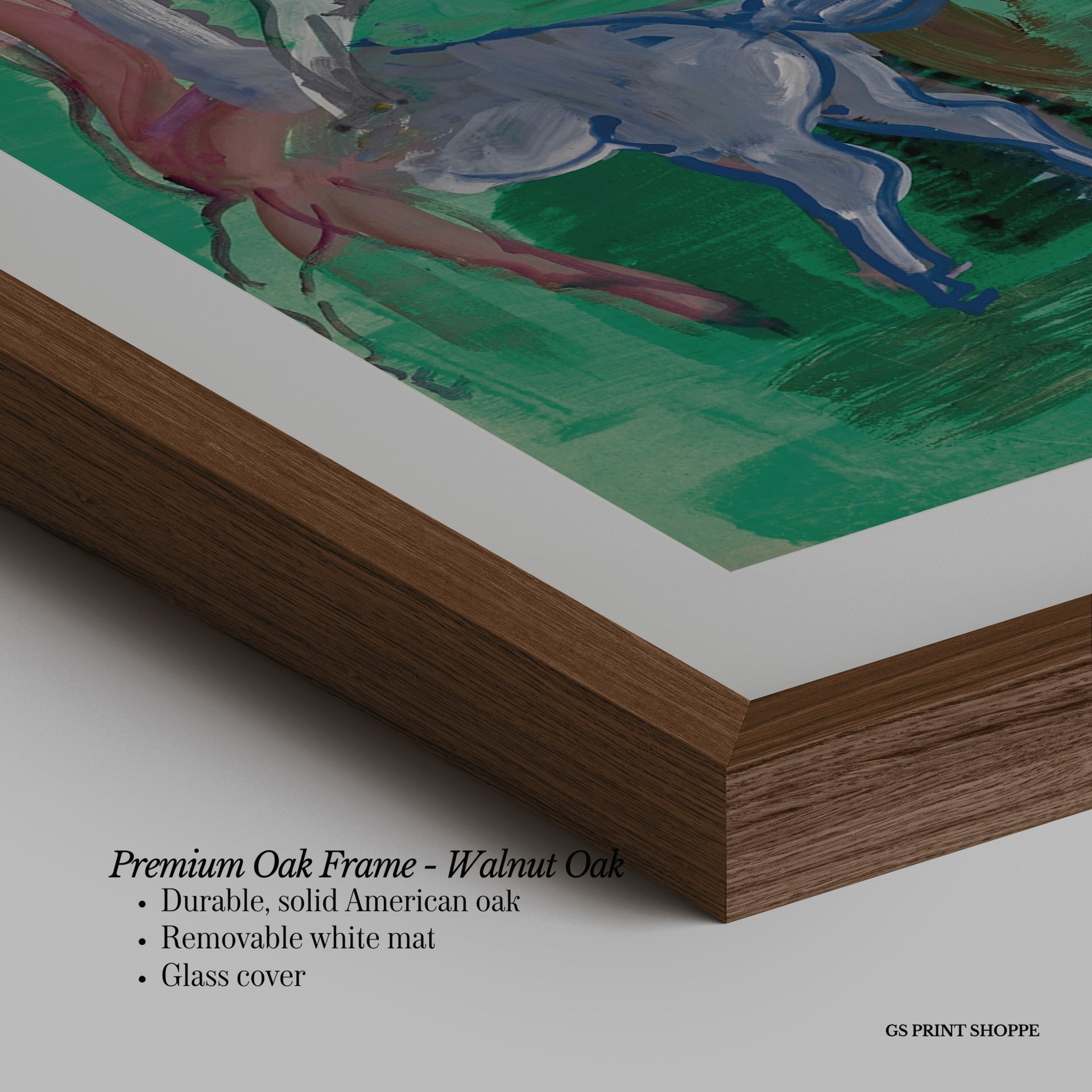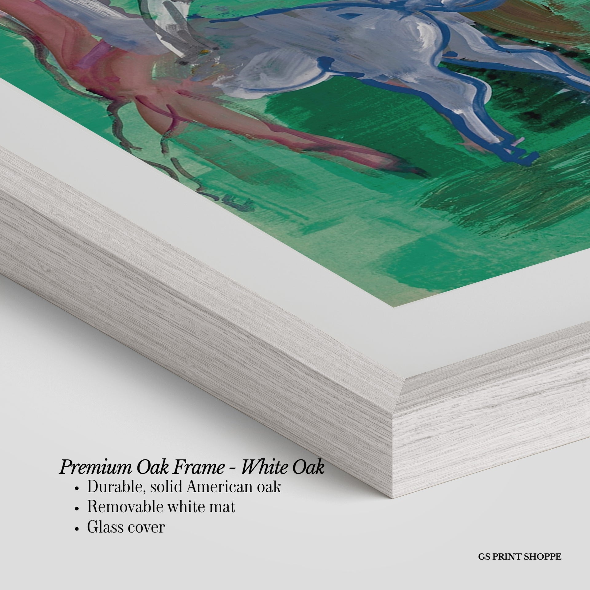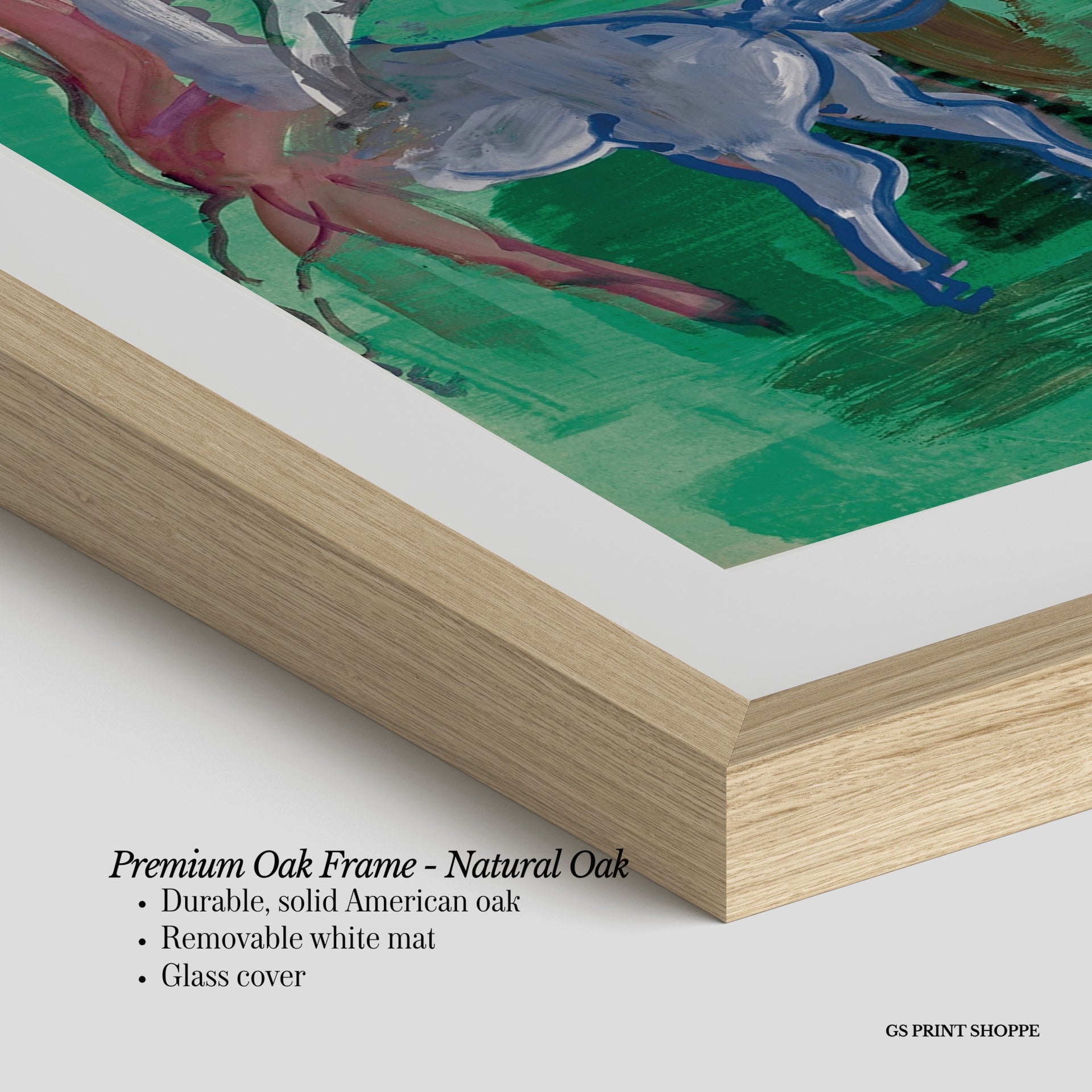 Premium Oak Frame: Our premium oak frame is crafted from solid American oak, offering a warm, natural feel with a high-end finish. We complete this elevated offering with a bright white removable mat and real glass for a versatile and polished look.