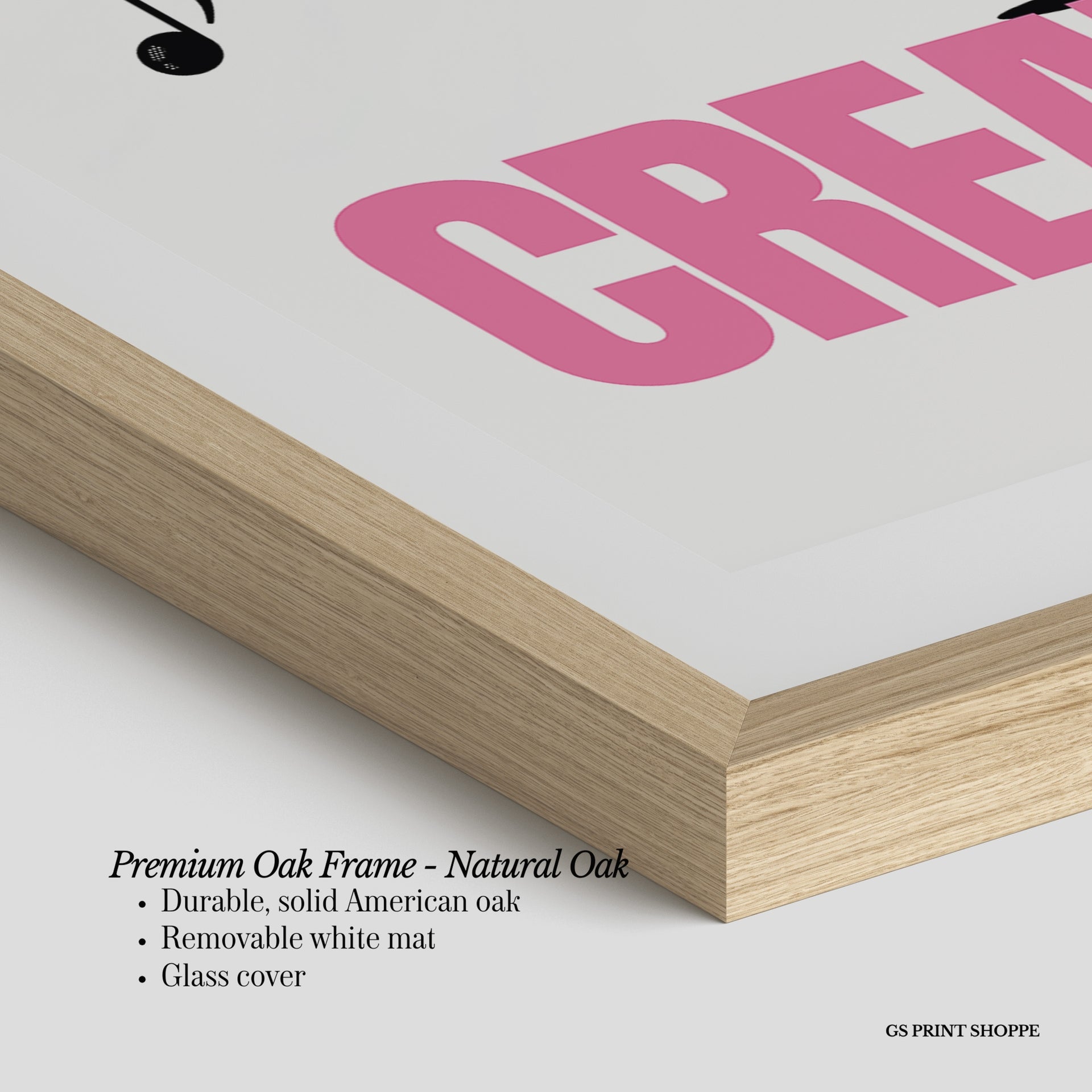 Premium Oak Frame: Our premium oak frame is crafted from solid American oak, offering a warm, natural feel with a high-end finish. We complete this elevated offering with a bright white removable mat and real glass for a versatile and polished look.
