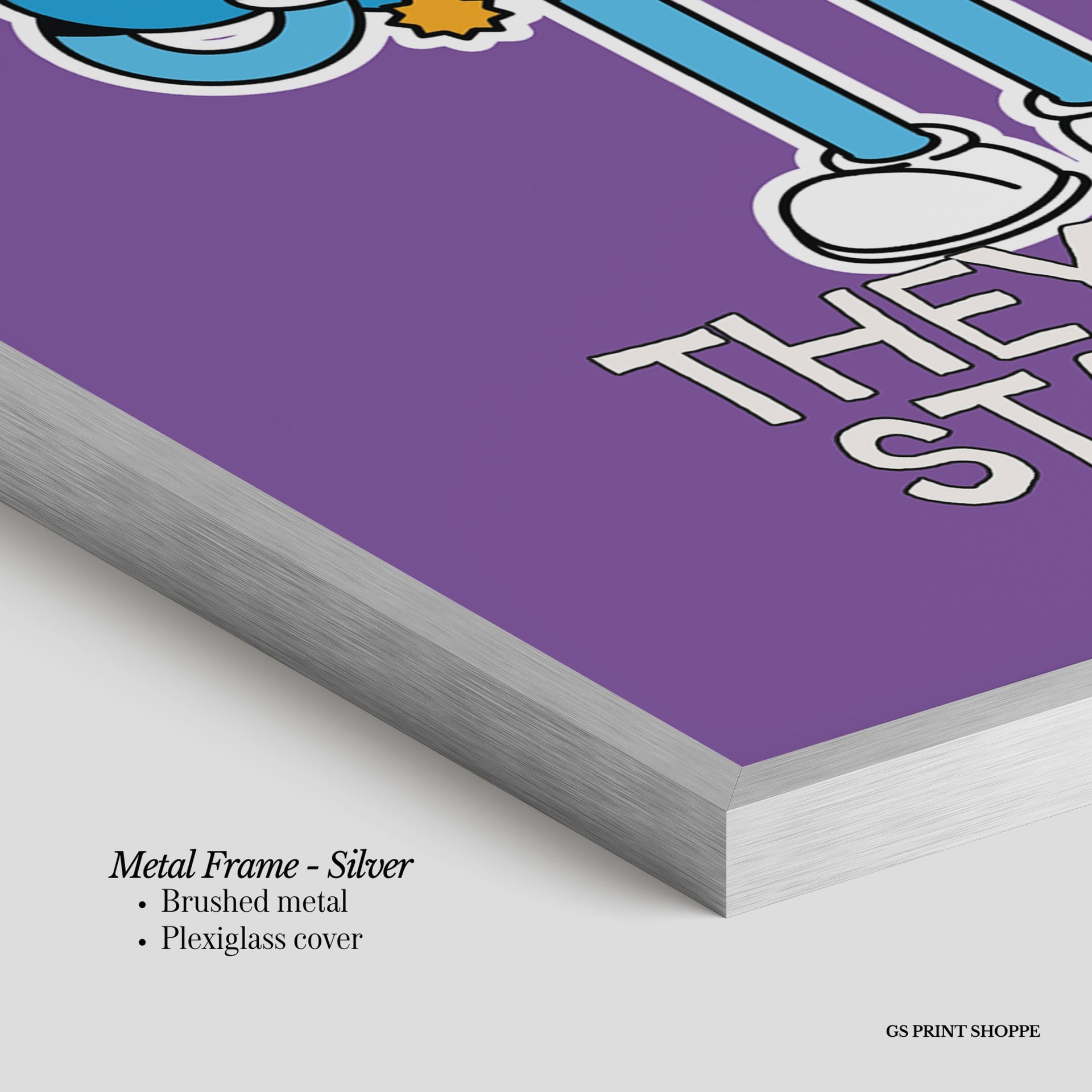 Metal Frame: Sleek and modern, our metal frame is crafted with brushed metal for a polished finish. It comes with durable plexiglass and sturdy metal hangers for horizontal or vertical display.