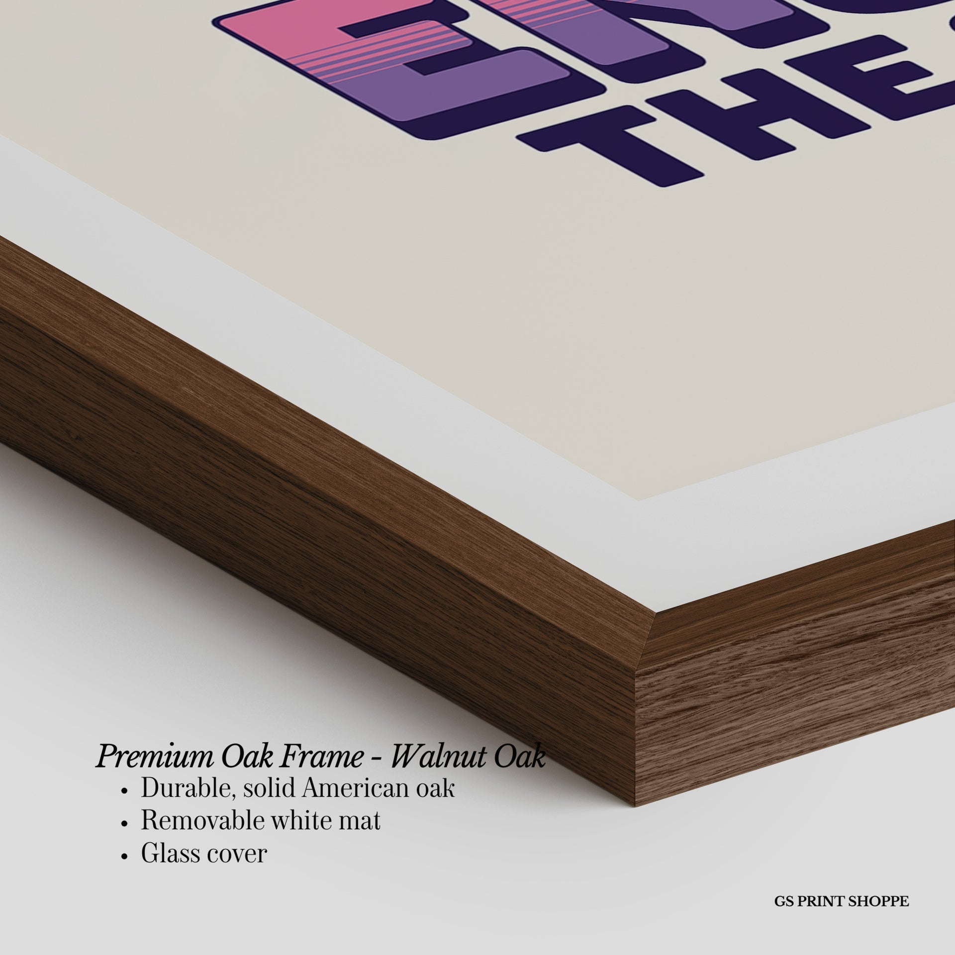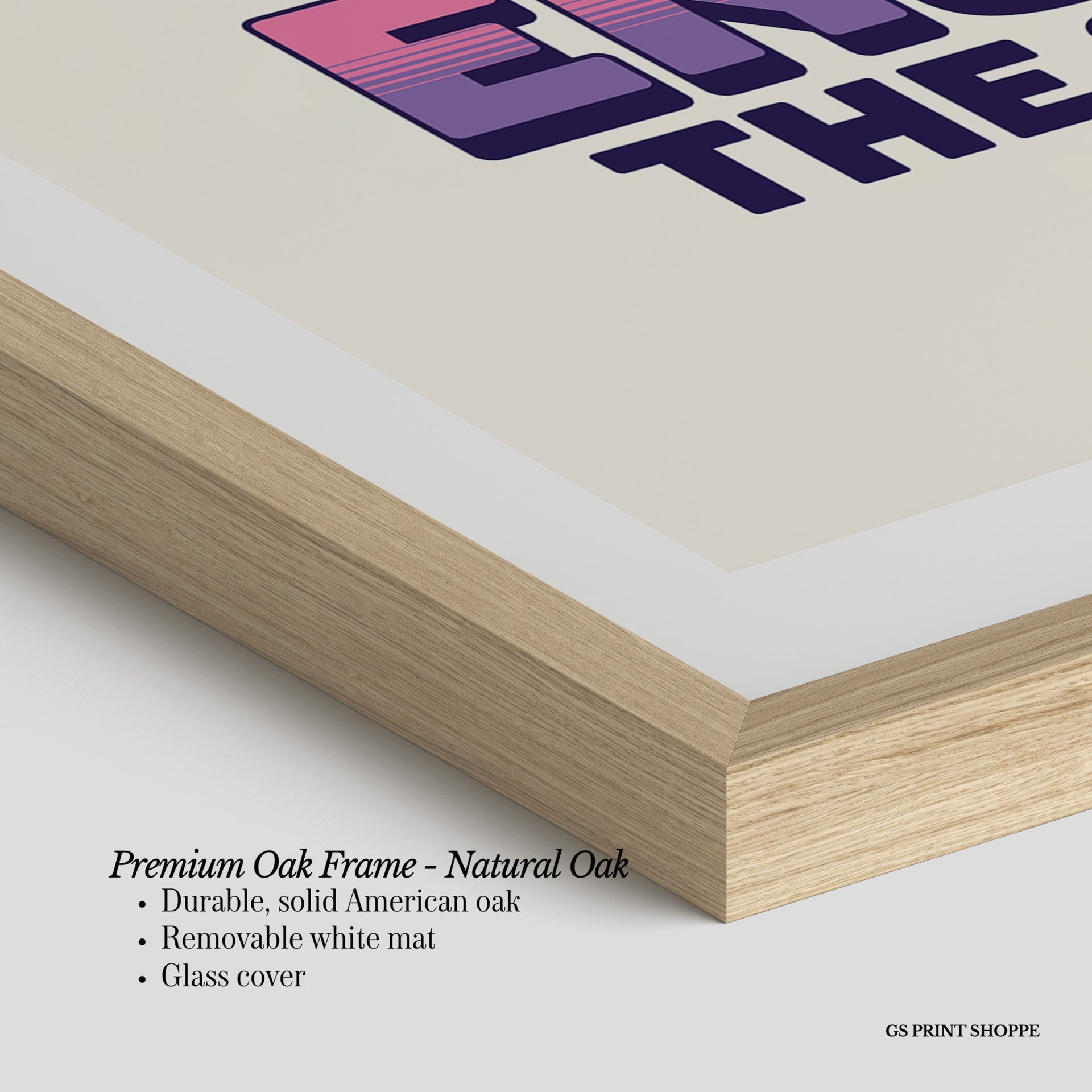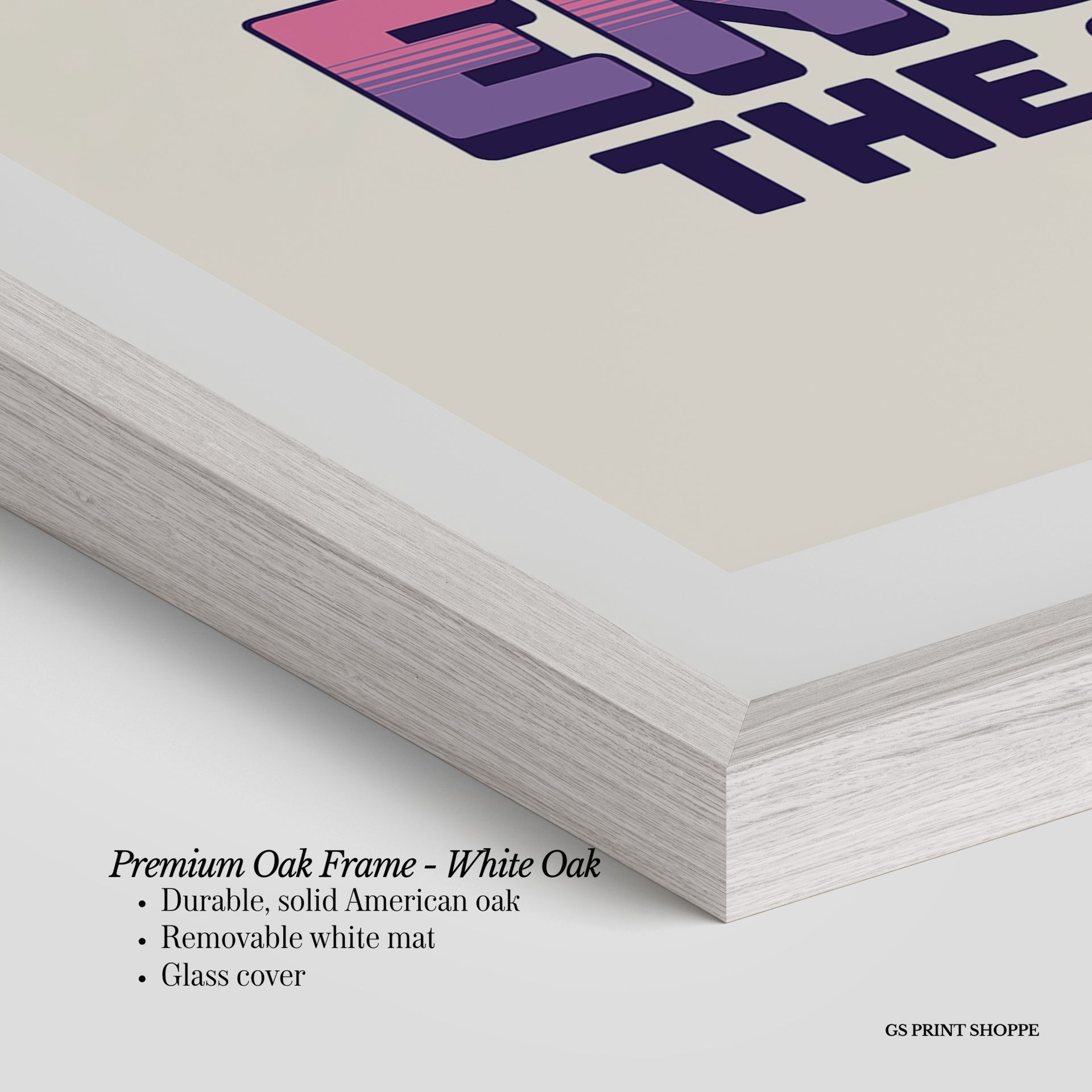 Premium Oak Frame: Our premium oak frame is crafted from solid American oak, offering a warm, natural feel with a high-end finish. We complete this elevated offering with a bright white removable mat and real glass for a versatile and polished look.