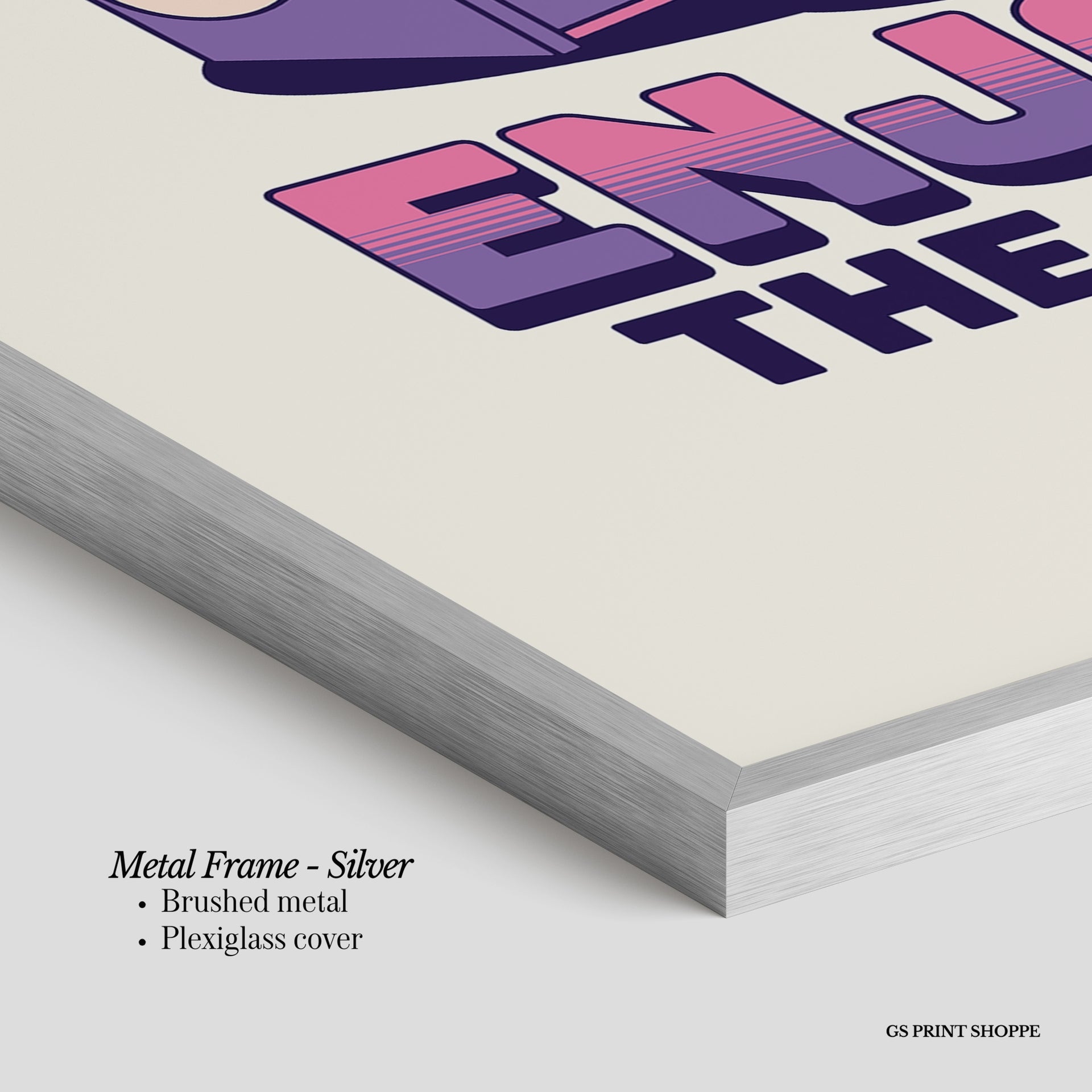 Metal Frame: Sleek and modern, our metal frame is crafted with brushed metal for a polished finish. It comes with durable plexiglass and sturdy metal hangers for horizontal or vertical display.