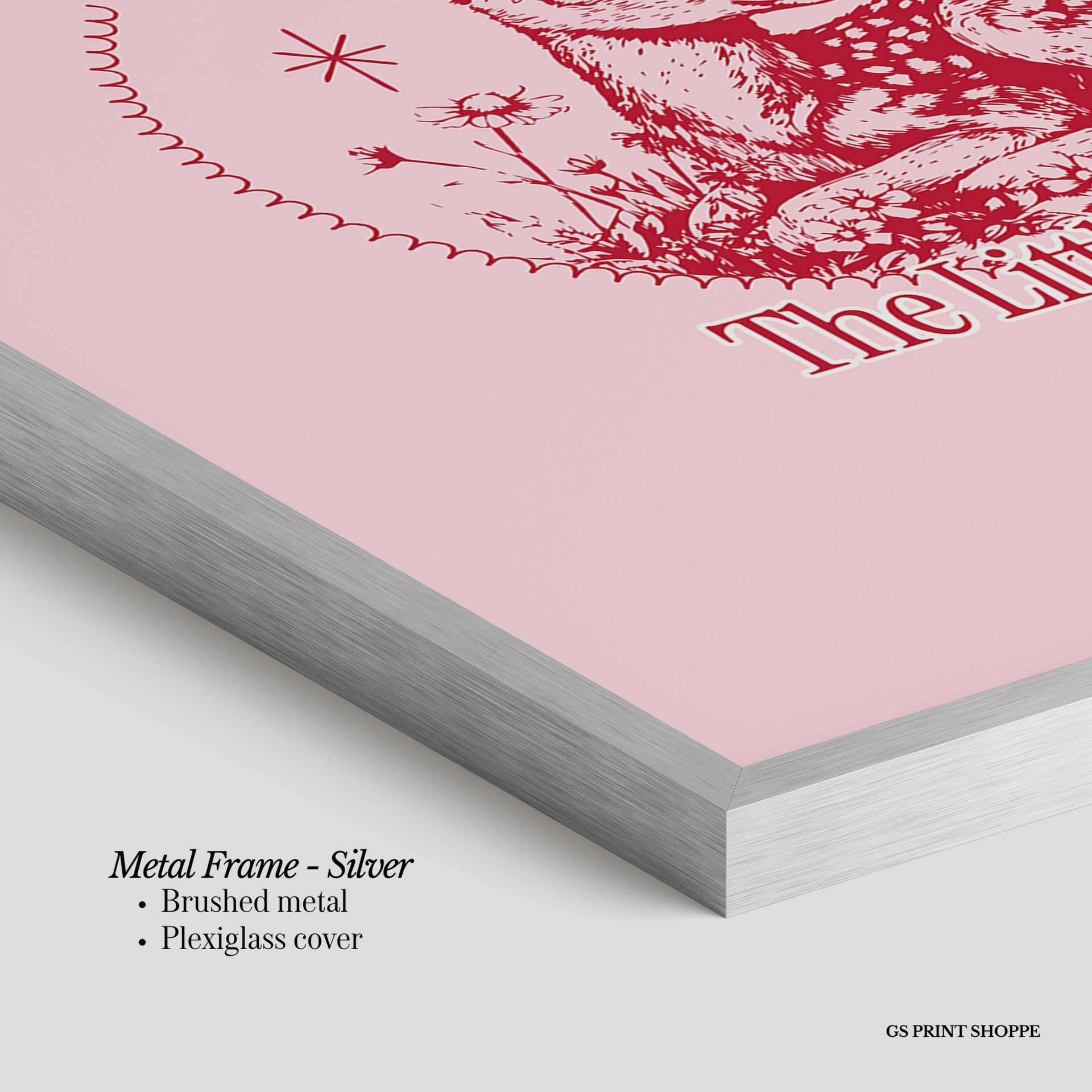 Metal Frame: Sleek and modern, our metal frame is crafted with brushed metal for a polished finish. It comes with durable plexiglass and sturdy metal hangers for horizontal or vertical display.