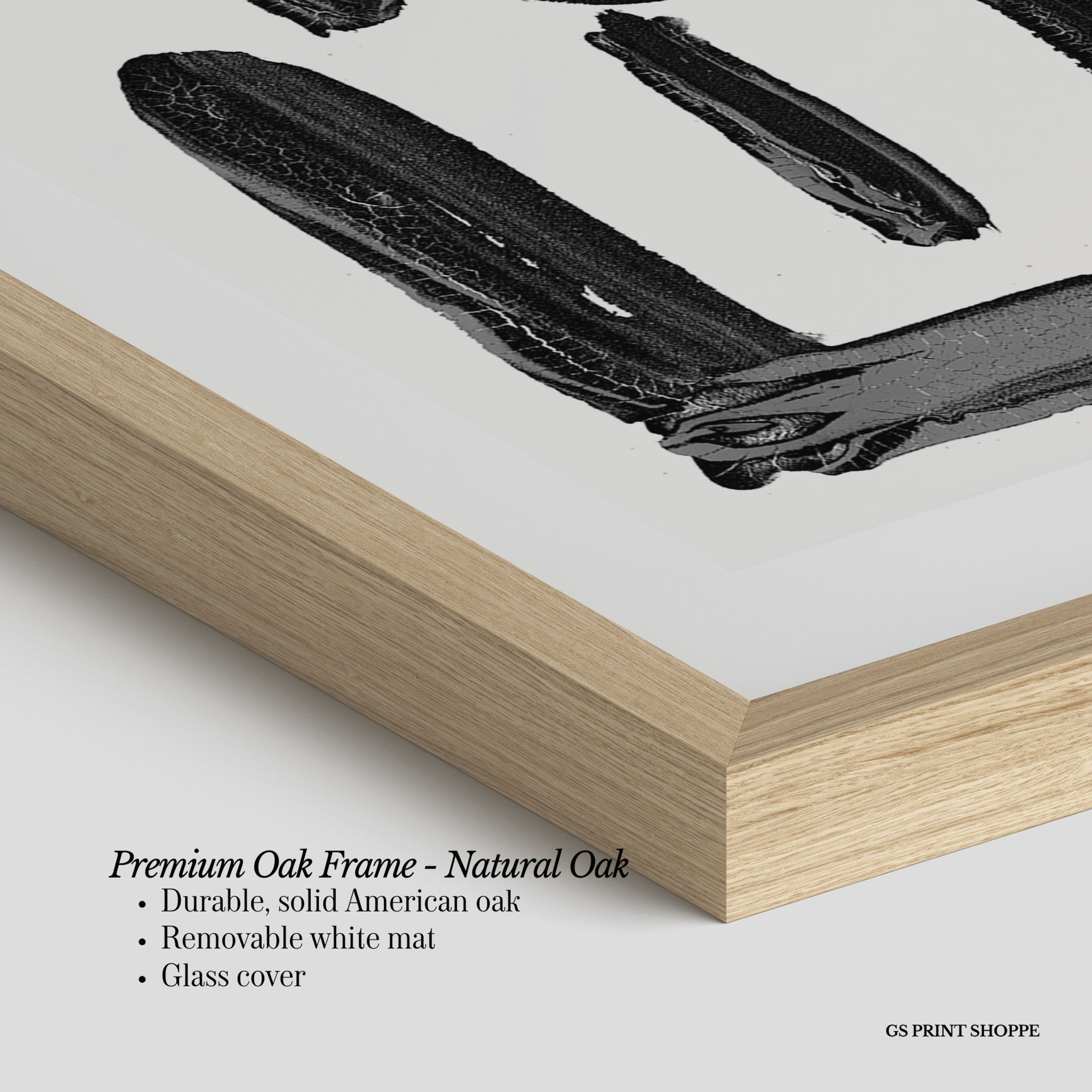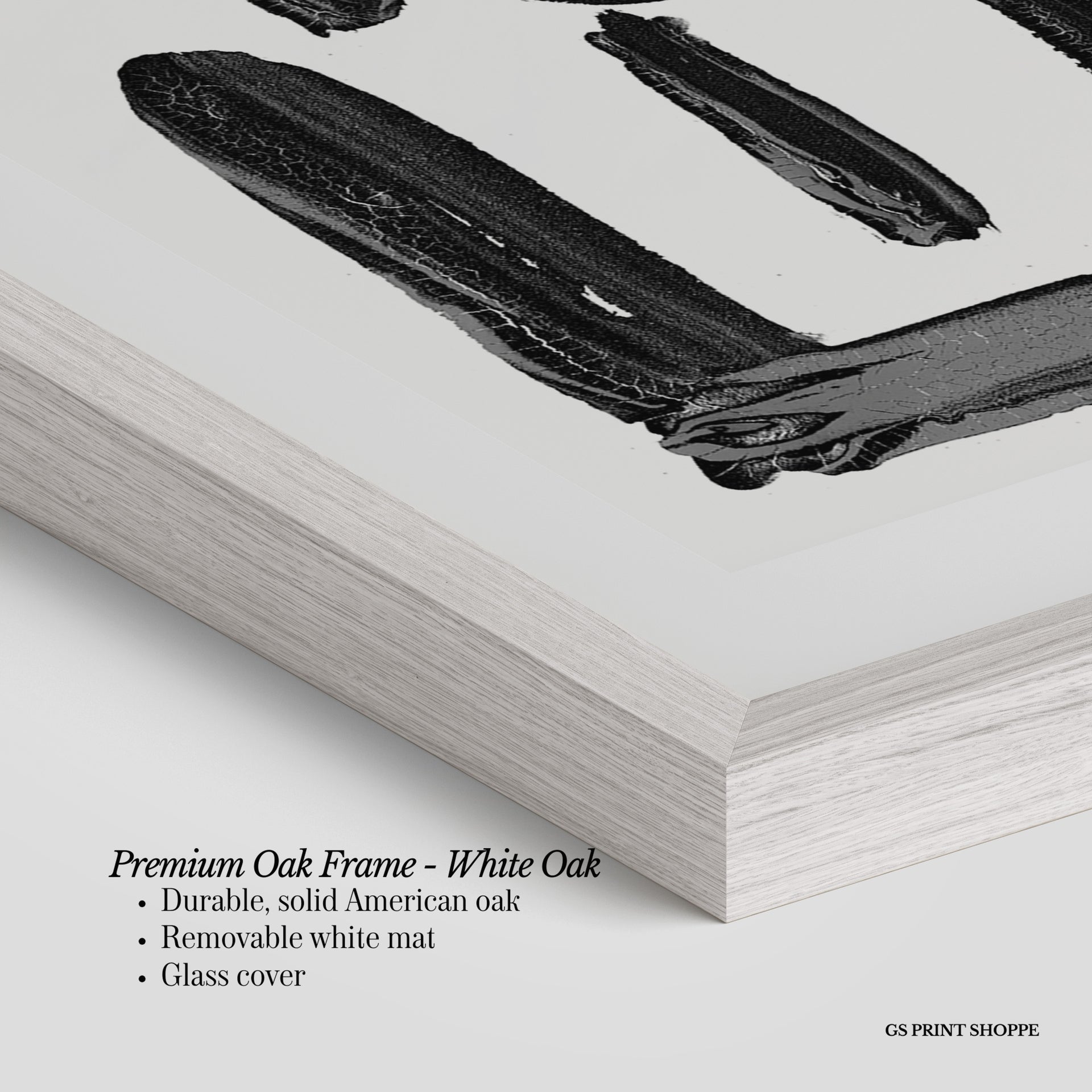 Premium Oak Frame: Our premium oak frame is crafted from solid American oak, offering a warm, natural feel with a high-end finish. We complete this elevated offering with a bright white removable mat and real glass for a versatile and polished look.