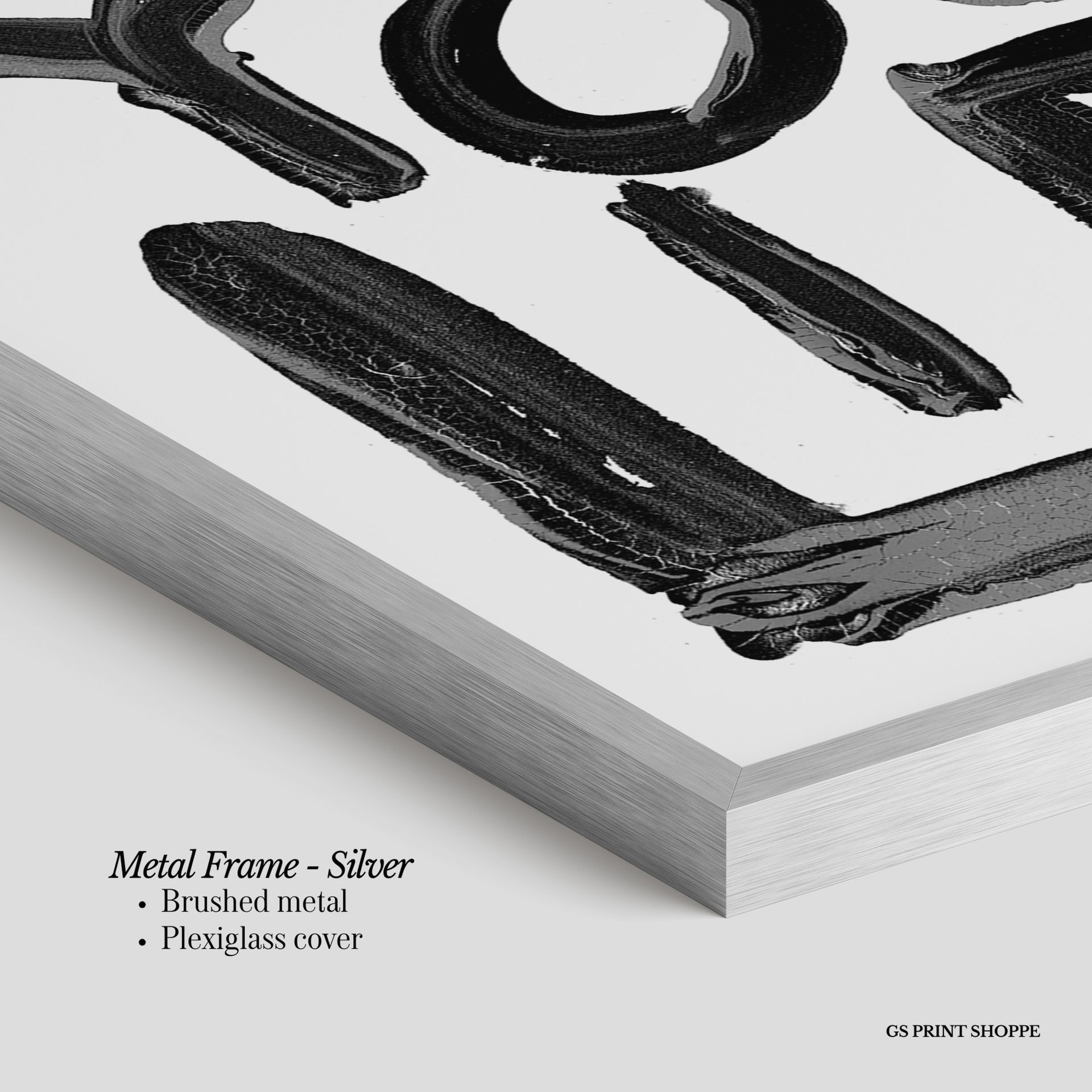 Metal Frame: Sleek and modern, our metal frame is crafted with brushed metal for a polished finish. It comes with durable plexiglass and sturdy metal hangers for horizontal or vertical display.