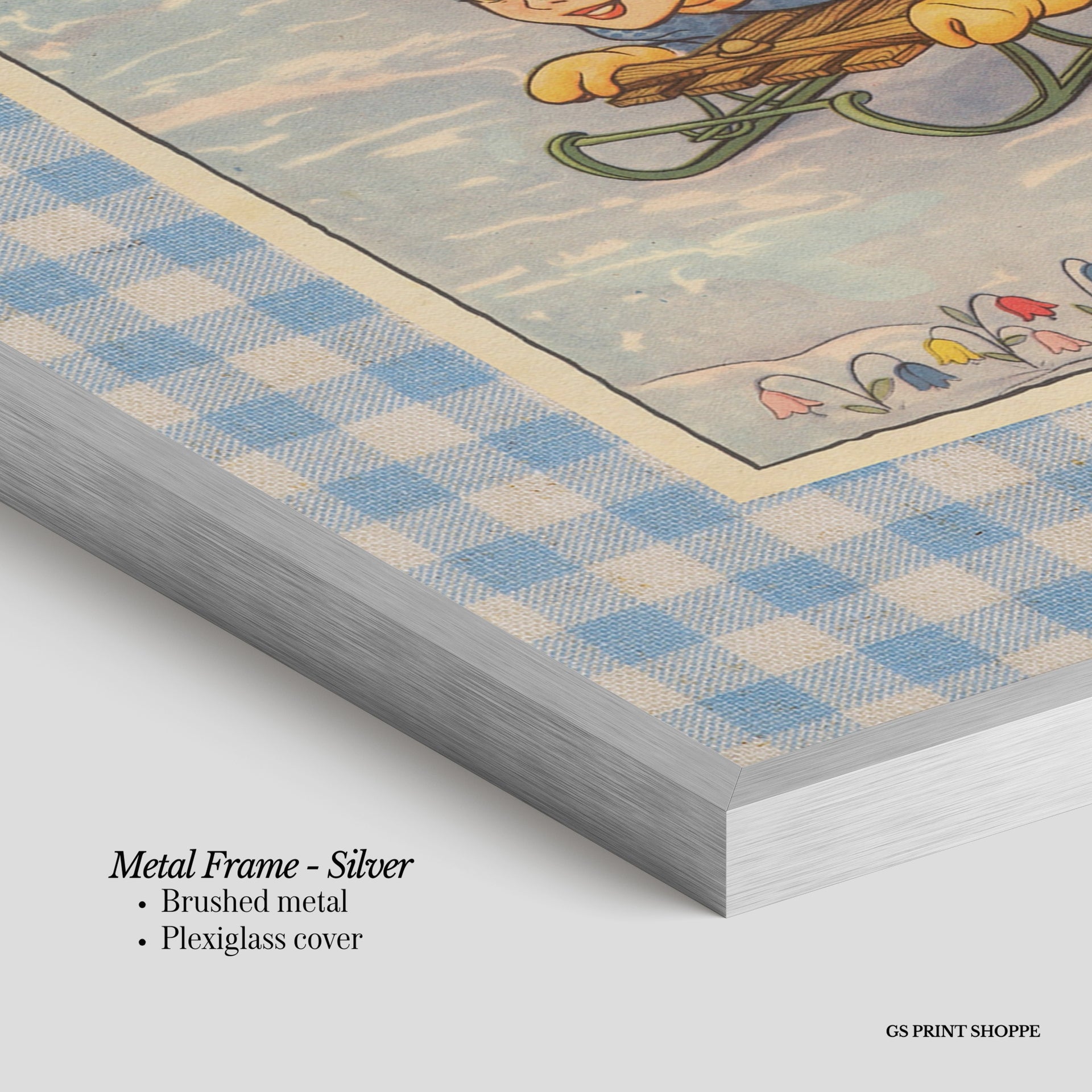 Metal Frame: Sleek and modern, our metal frame is crafted with brushed metal for a polished finish. It comes with durable plexiglass and sturdy metal hangers for horizontal or vertical display.