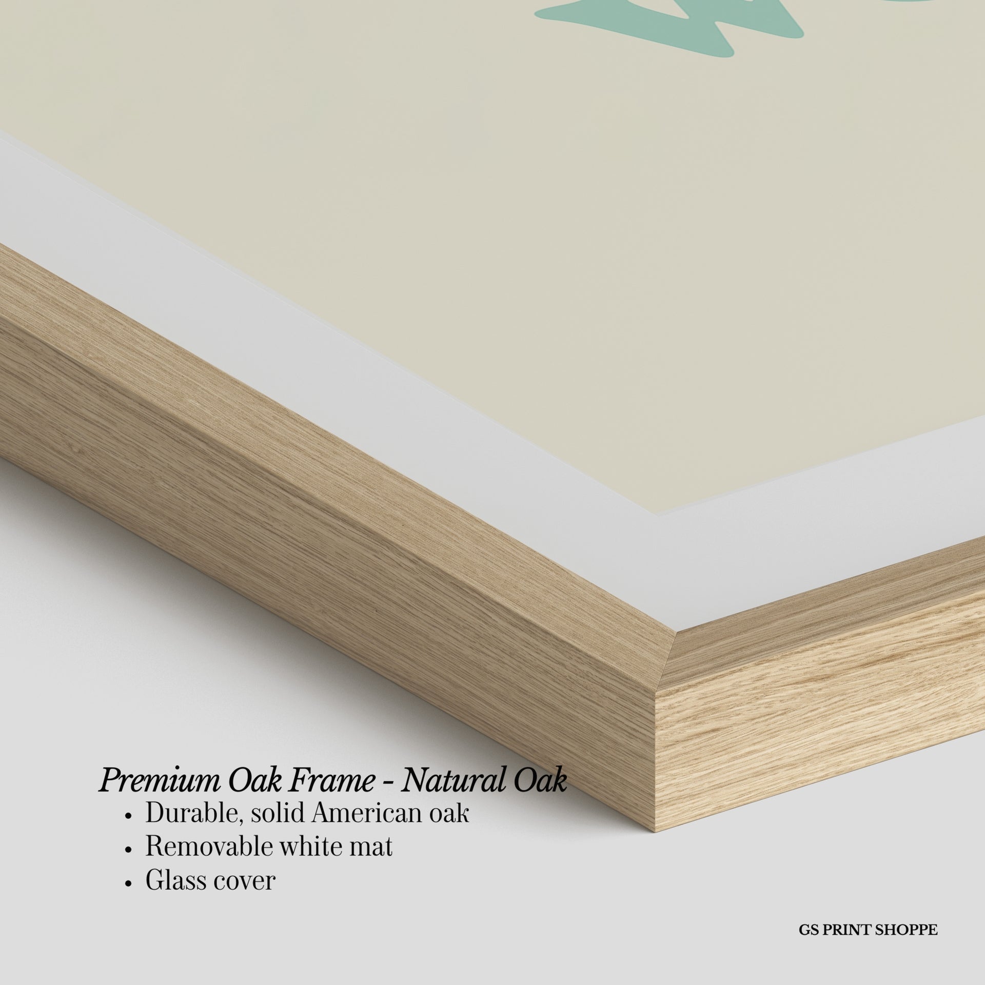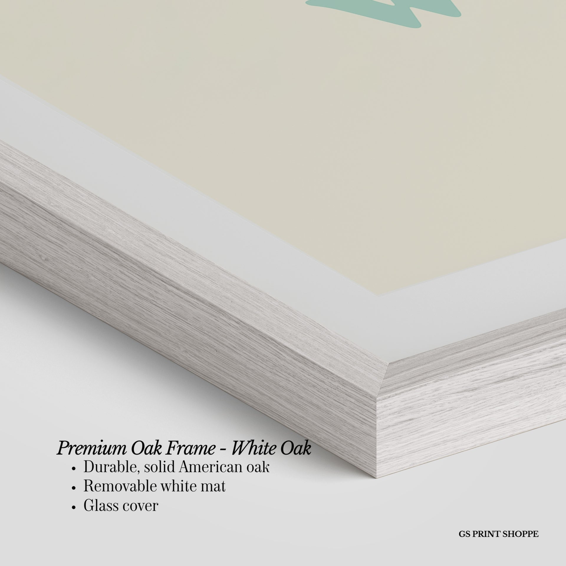 Premium Oak Frame: Our premium oak frame is crafted from solid American oak, offering a warm, natural feel with a high-end finish. We complete this elevated offering with a bright white removable mat and real glass for a versatile and polished look.
