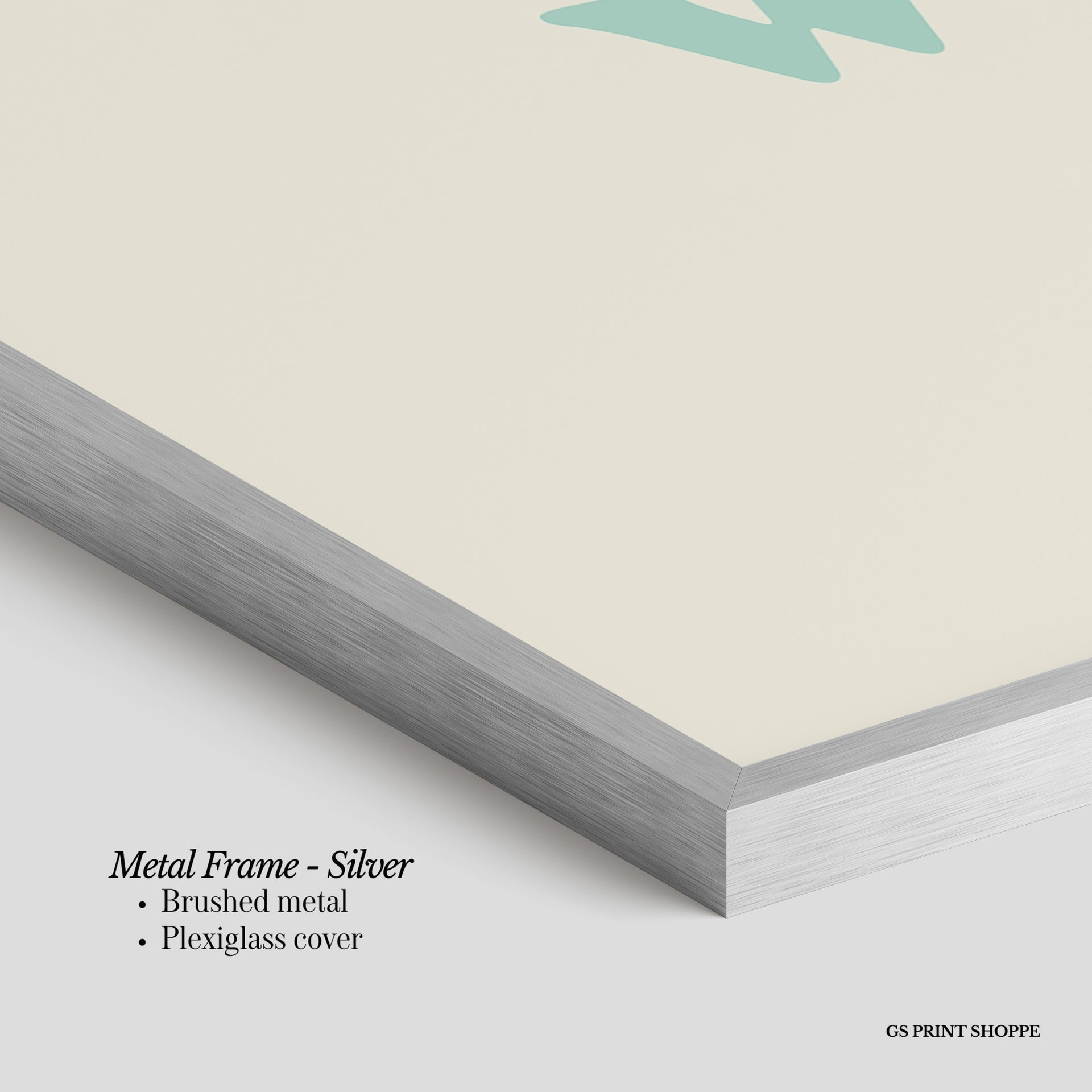 Metal Frame: Sleek and modern, our metal frame is crafted with brushed metal for a polished finish. It comes with durable plexiglass and sturdy metal hangers for horizontal or vertical display.