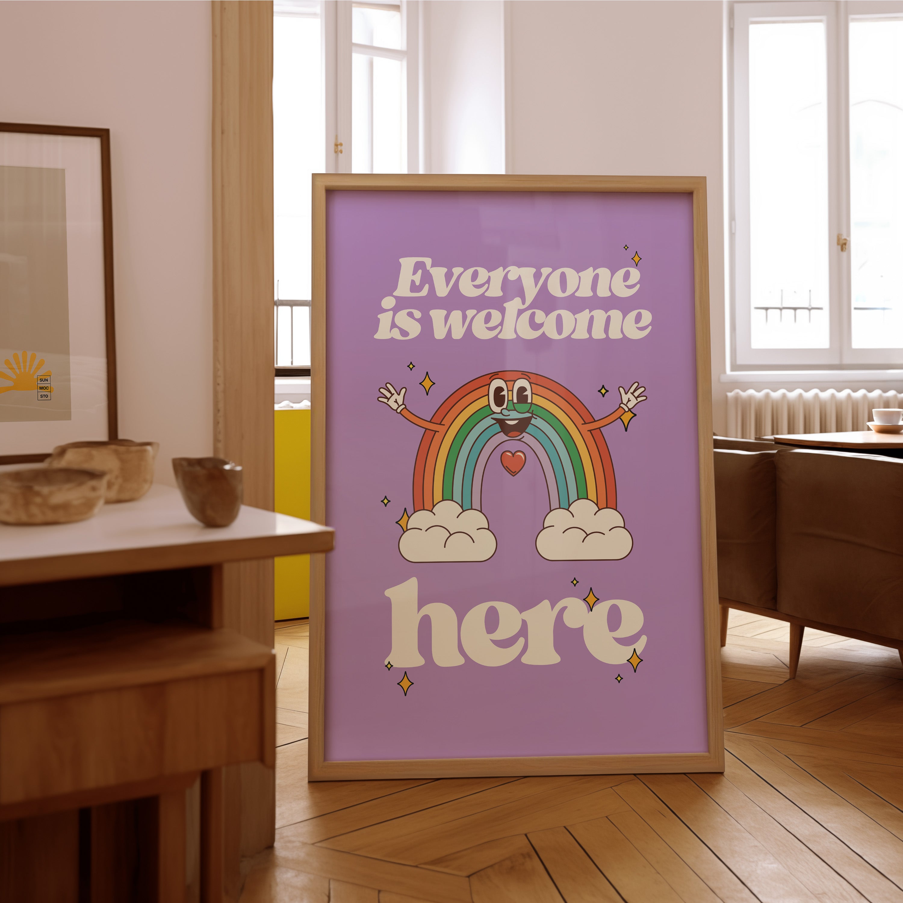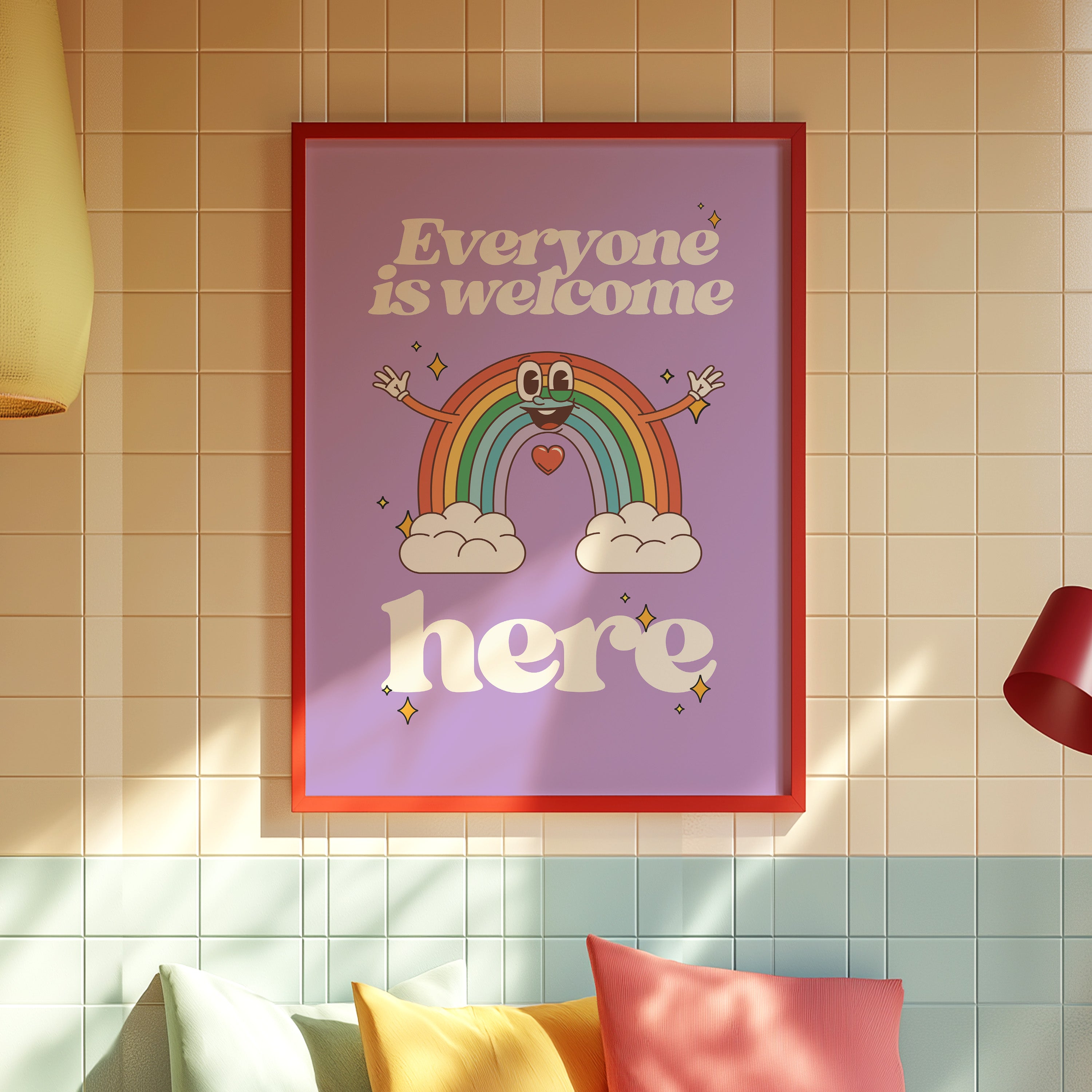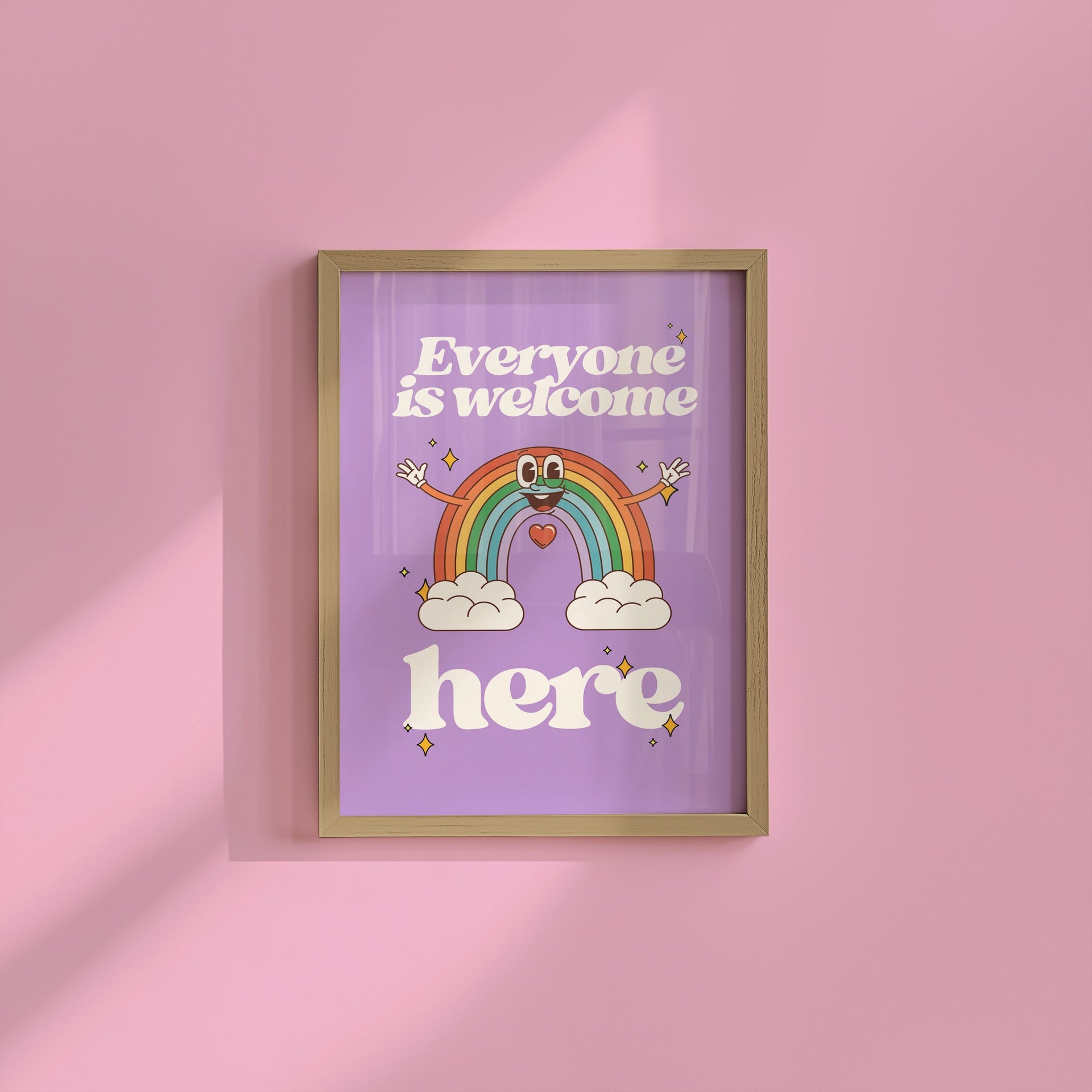 Everyone is Welcome Here Rainbow Vertical Art Print - Purple