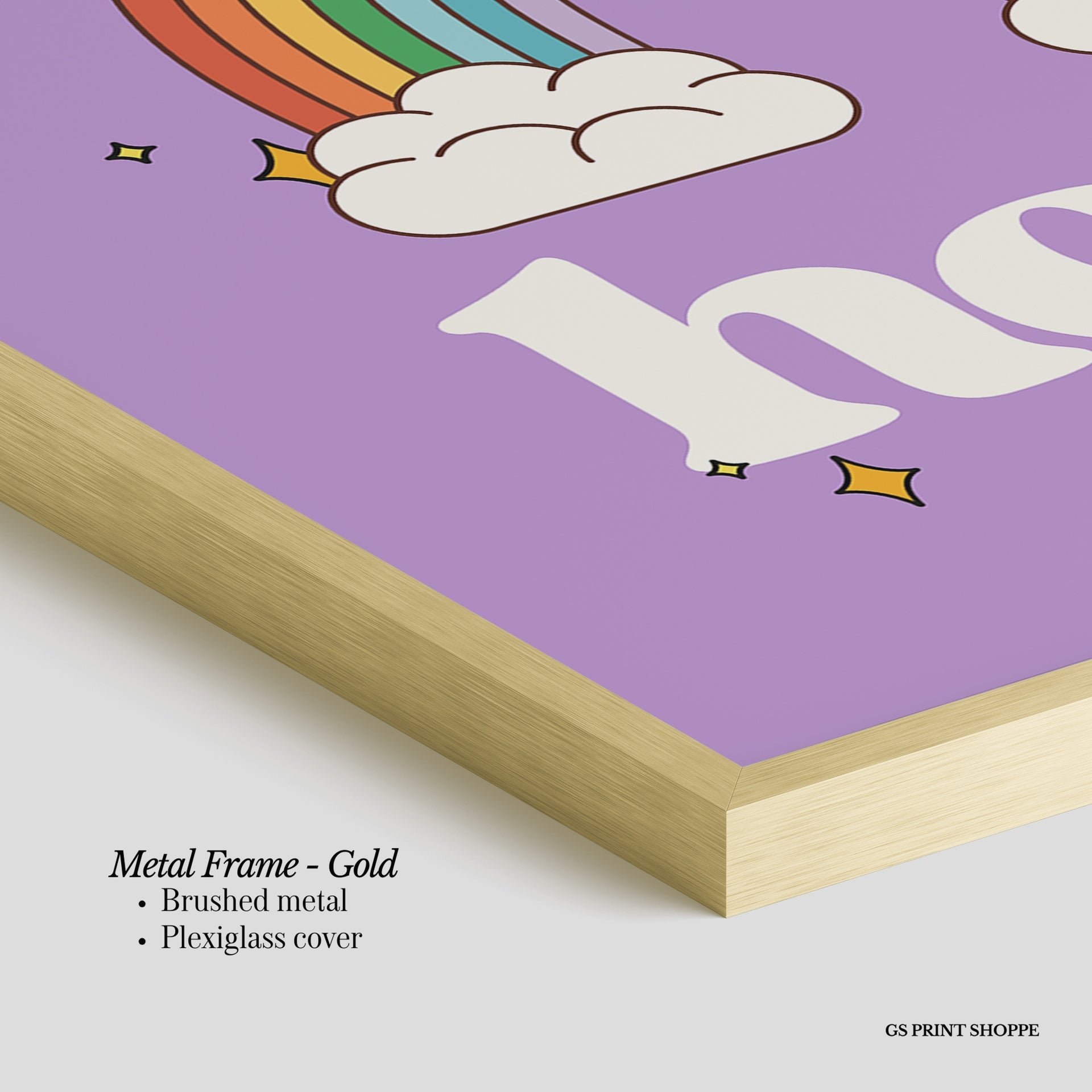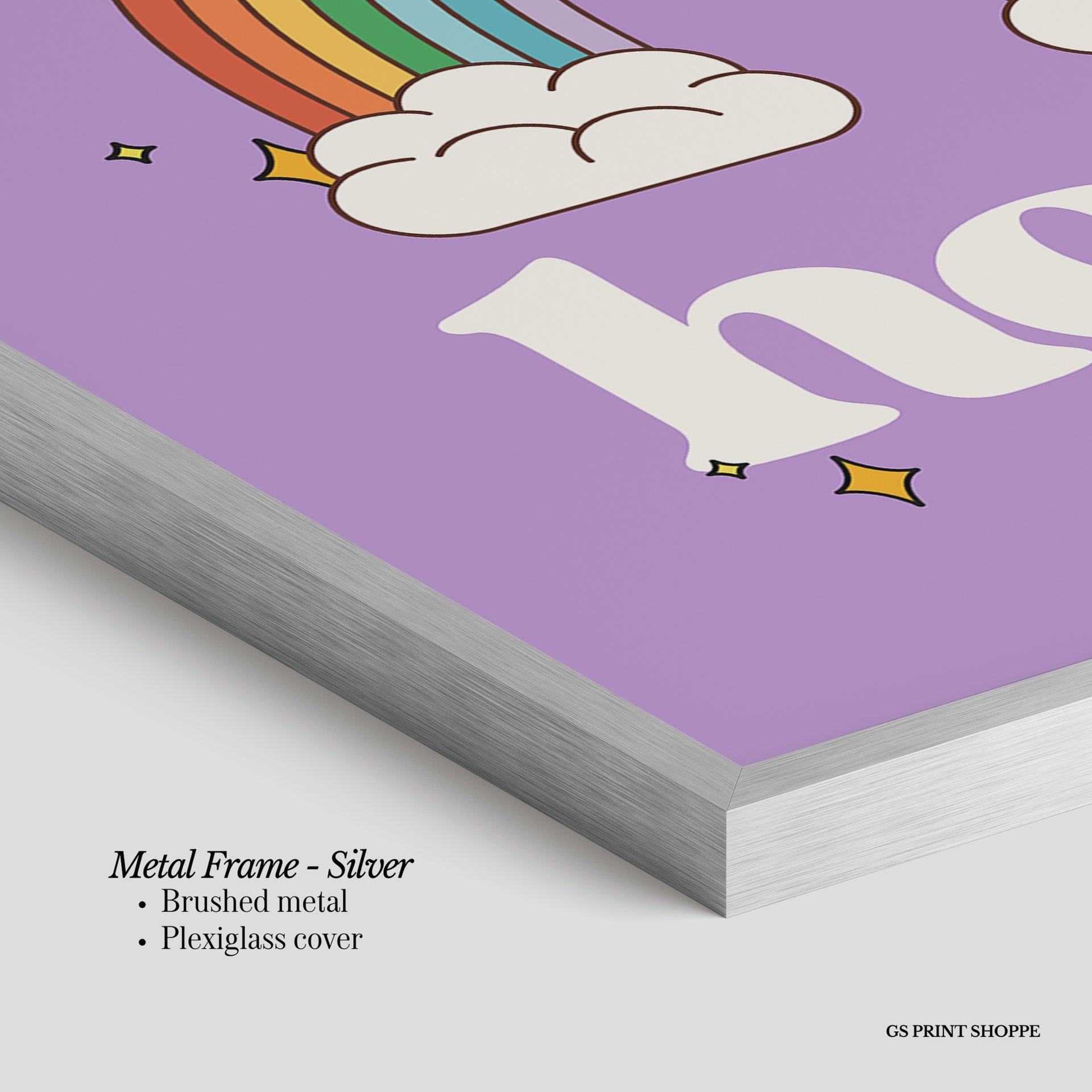 Metal Frame: Sleek and modern, our metal frame is crafted with brushed metal for a polished finish. It comes with durable plexiglass and sturdy metal hangers for horizontal or vertical display.