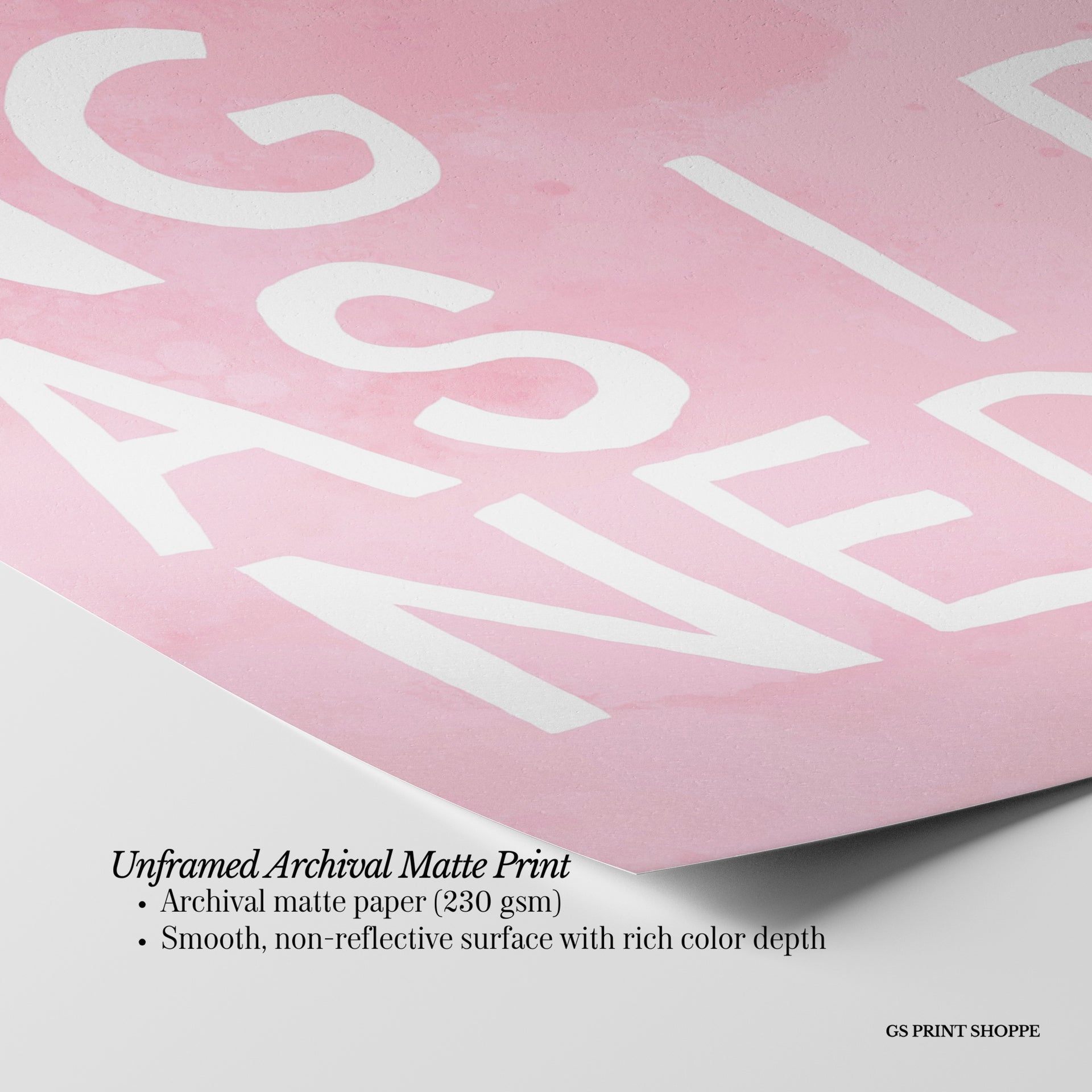Unframed: This print is professionally printed on archival matte paper (230 gsm), a smooth, acid-free paper with a non-reflective finish. It will be carefully packaged to arrive safely at your door.