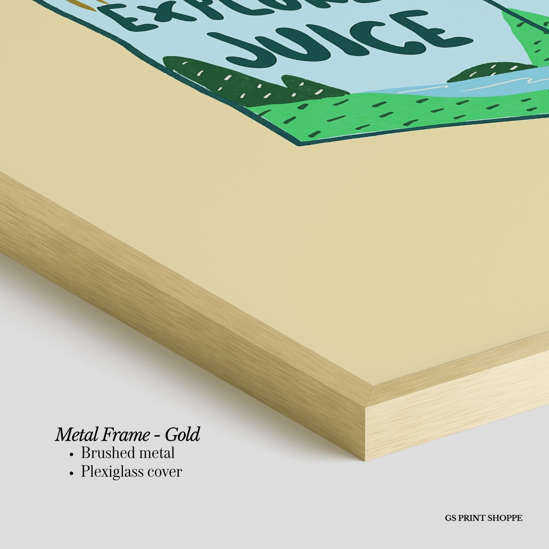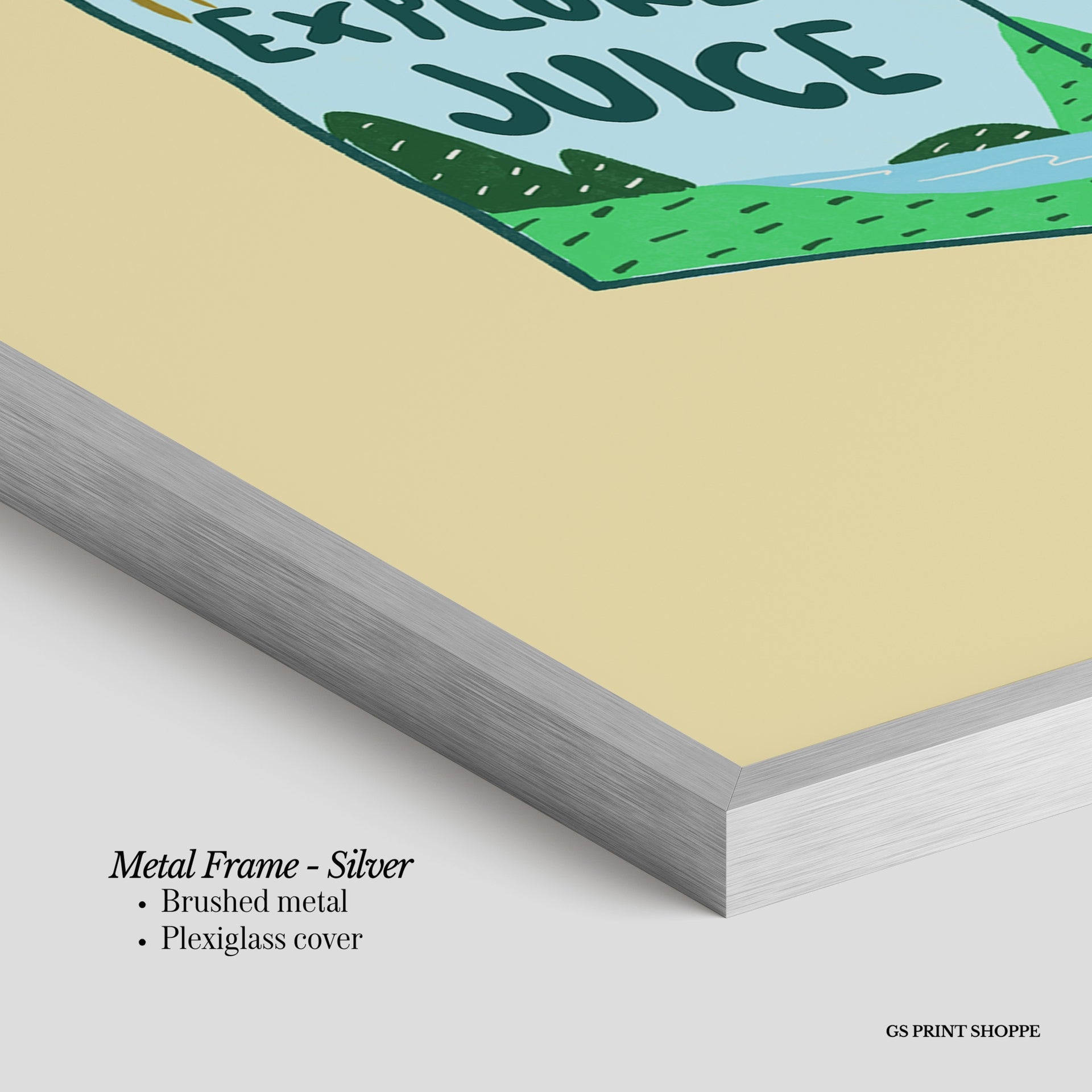 Metal Frame: Sleek and modern, our metal frame is crafted with brushed metal for a polished finish. It comes with durable plexiglass and sturdy metal hangers for horizontal or vertical display.
