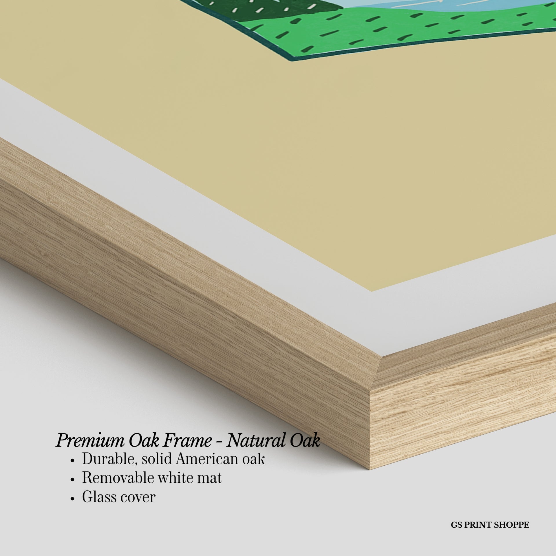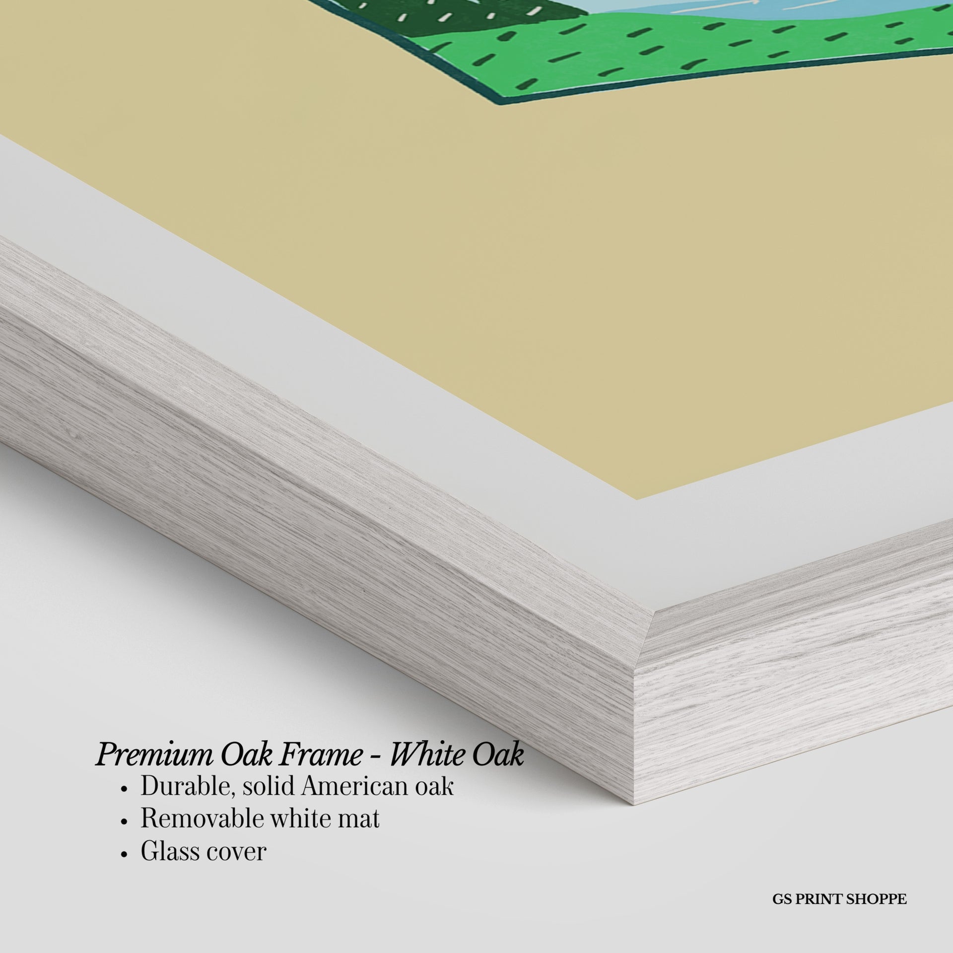 Premium Oak Frame: Our premium oak frame is crafted from solid American oak, offering a warm, natural feel with a high-end finish. We complete this elevated offering with a bright white removable mat and real glass for a versatile and polished look.