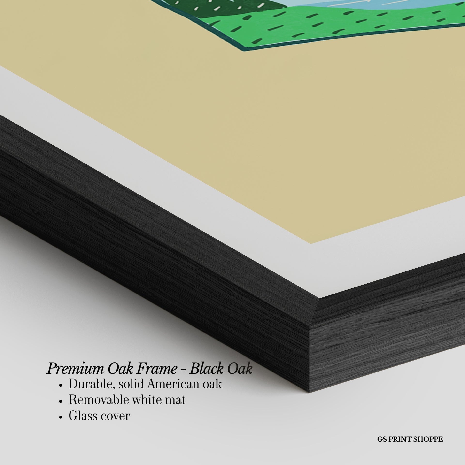Oak Frame: Our solid oak frame blends durability with timeless appeal. Made from American oak, it features a smooth finish and plexiglass for long-lasting quality.
