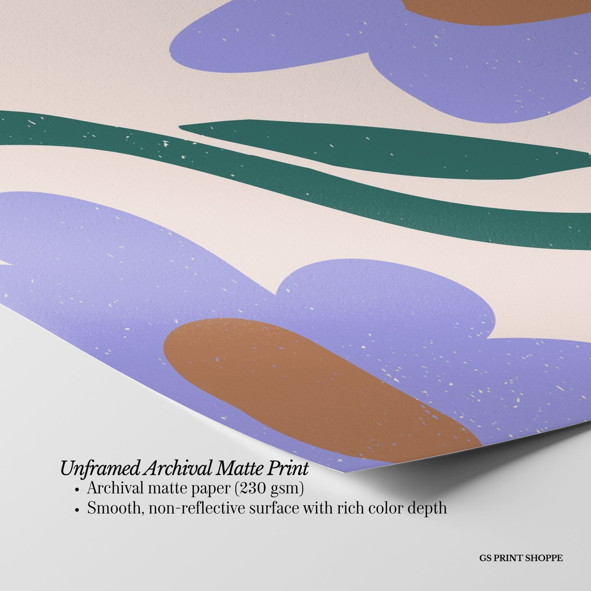 Unframed: This print is professionally printed on archival matte paper (230 gsm), a smooth, acid-free paper with a non-reflective finish. It will be carefully packaged to arrive safely at your door.
