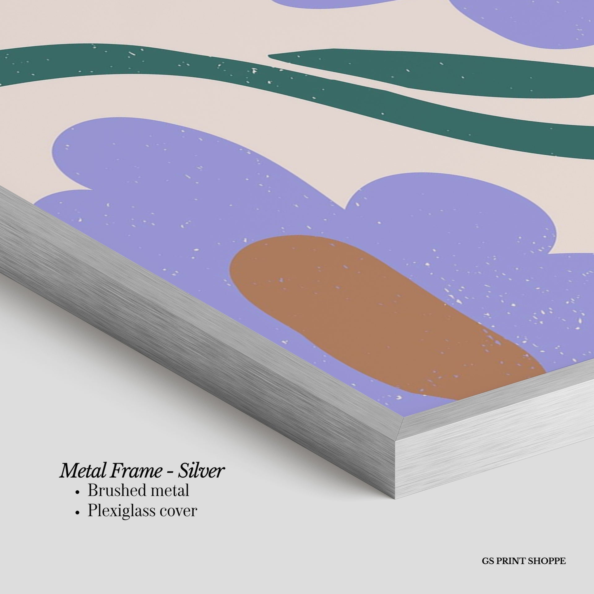 Metal Frame: Sleek and modern, our metal frame is crafted with brushed metal for a polished finish. It comes with durable plexiglass and sturdy metal hangers for horizontal or vertical display.