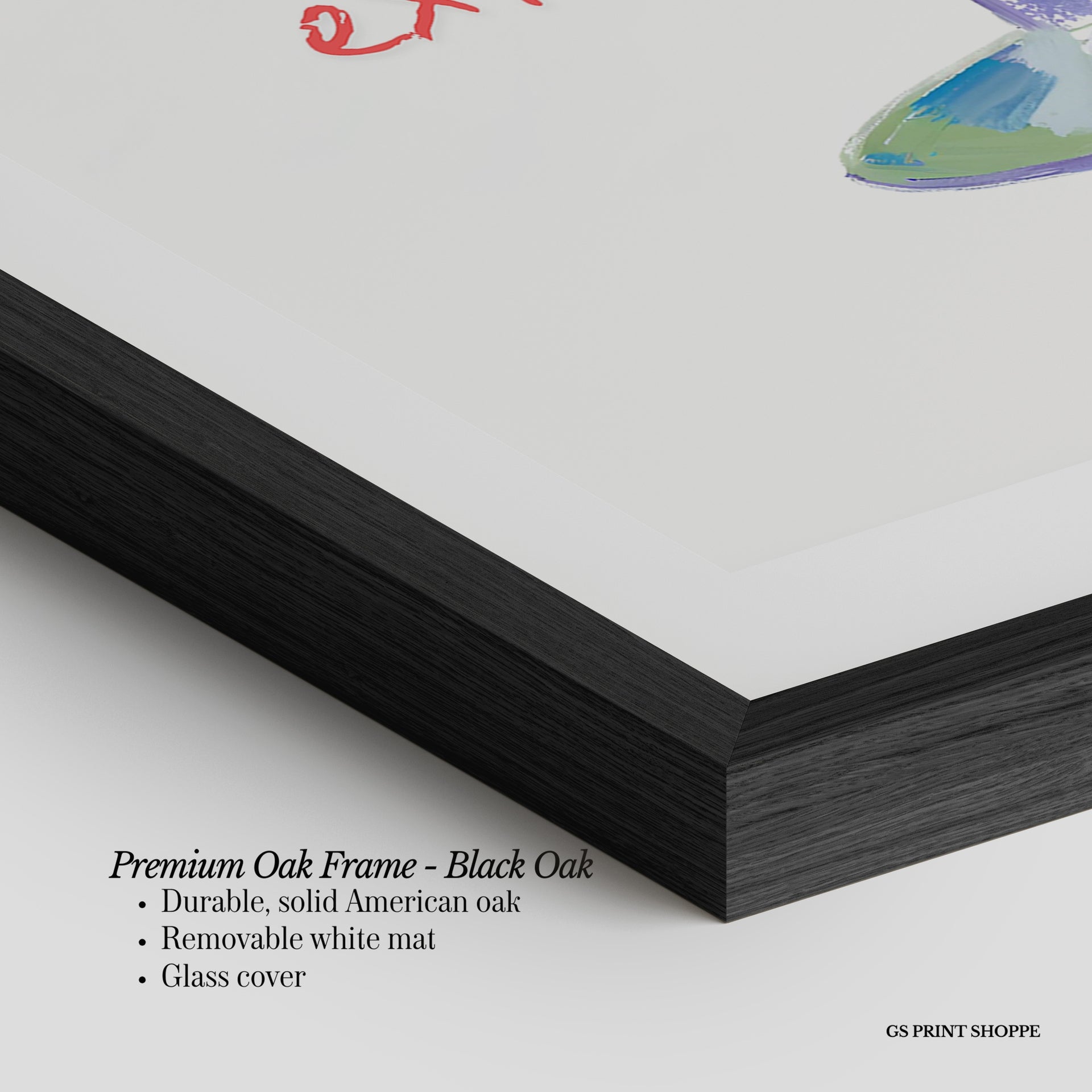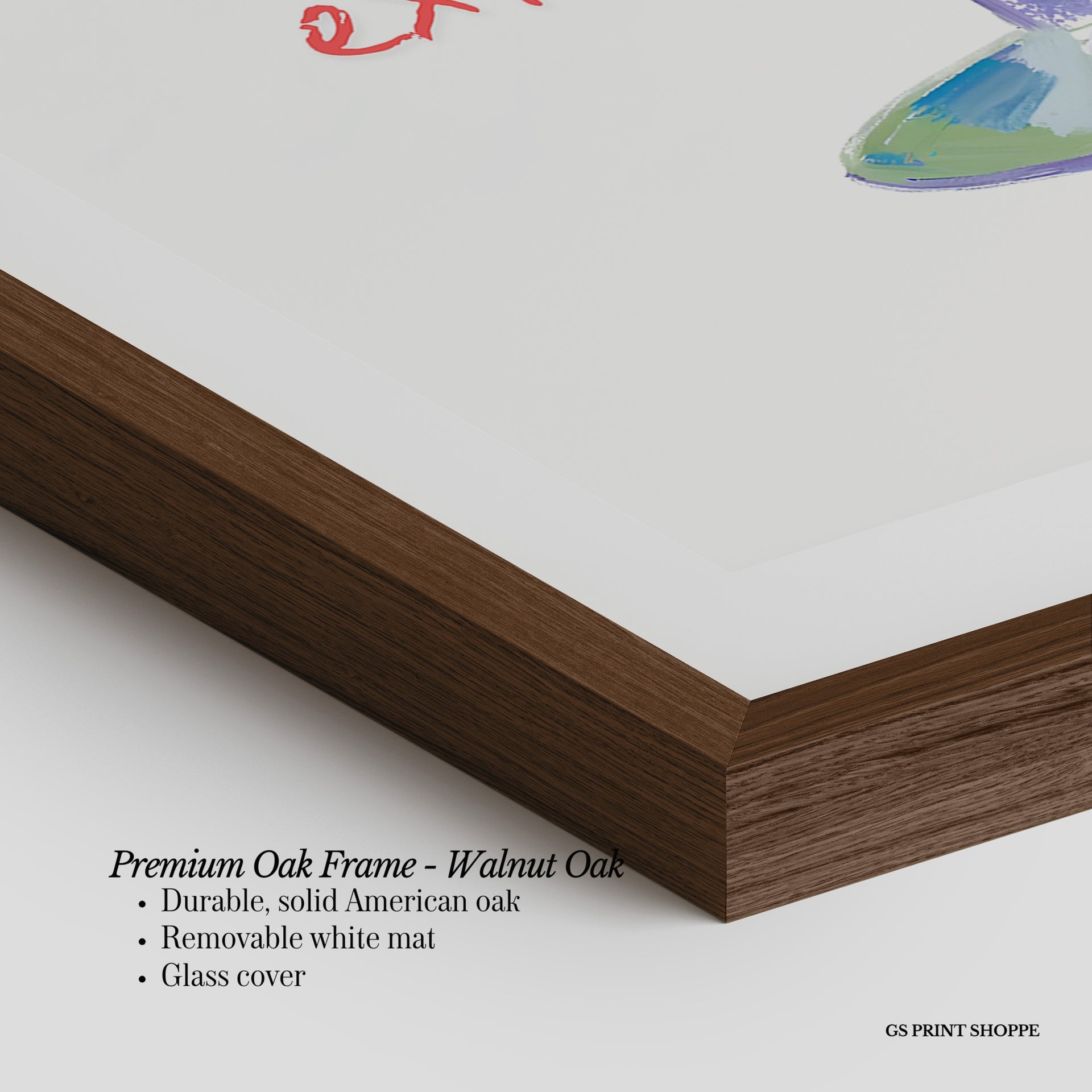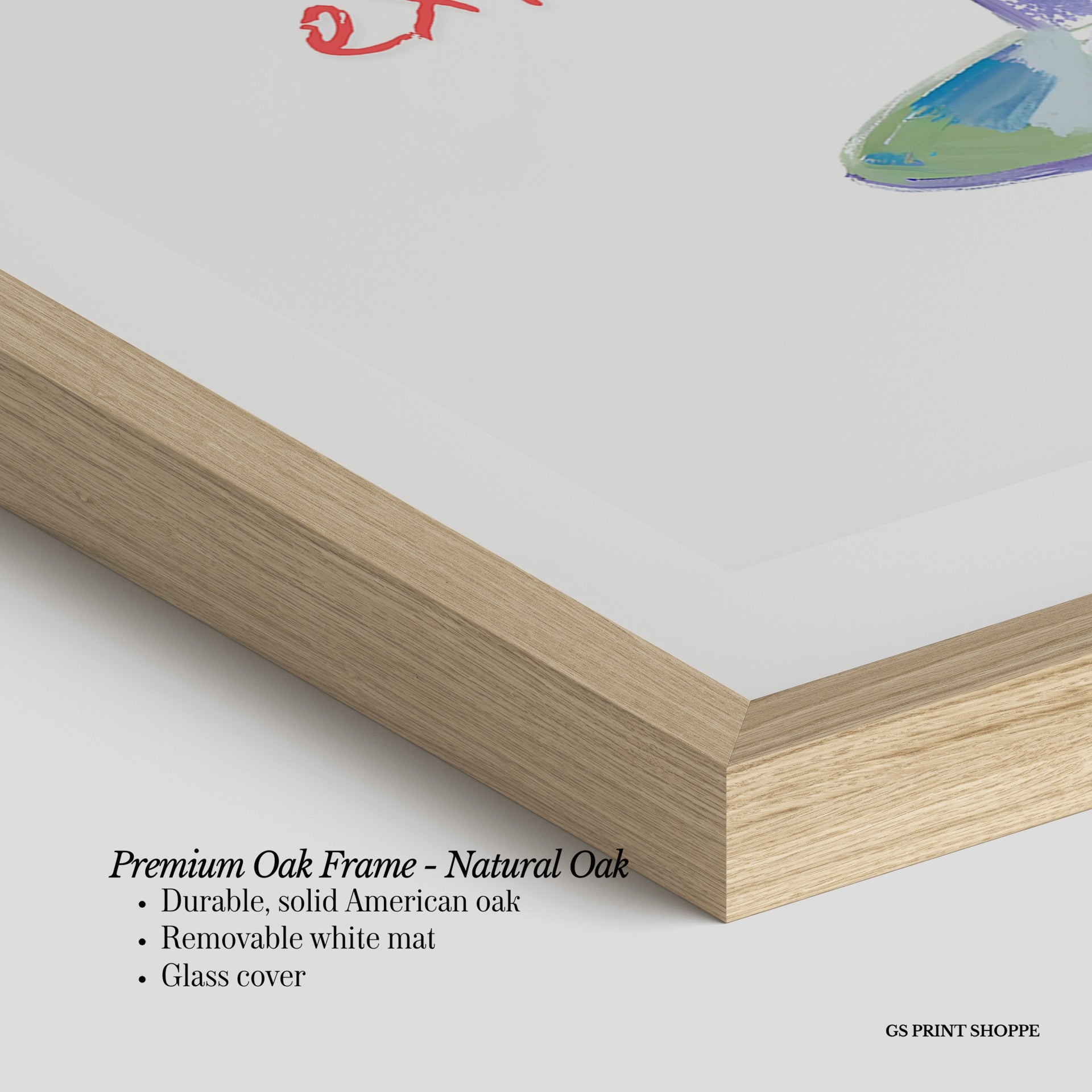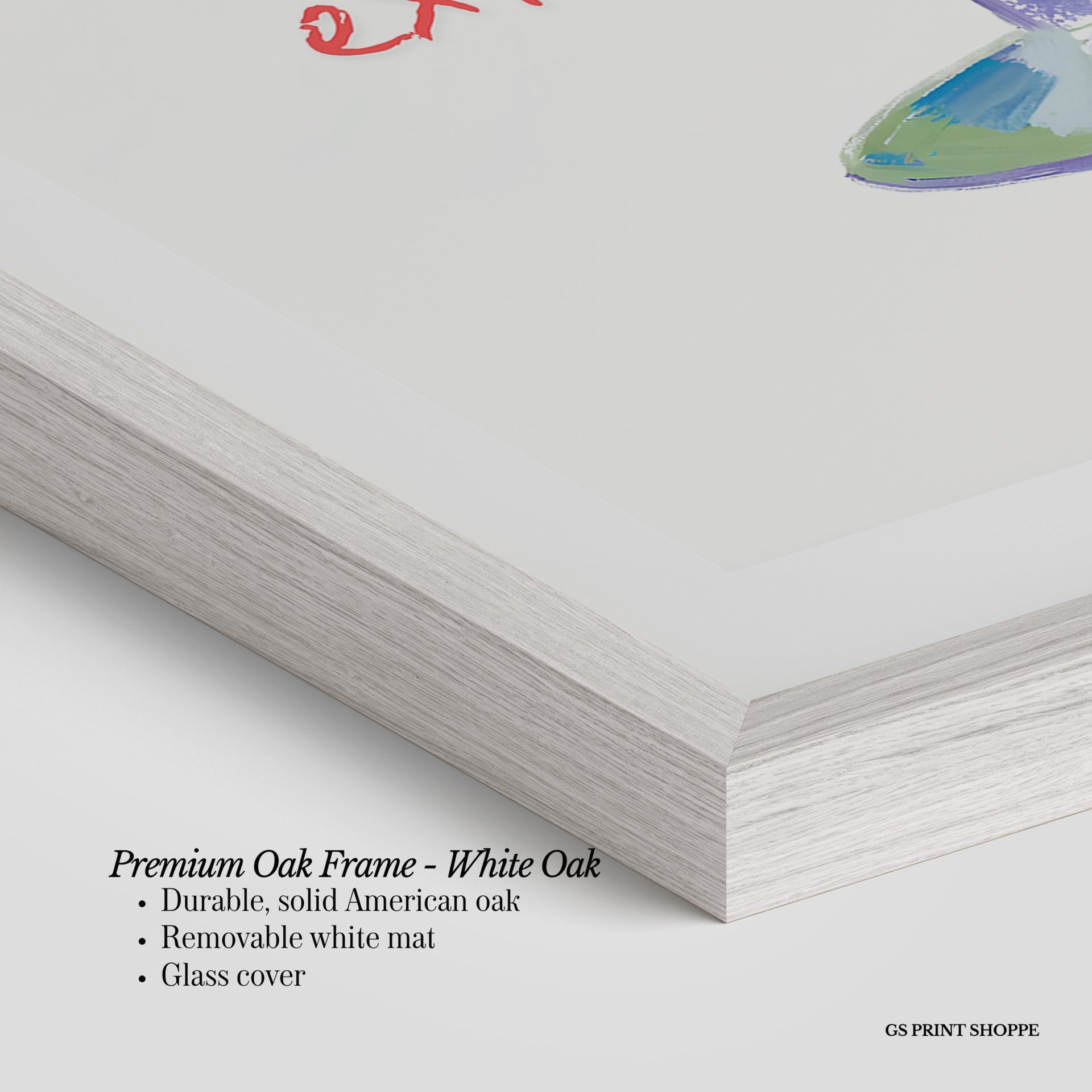 Premium Oak Frame: Our premium oak frame is crafted from solid American oak, offering a warm, natural feel with a high-end finish. We complete this elevated offering with a bright white removable mat and real glass for a versatile and polished look.