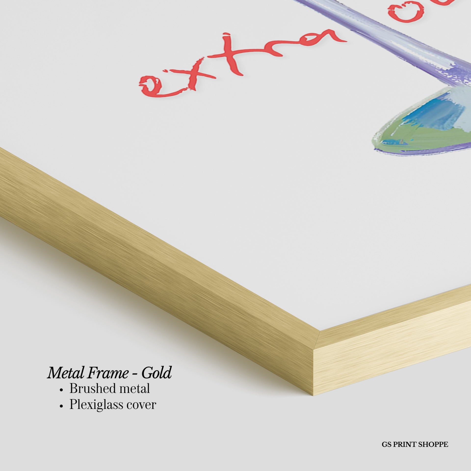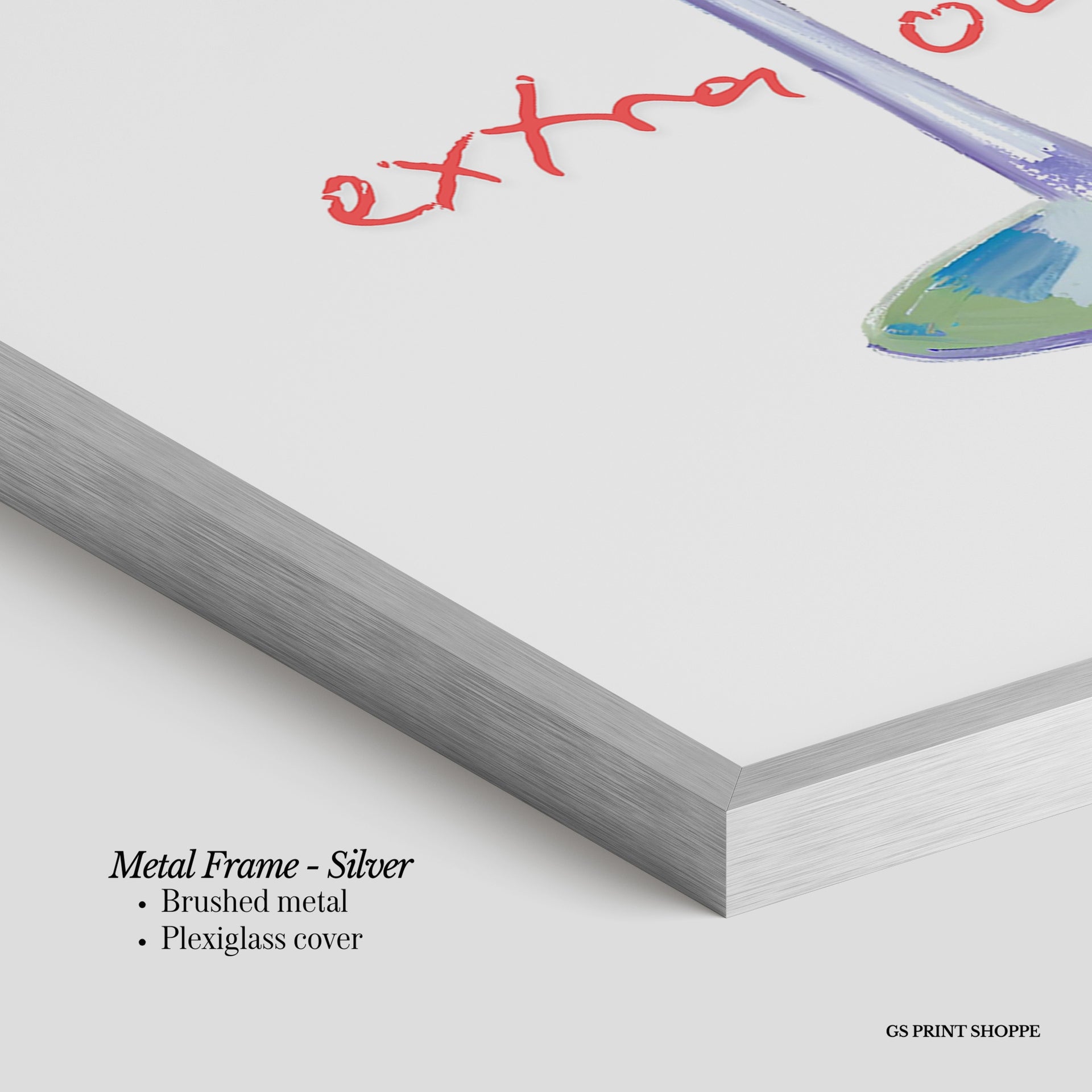 Metal Frame: Sleek and modern, our metal frame is crafted with brushed metal for a polished finish. It comes with durable plexiglass and sturdy metal hangers for horizontal or vertical display.