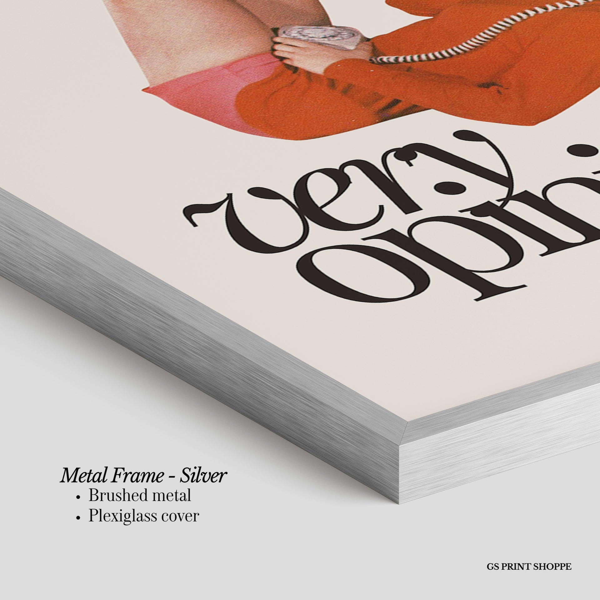 Metal Frame: Sleek and modern, our metal frame is crafted with brushed metal for a polished finish. It comes with durable plexiglass and sturdy metal hangers for horizontal or vertical display.